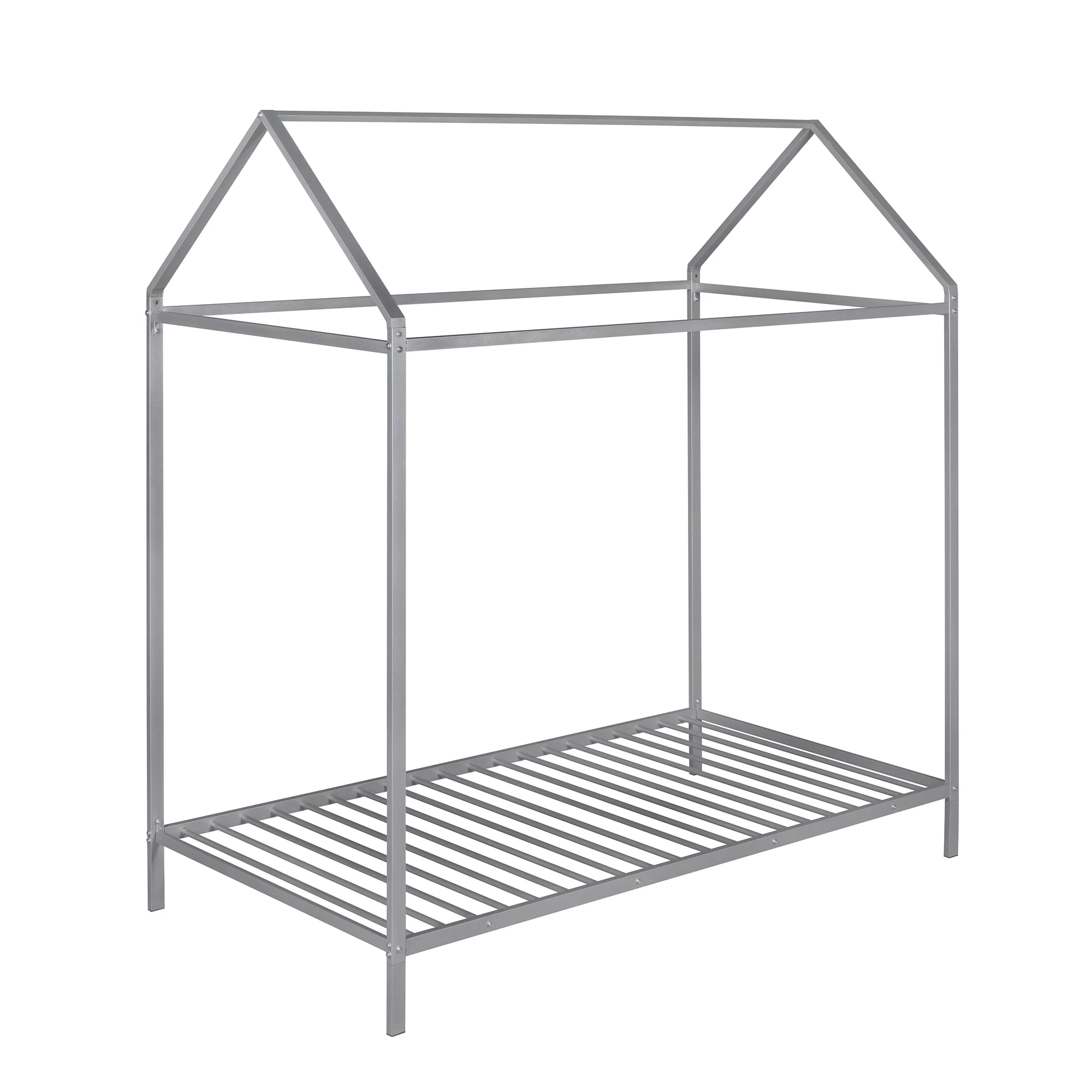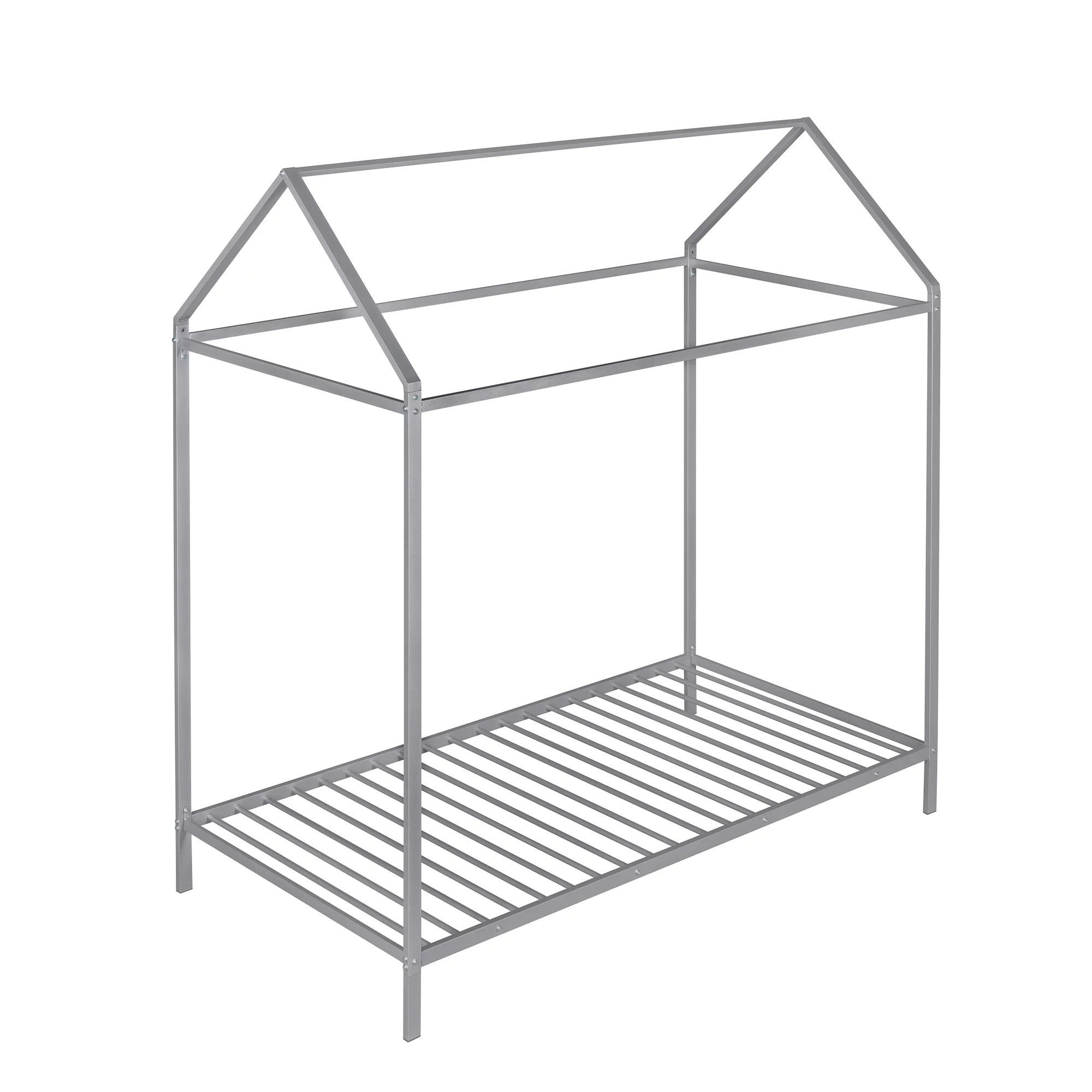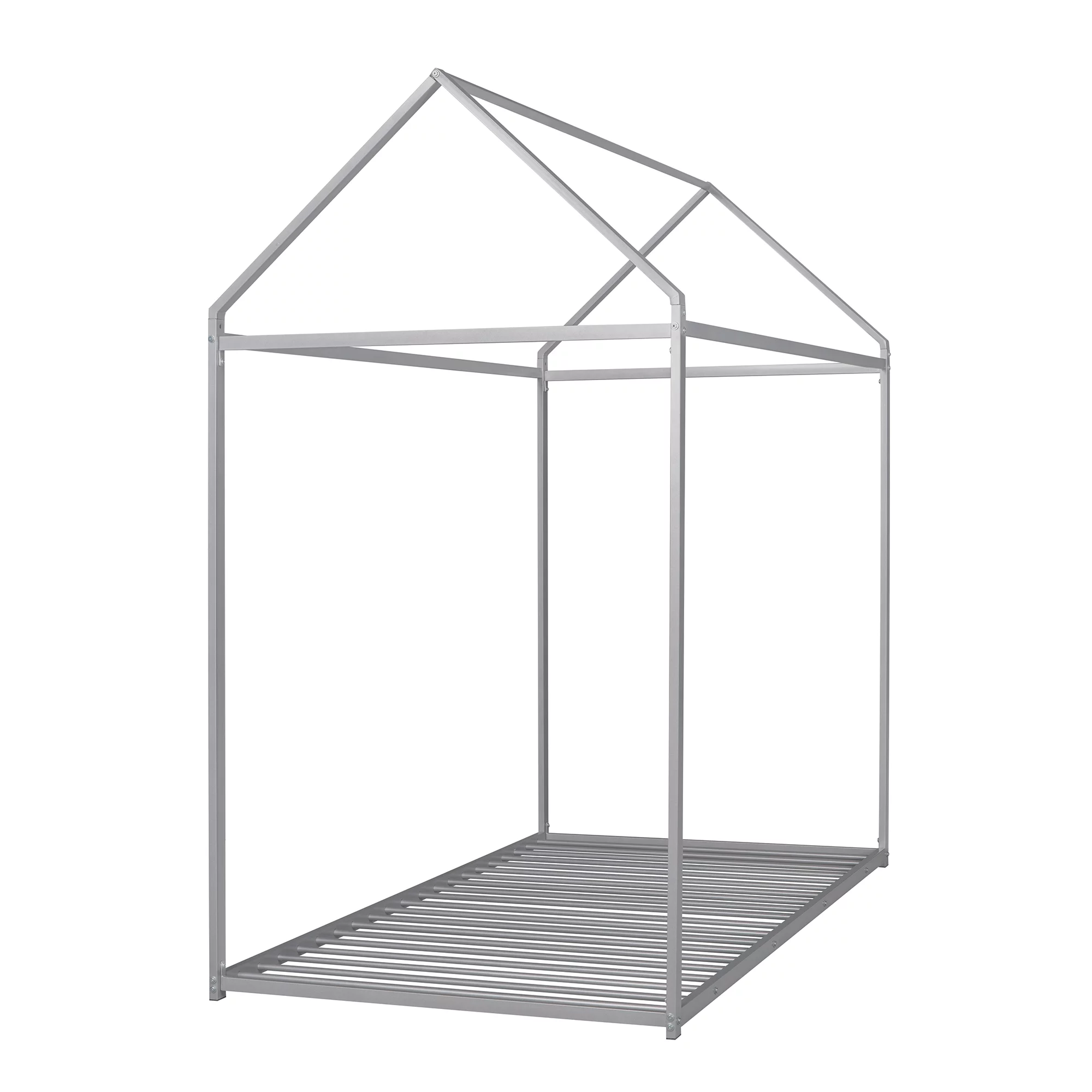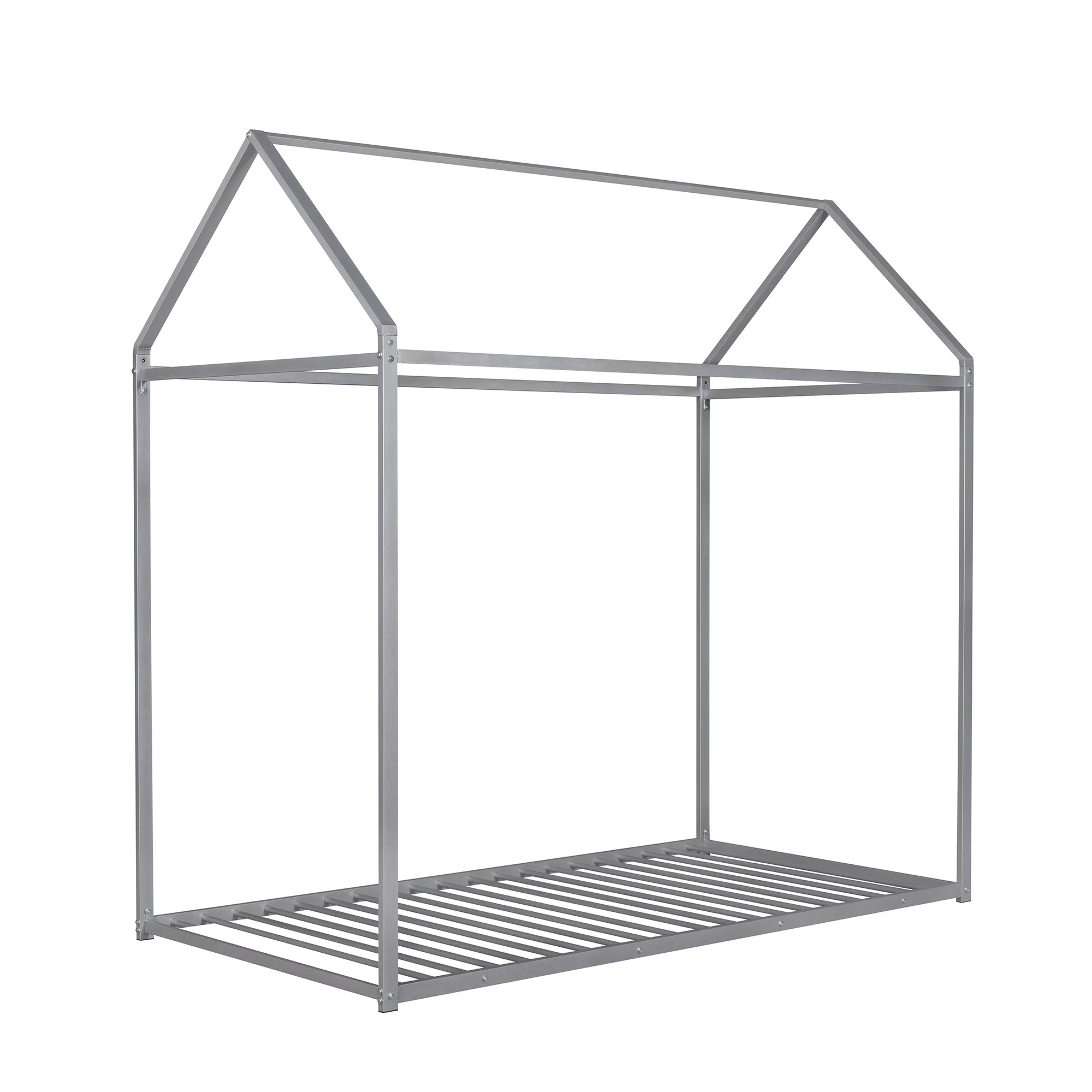 House Bed Frame Twin Size , Kids Bed Frame Metal Platform Bed Floor Bed for Kids Boys Girls No Box Spring Needed Silver