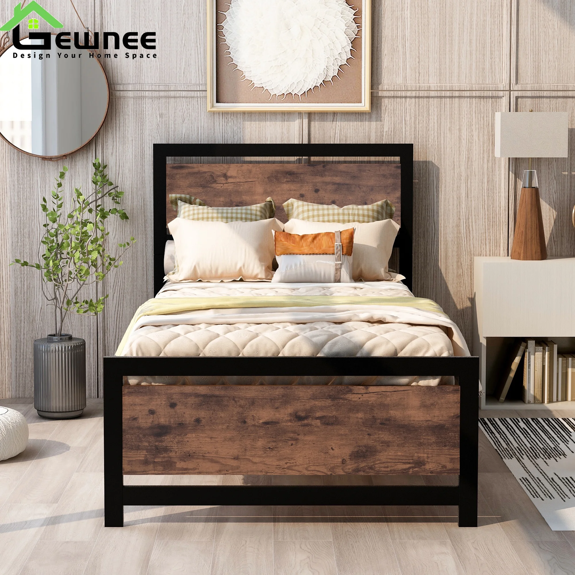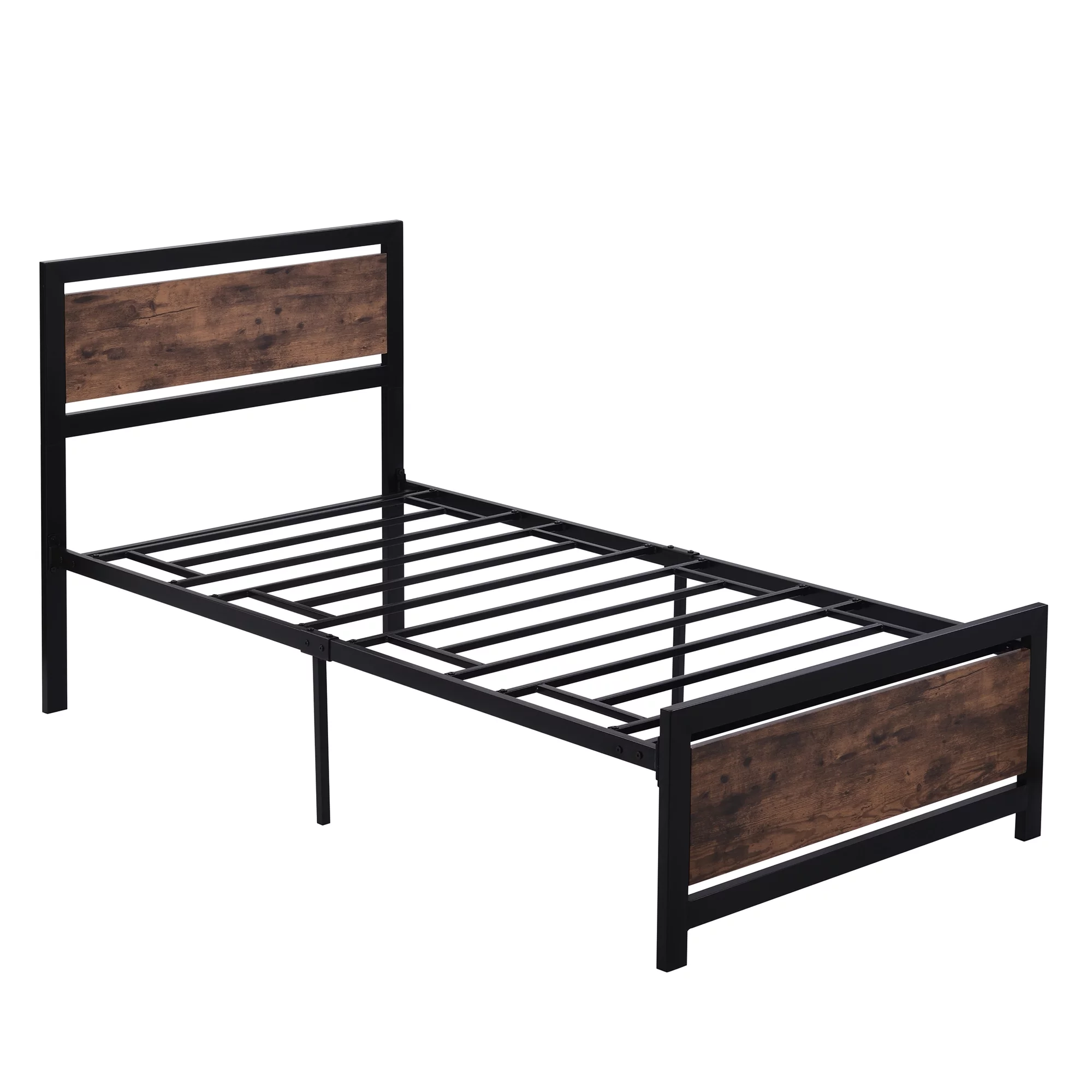 Gewnee Twin Size Kids Platform Bed Frame,Metal Bed Frame with Headboard and Footboard,Black