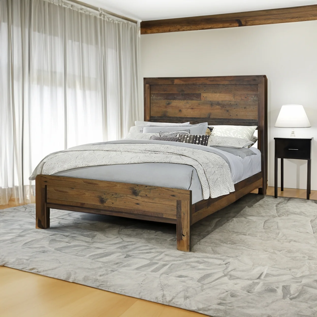 Rustic Panel Design Wooden Twin Size Bed with Block Legs Support, Brown- Saltoro Sherpi