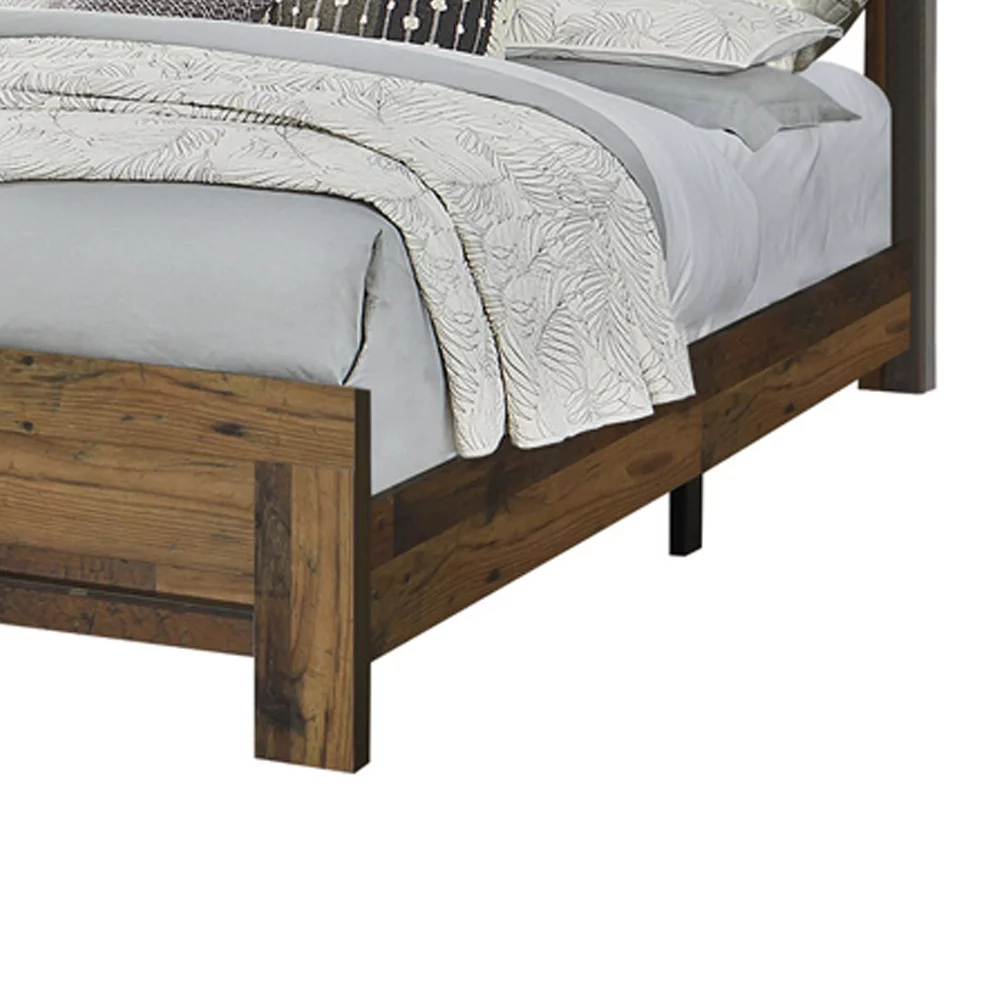 Contemporary Style Twin Size Bed with Rustic Details Dark Brown- Saltoro Sherpi