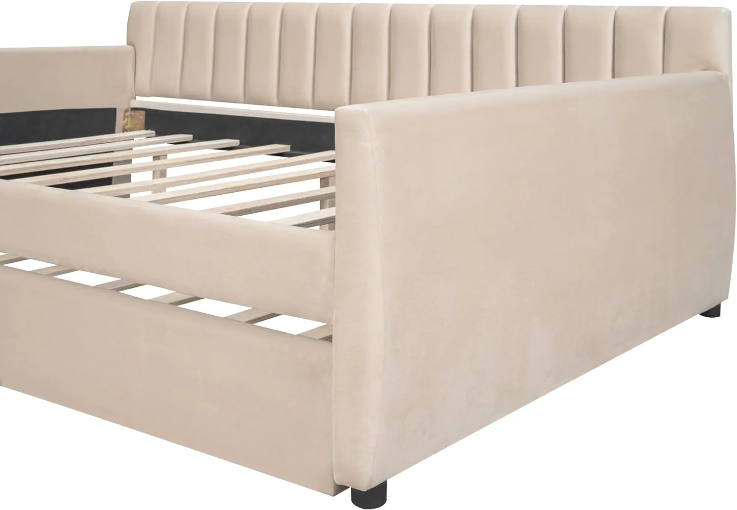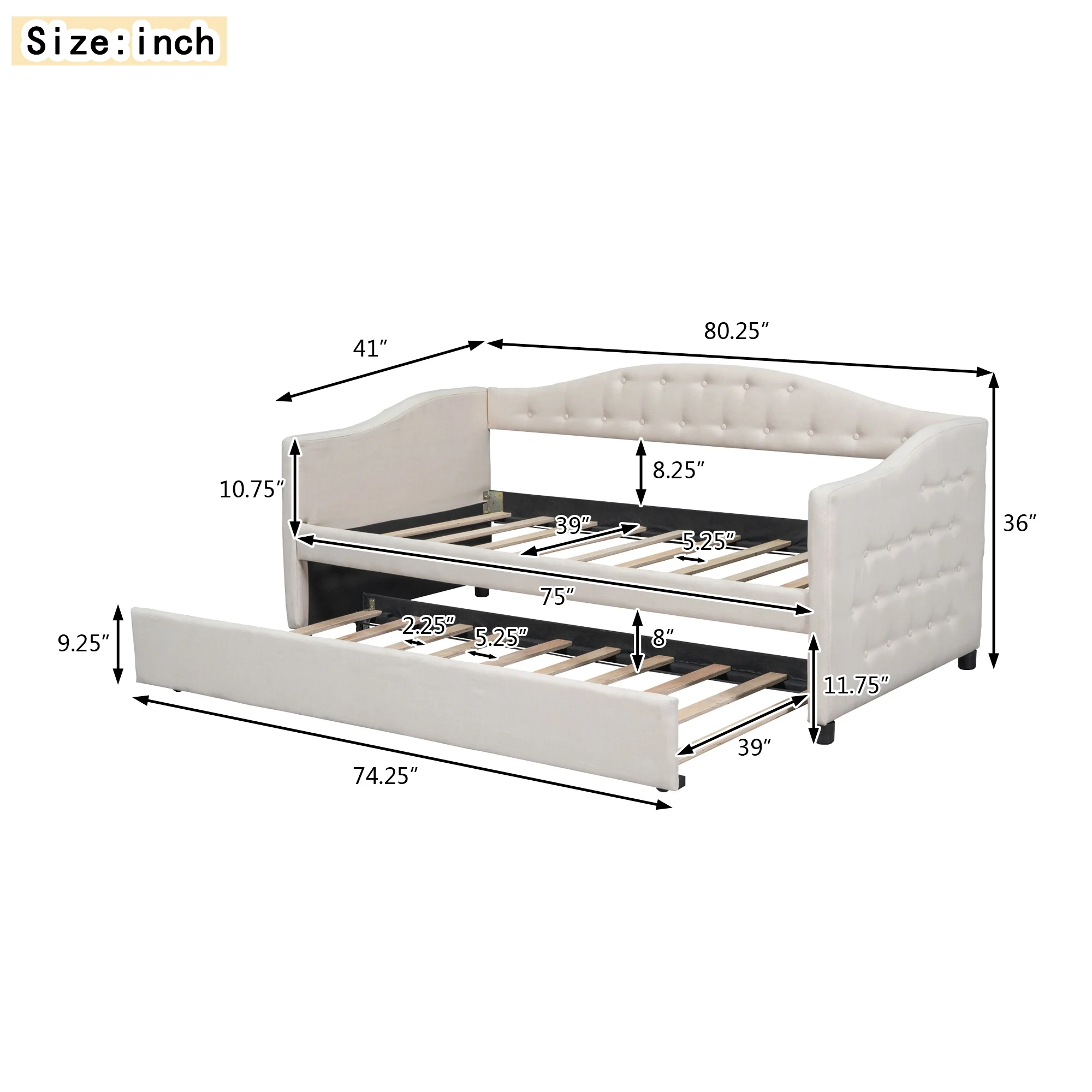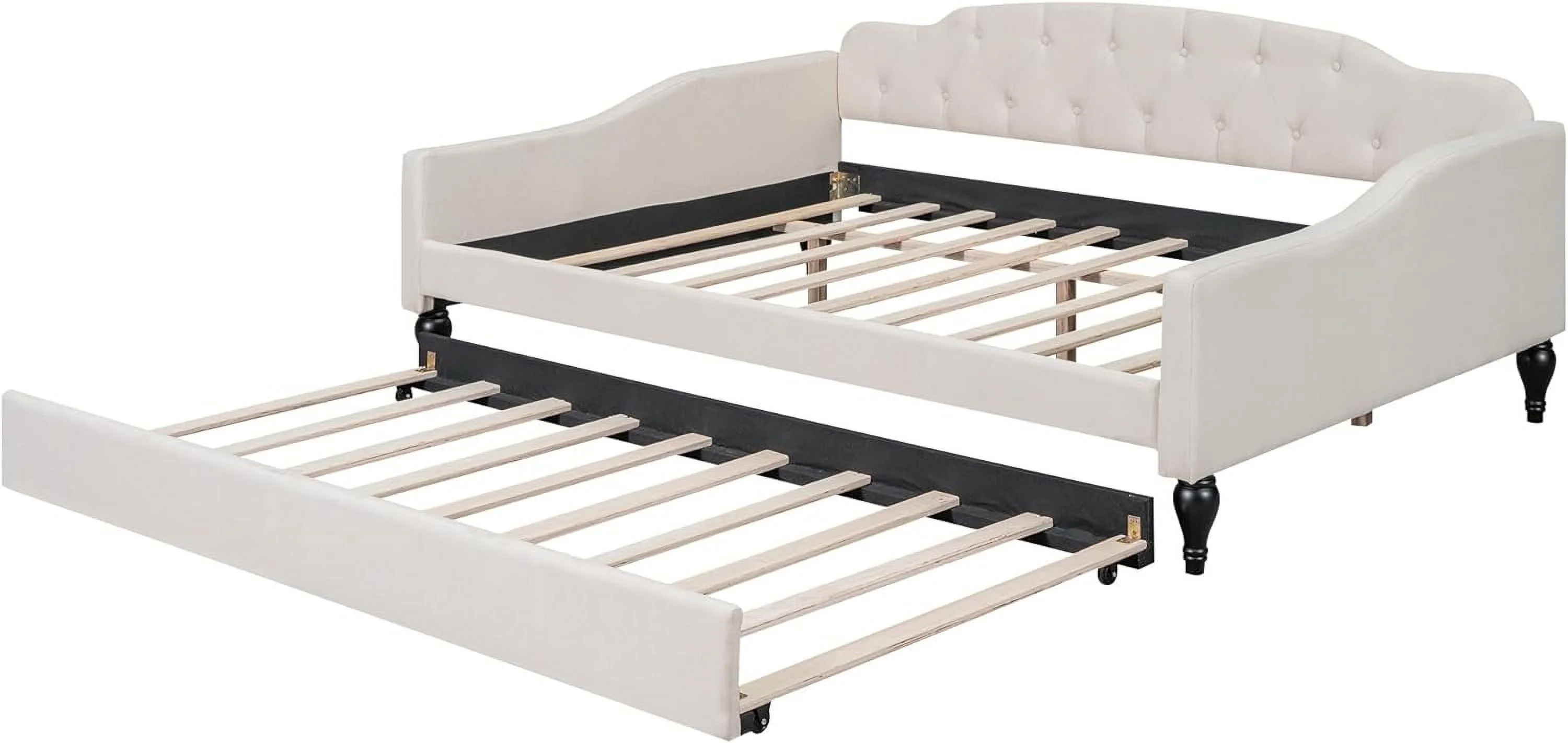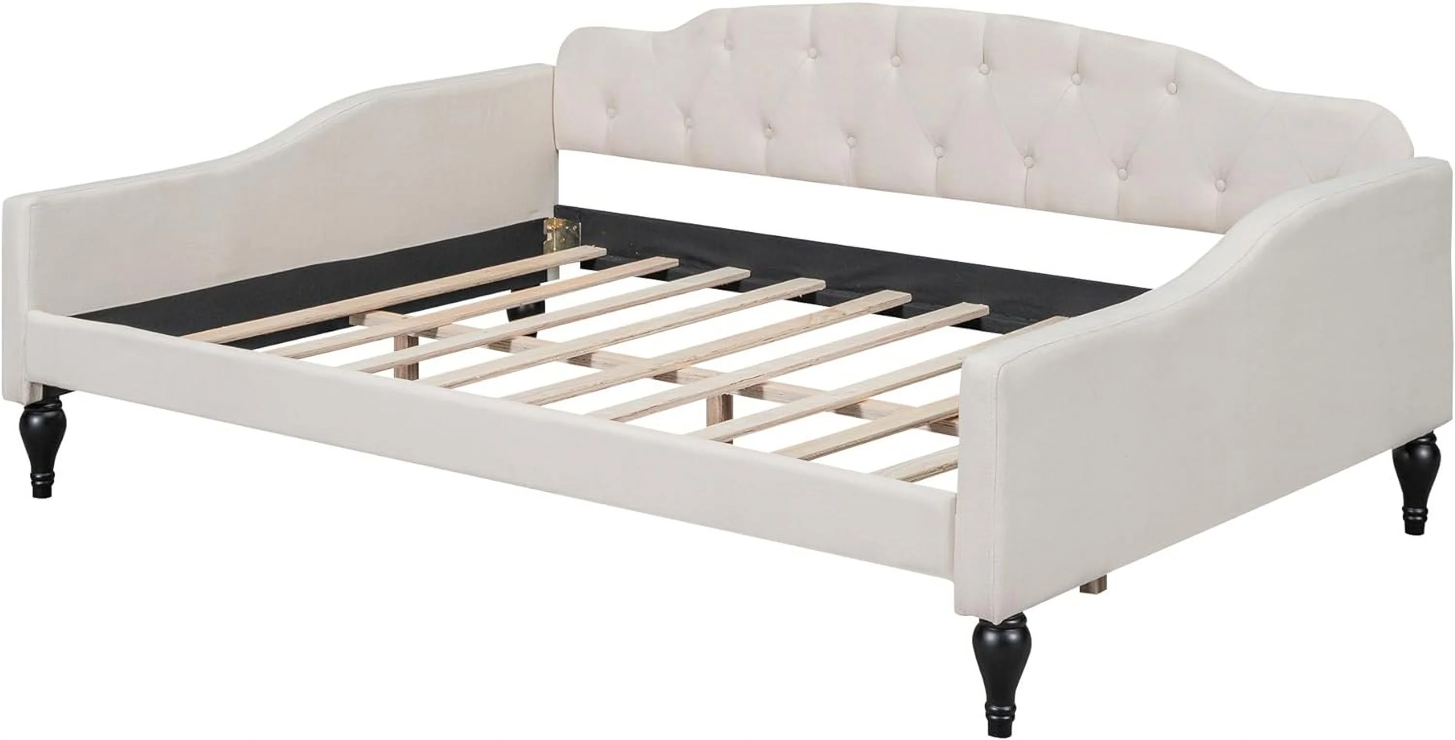 Full Size Upholsered Daybed, Lie Day Bed Frame, Boom ufed Sofa Bed -Ceury Desig For Bedroom Livig Room, Beige