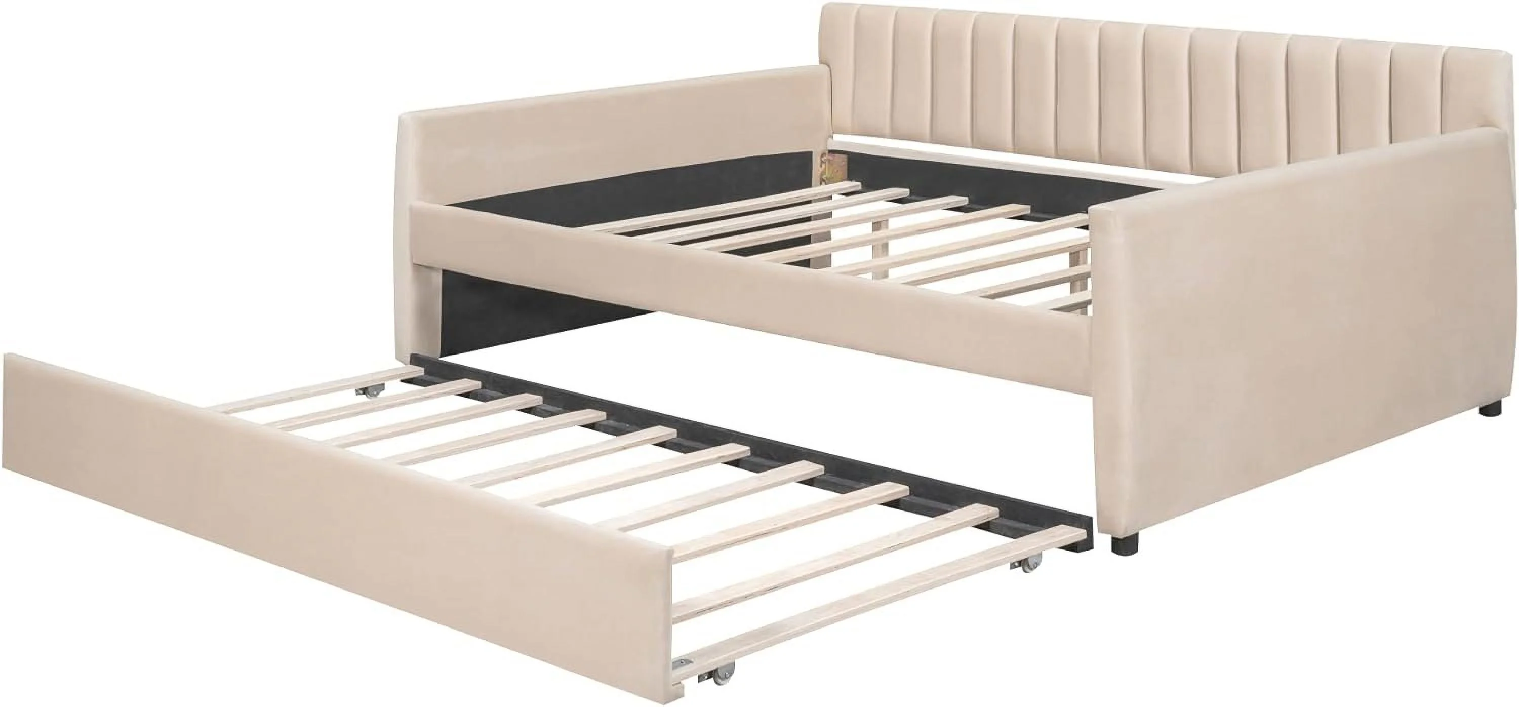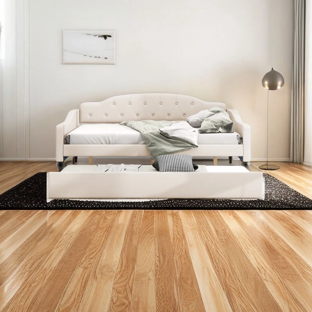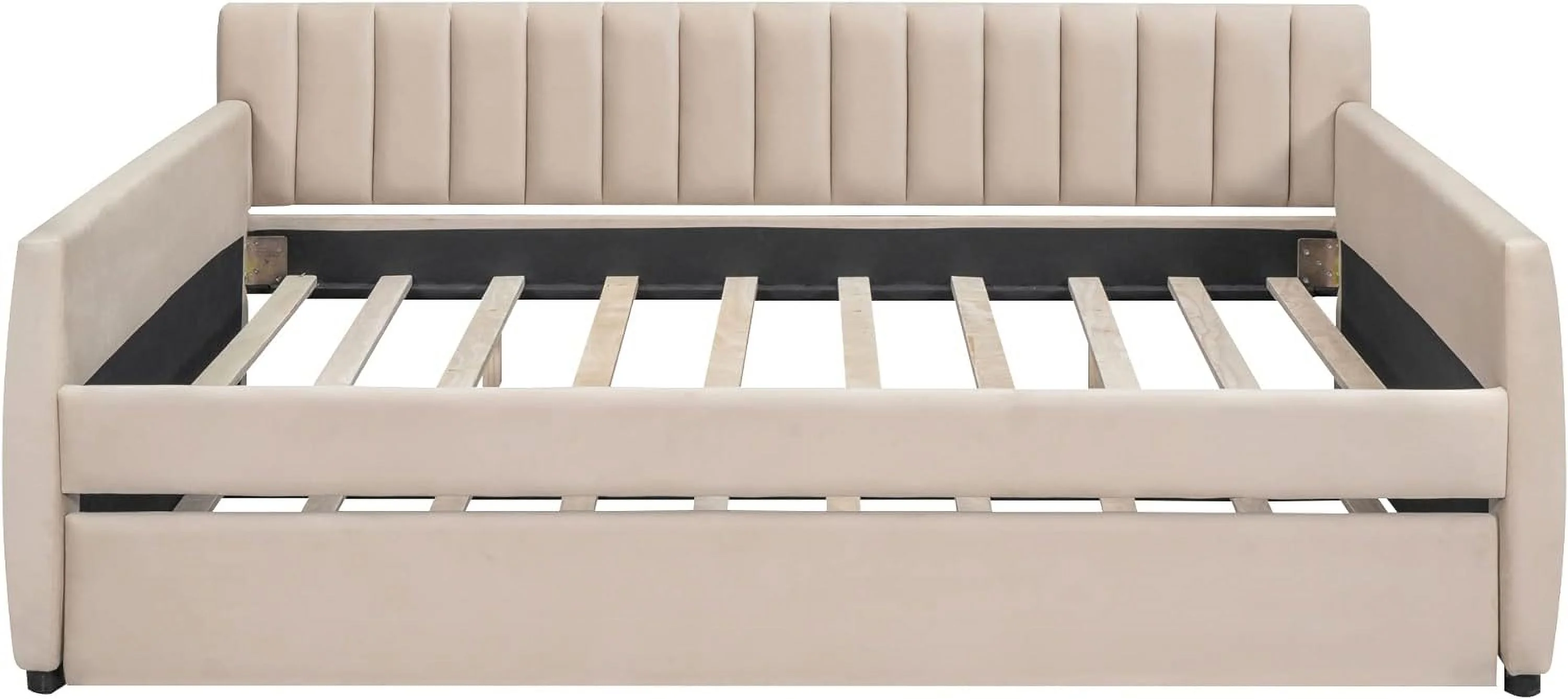 Full Size Upholsered Daybed, Lie Day Bed Frame, Boom ufed Sofa Bed -Ceury Desig For Bedroom Livig Room, Beige