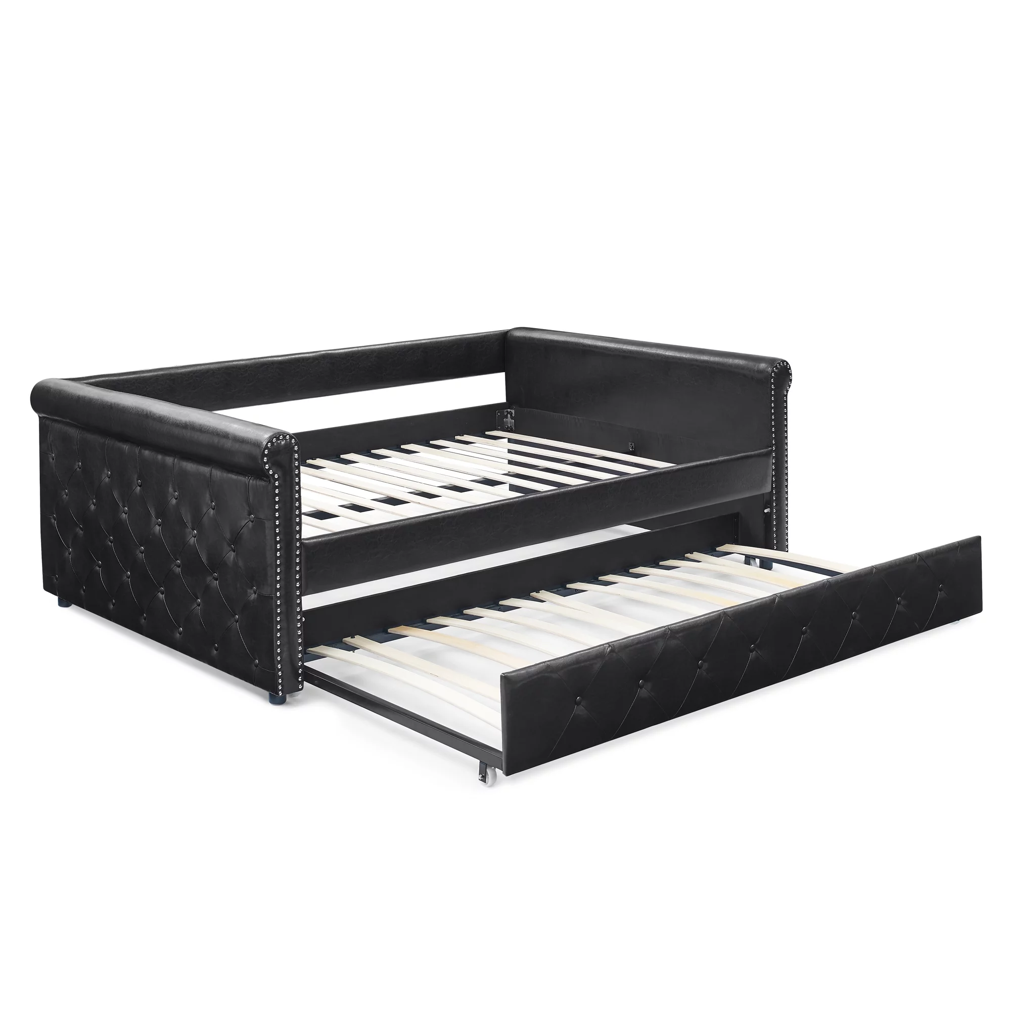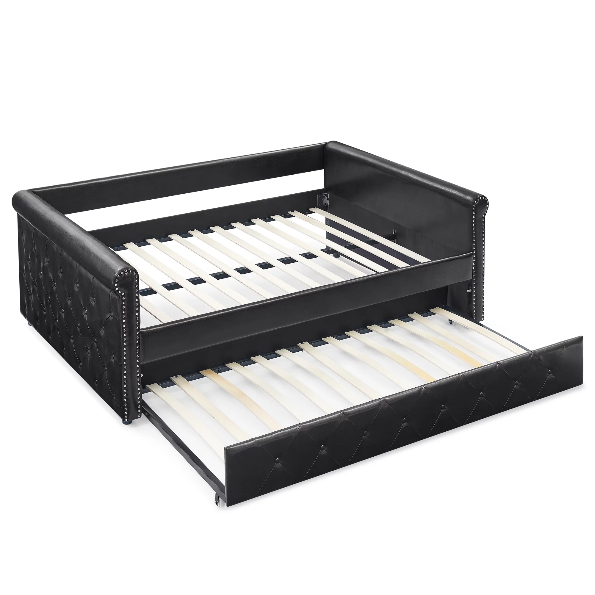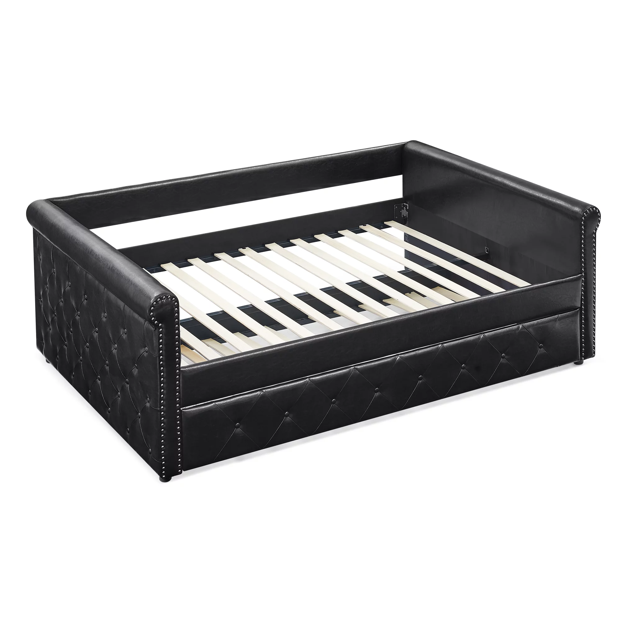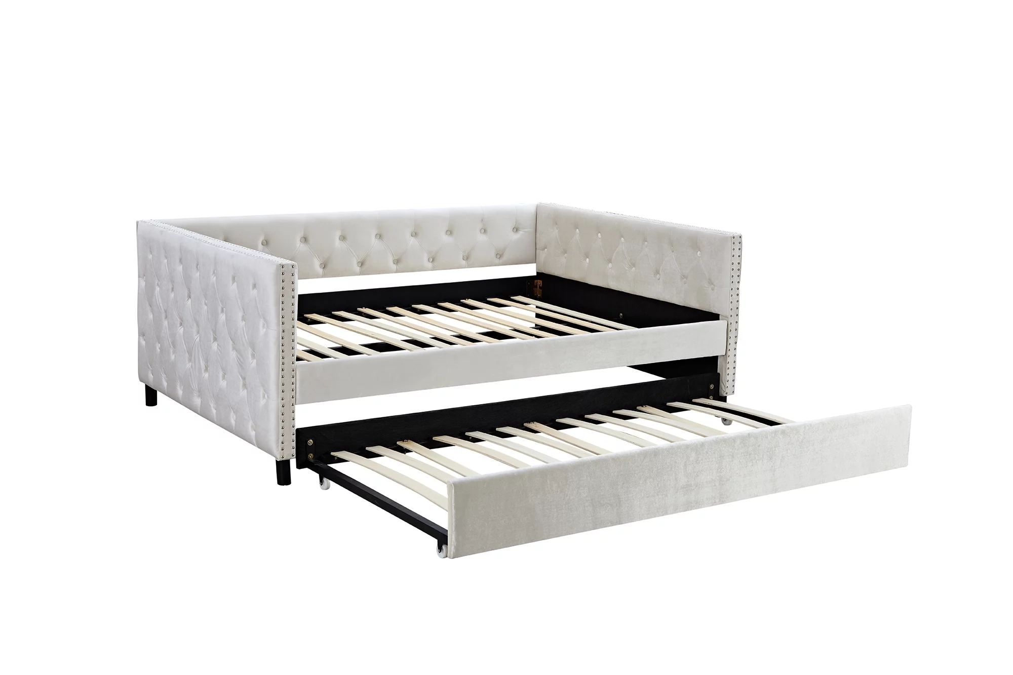 Full Size Upholsered Daybed, Lie Day Bed Frame, Boom ufed Sofa Bed -Ceury Desig For Bedroom Livig Room, Beige