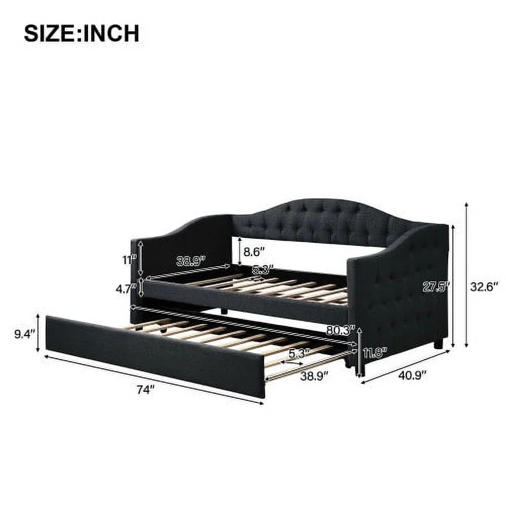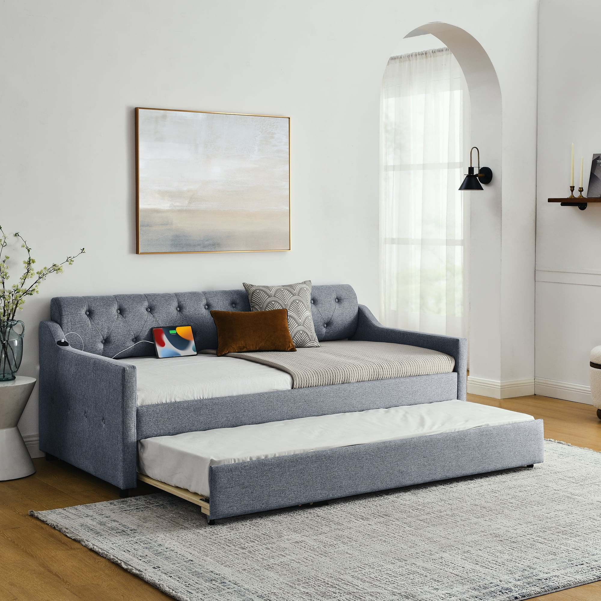 CoSoTower Twin Size Upholstery Daybed with Twin Size Erectable Trundle and USB Charging Design, Linen Grey