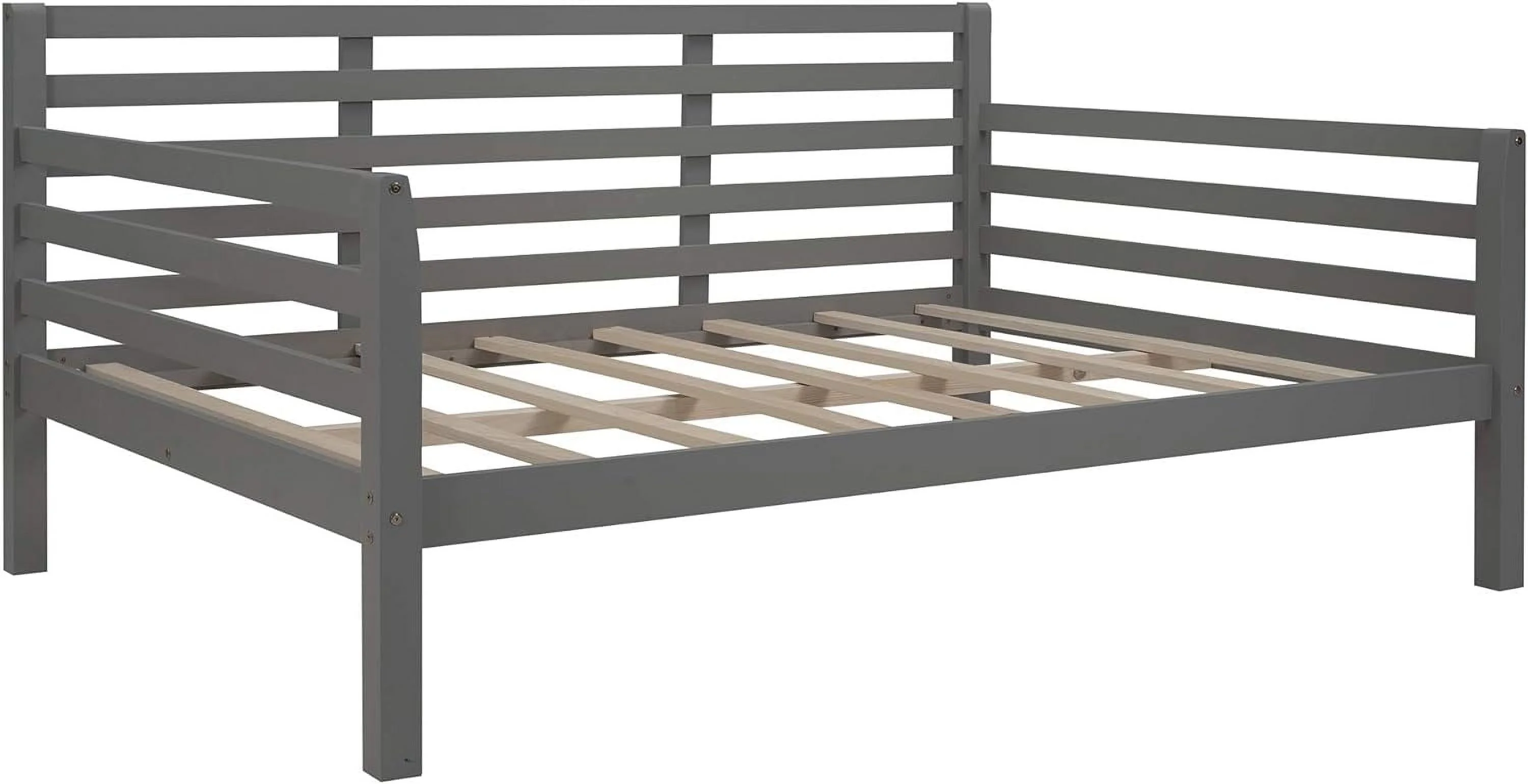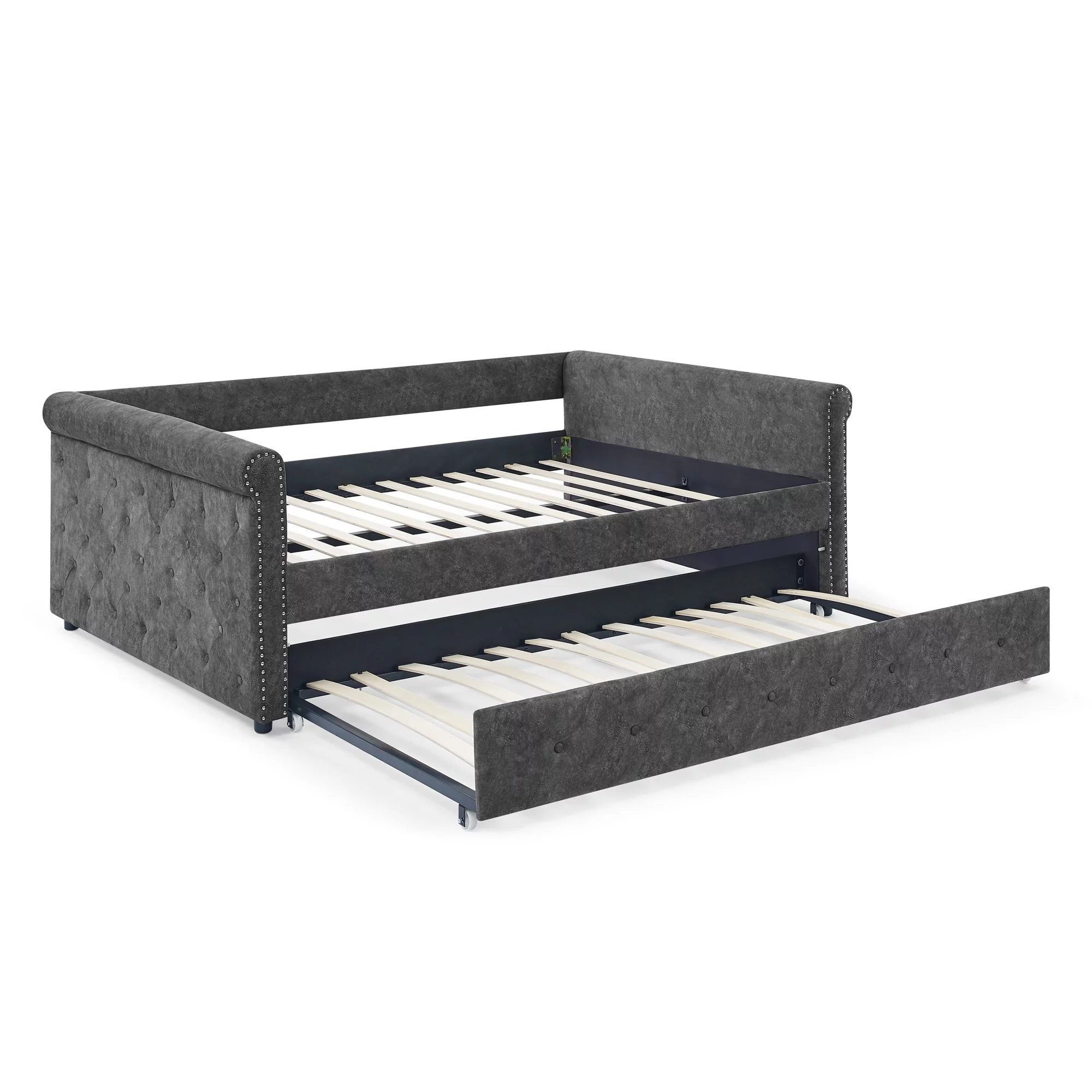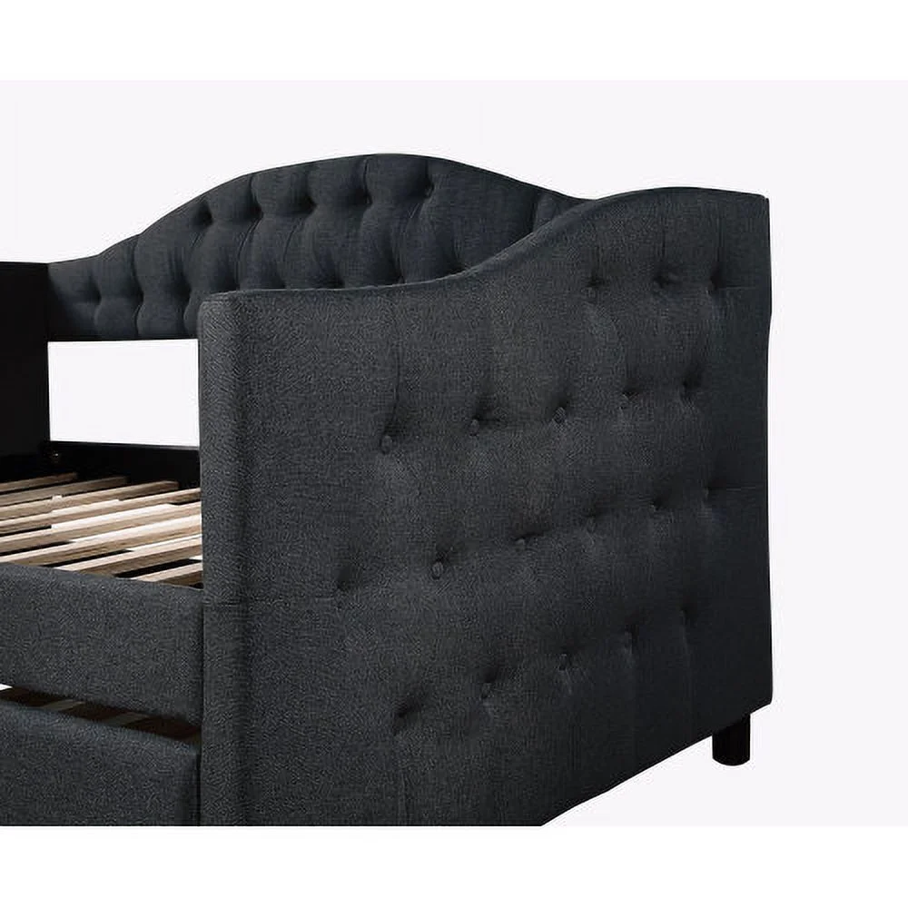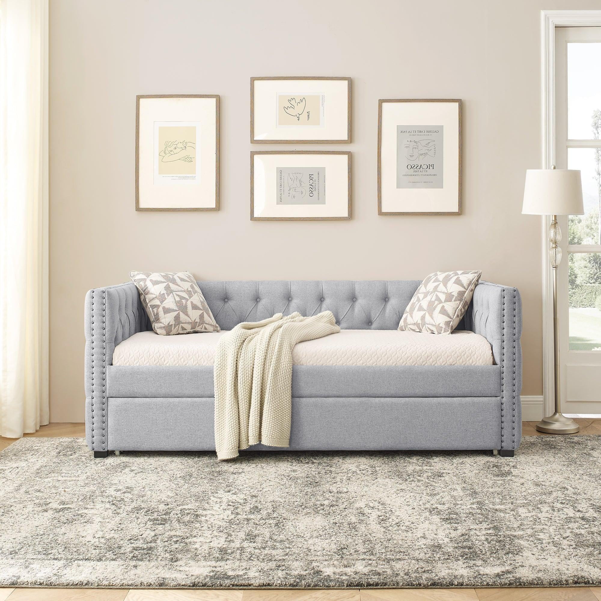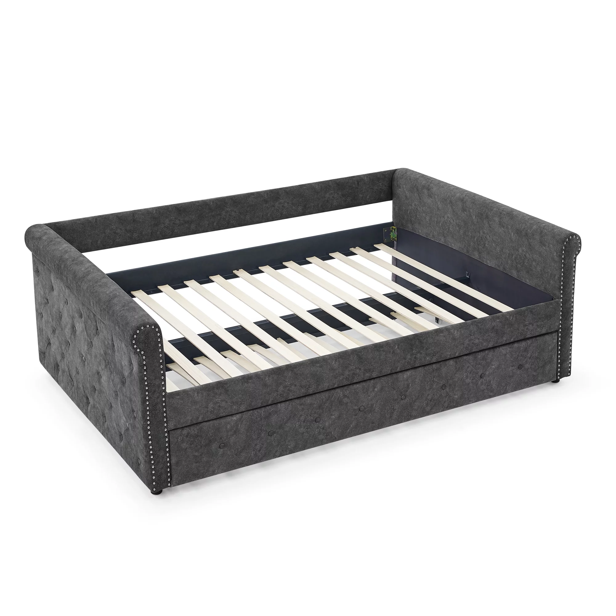 Upholstered Twin Size Daybed with Two Drawers, with Button and Copper Nail on Square Arms, Grey (82.75''x43''x30.75'')