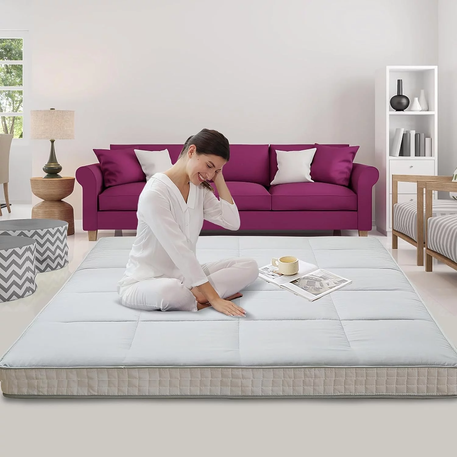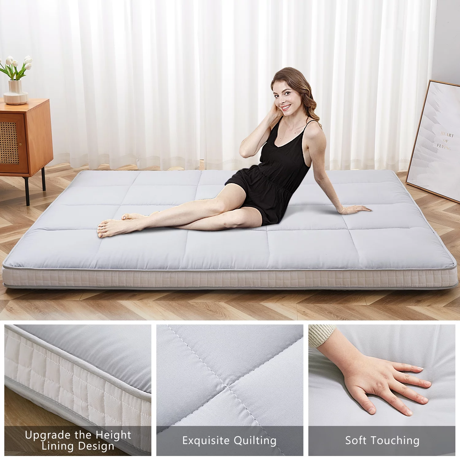 Floor Mattress,Japanese Style Futon Mattress,Portable Camping Mattress Sleeping Pad, Gray, Queen