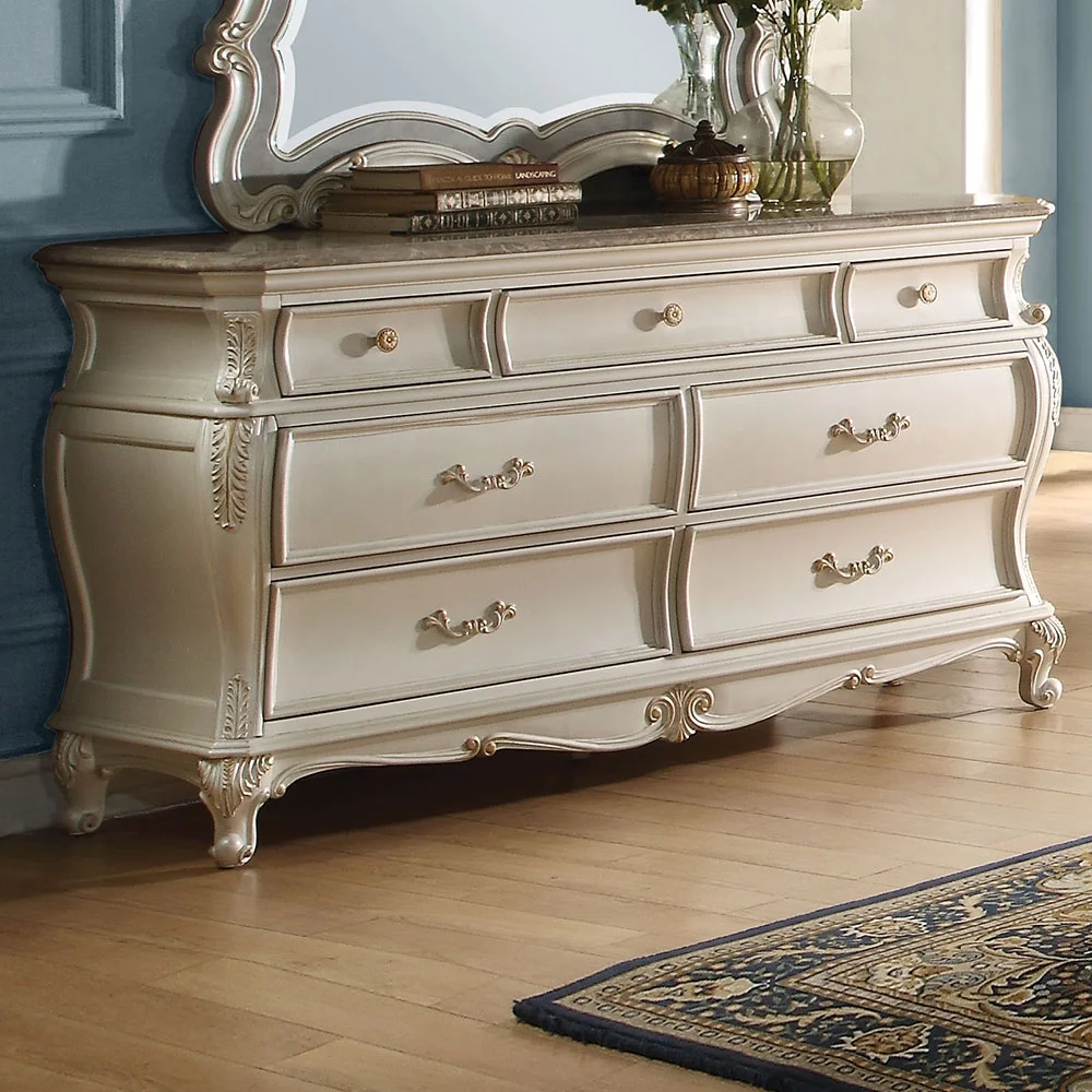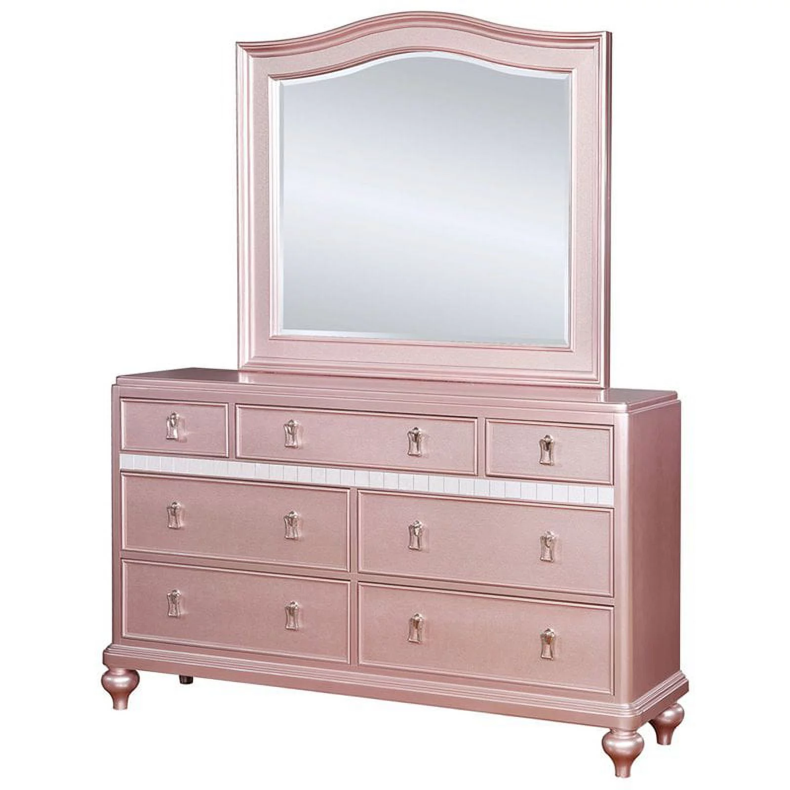 Furniture of America Appell 2-Piece Wood Rose Gold Dresser and Camel Back Mirror