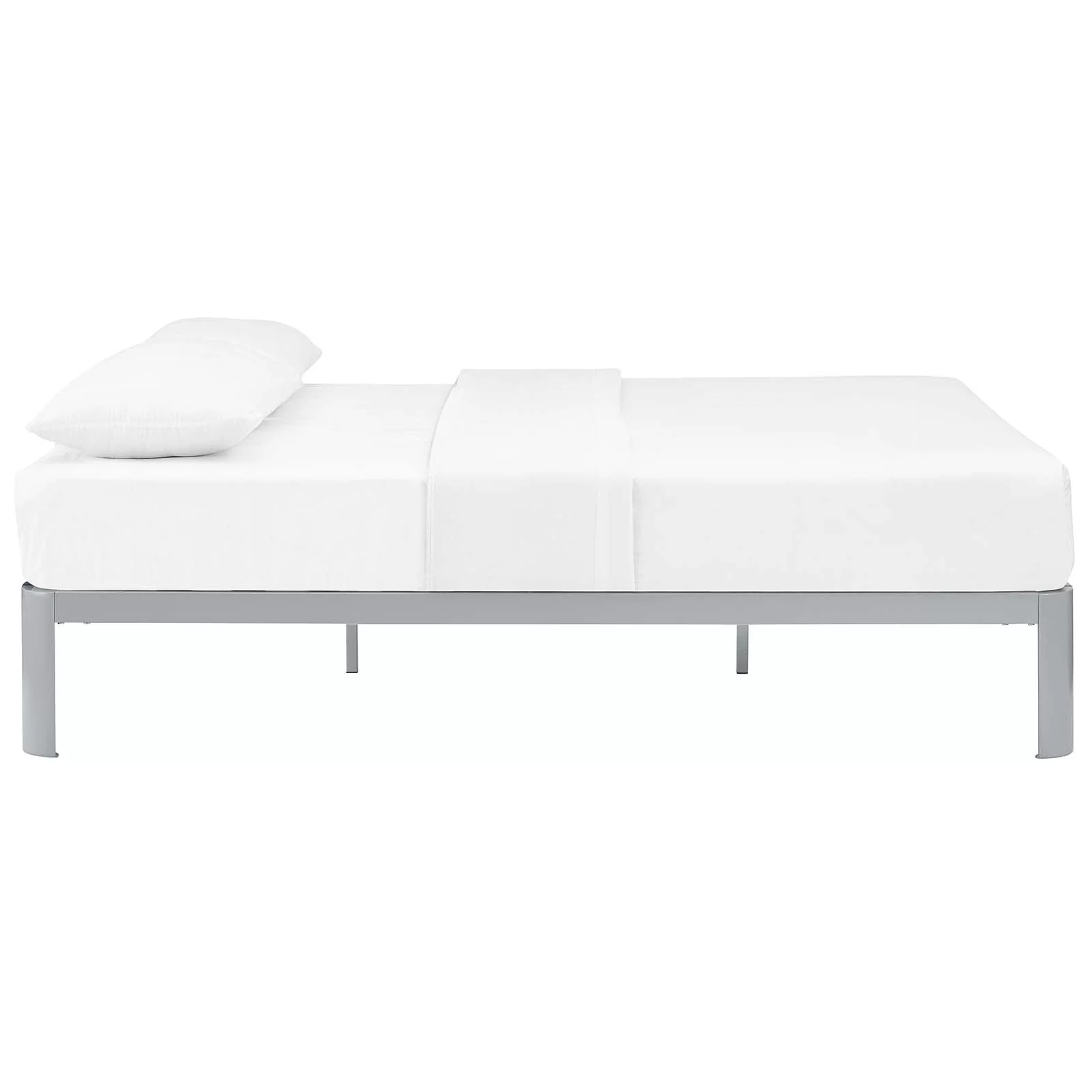 Modern Contemporary Urban Design Bedroom Full Size Platform Bed Frame, Grey Gray, Metal Steel