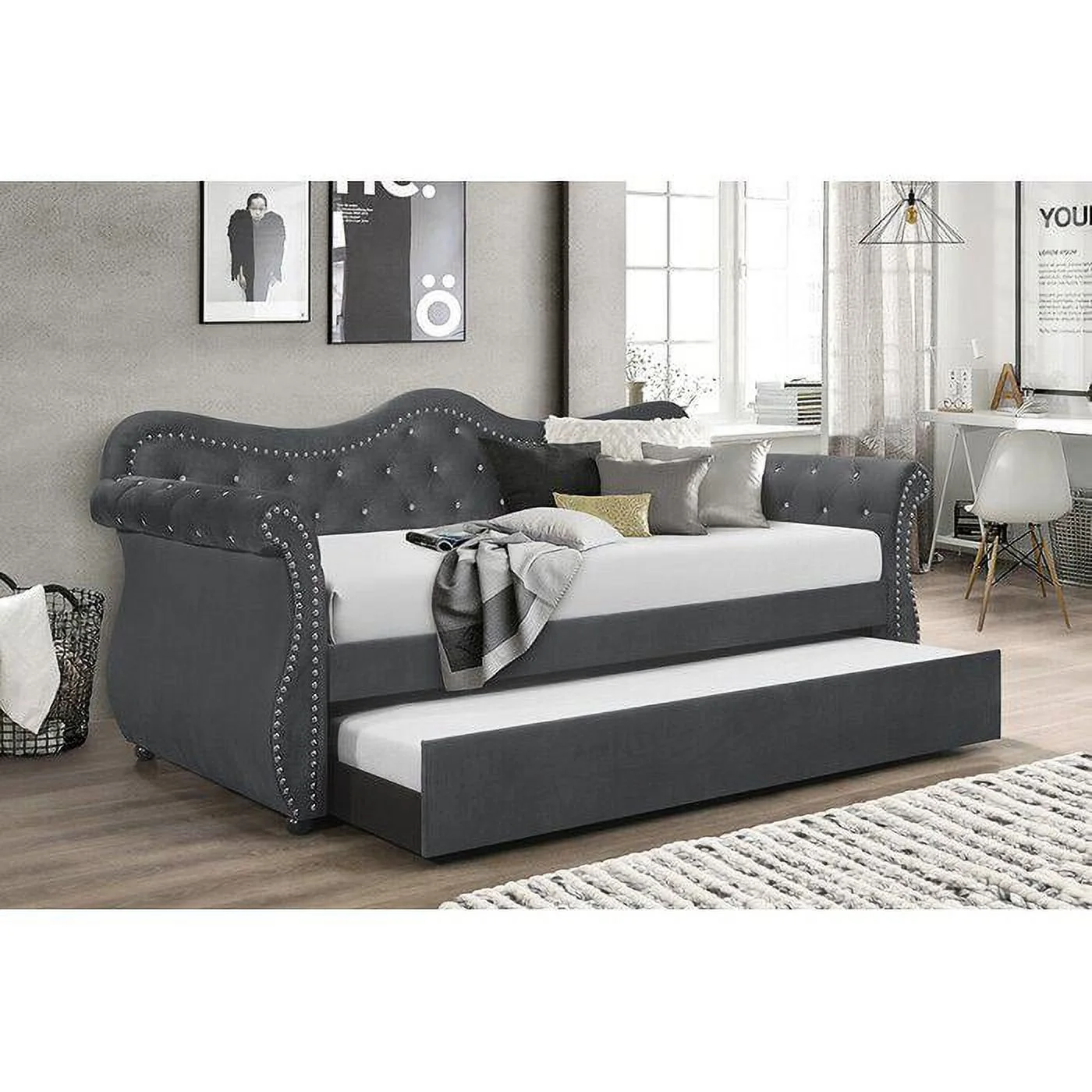 Baxton Studio Eliza Modern and Contemporary Fabric Upholstered Daybed with Trundle