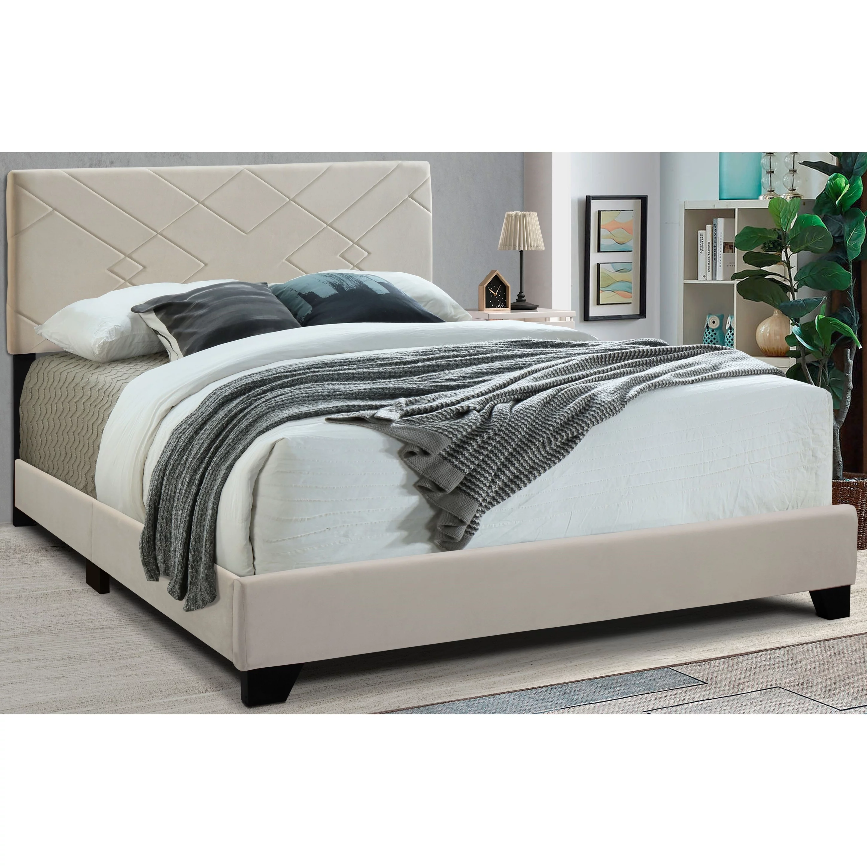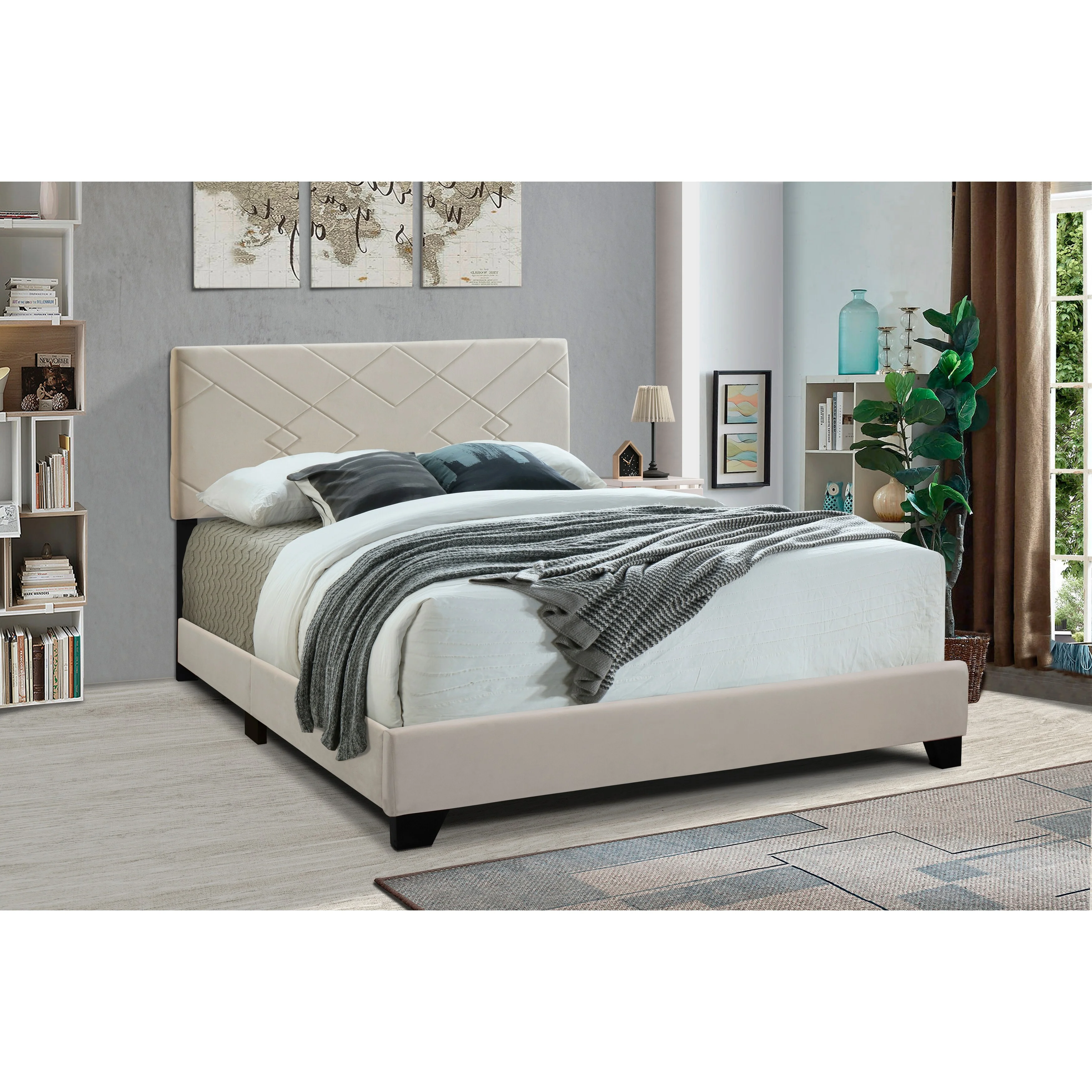 J & M Furniture 15544-Q 63.4 x 79.5 x 53.1 in. Alice Queen Size Bed, Matte Gray