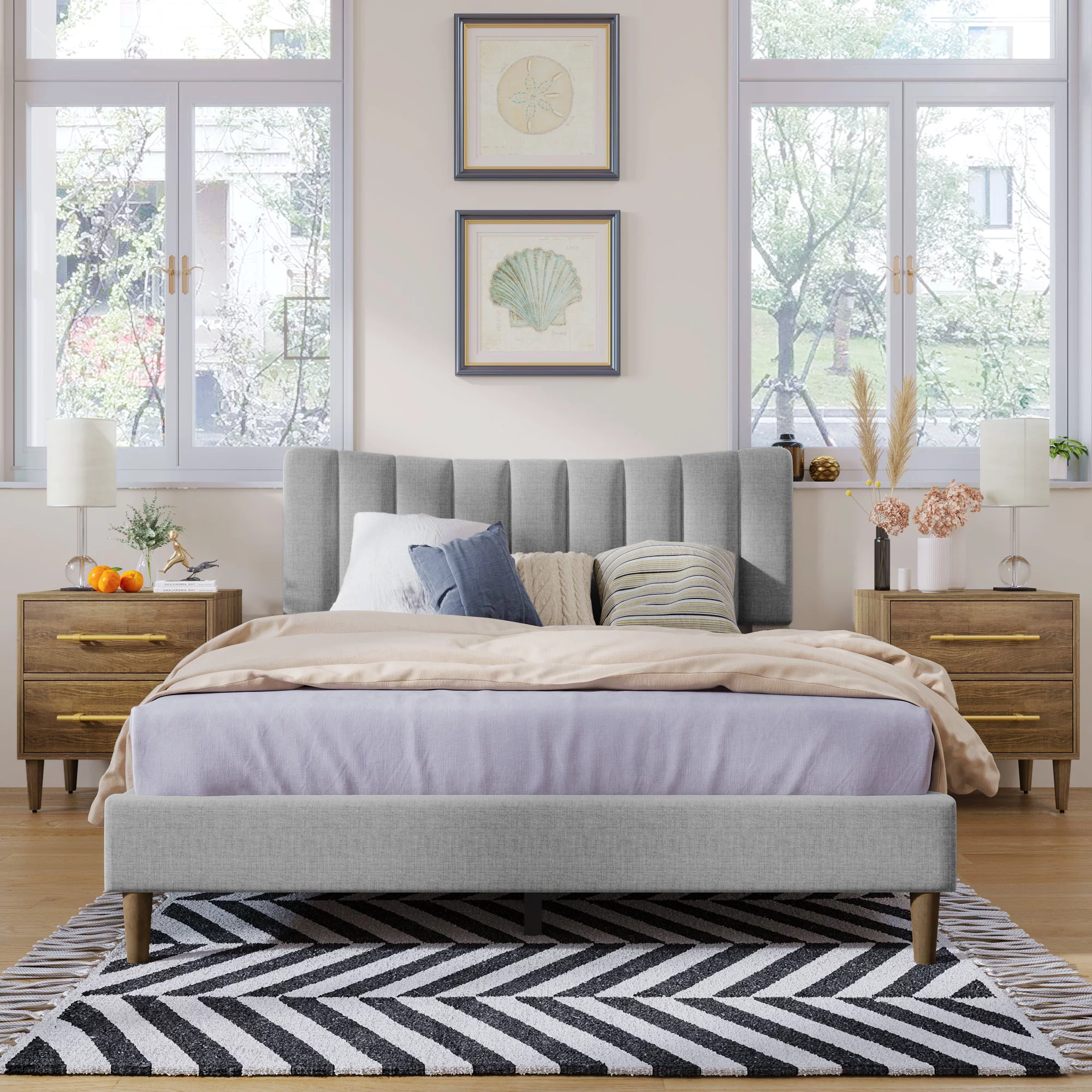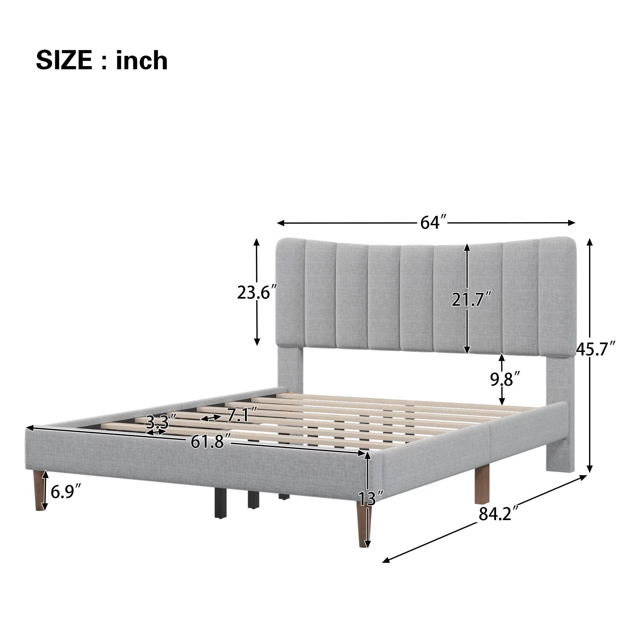 Wooden Upholstered Platform bed with a Hydraulic Storage System,Queen size