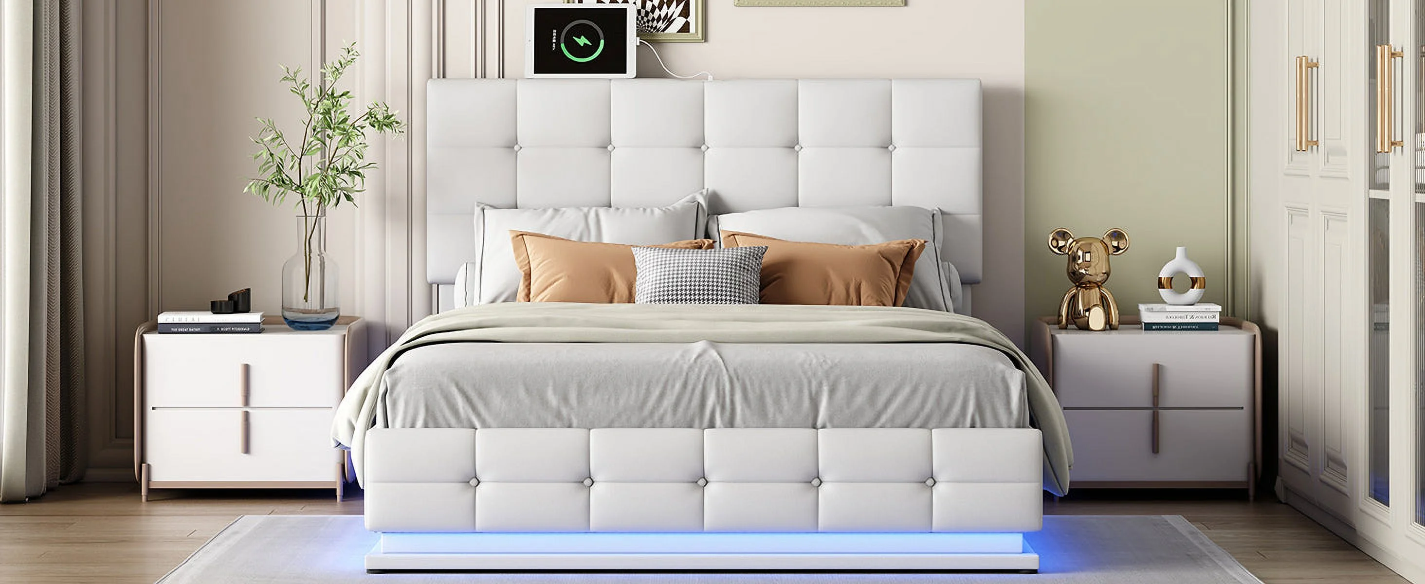Luxury Dream Queen Bed with Smart Storage and LED Illumination - White