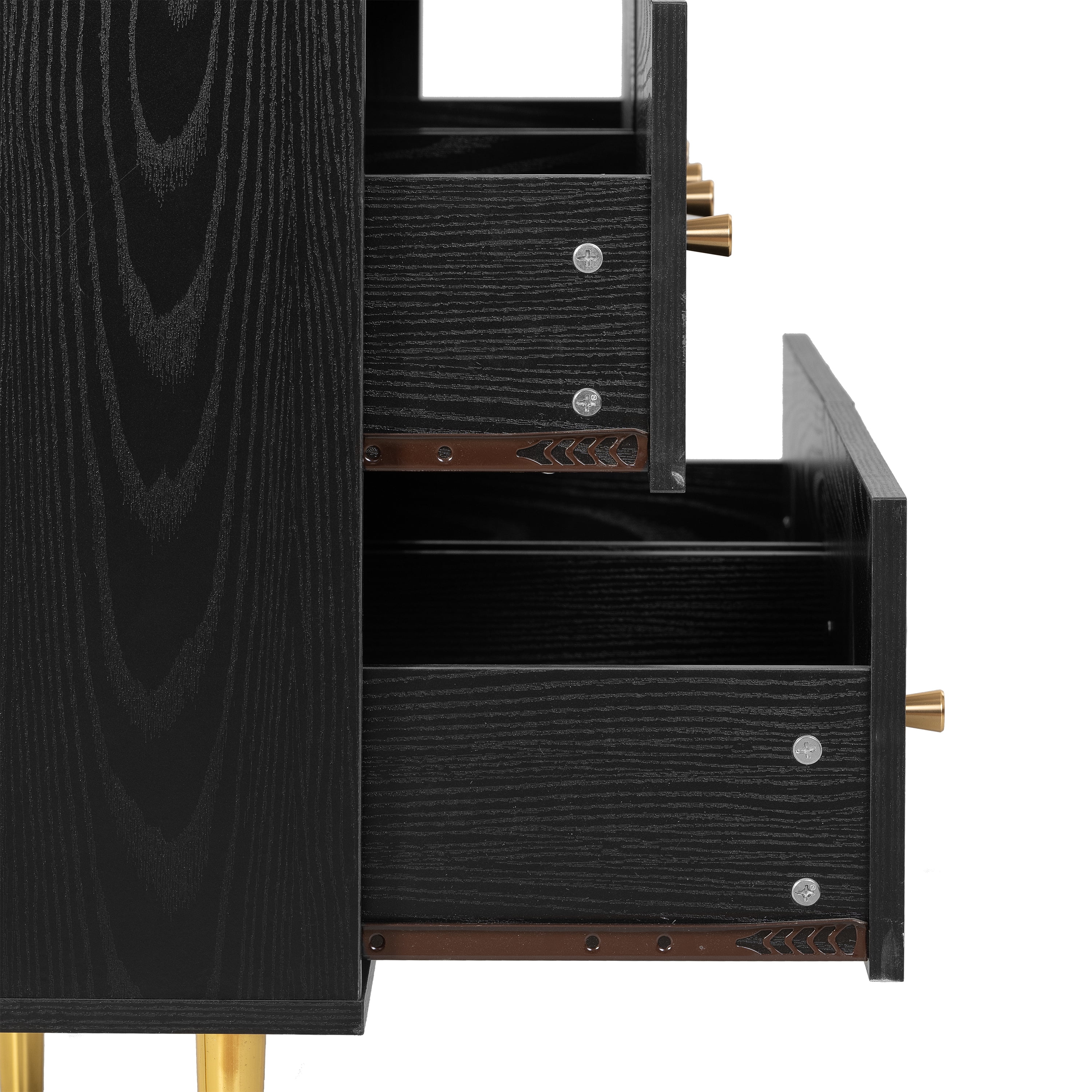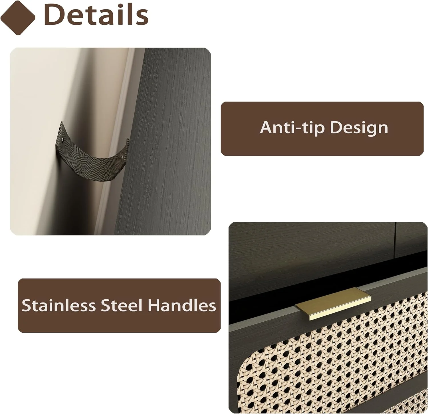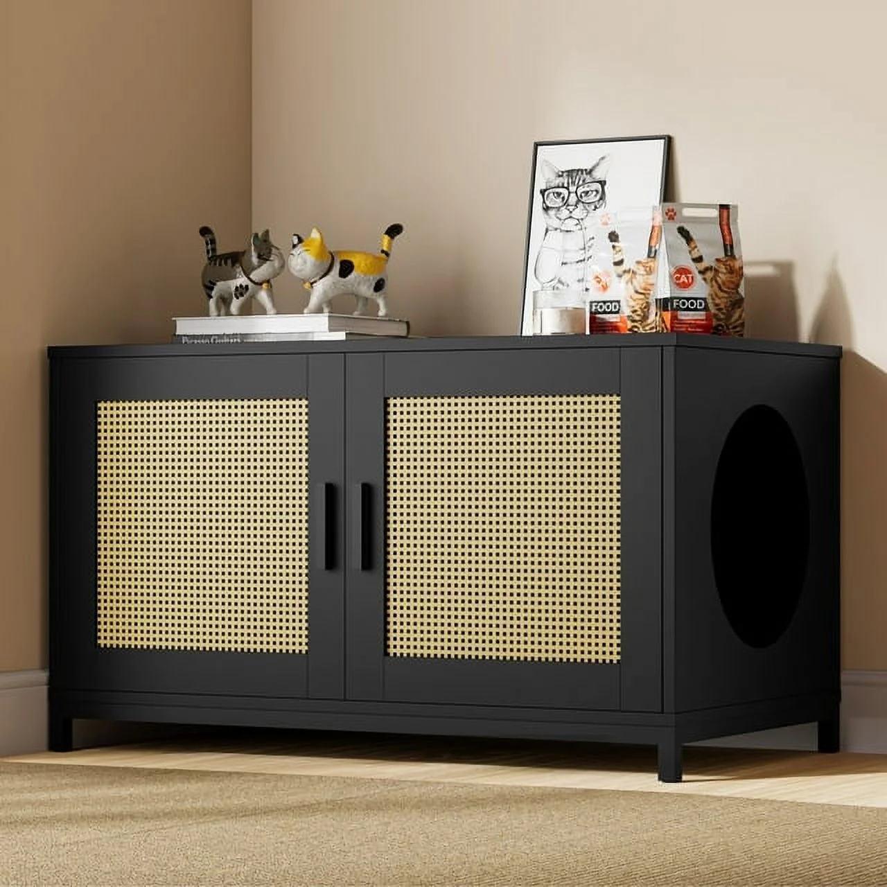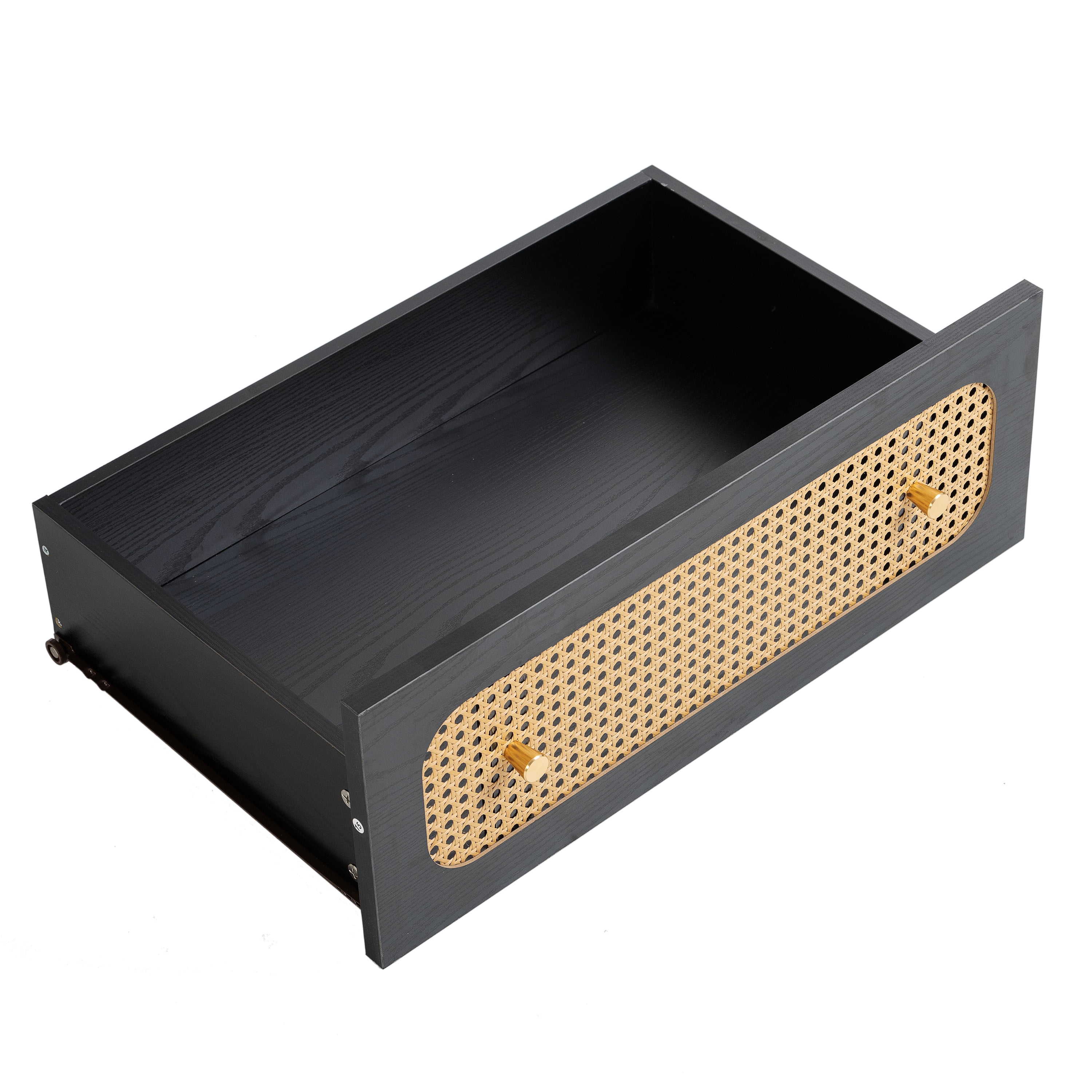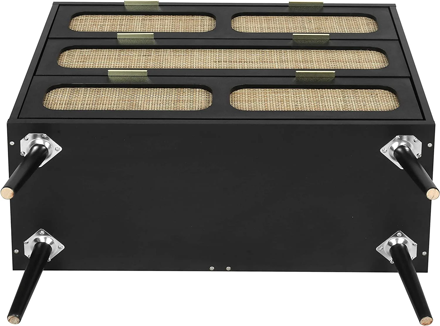 Glavbiku Modern 6 Drawers Rattan Dresser Table with Metal Handles Cabinet for Bedroom,Black,Adult