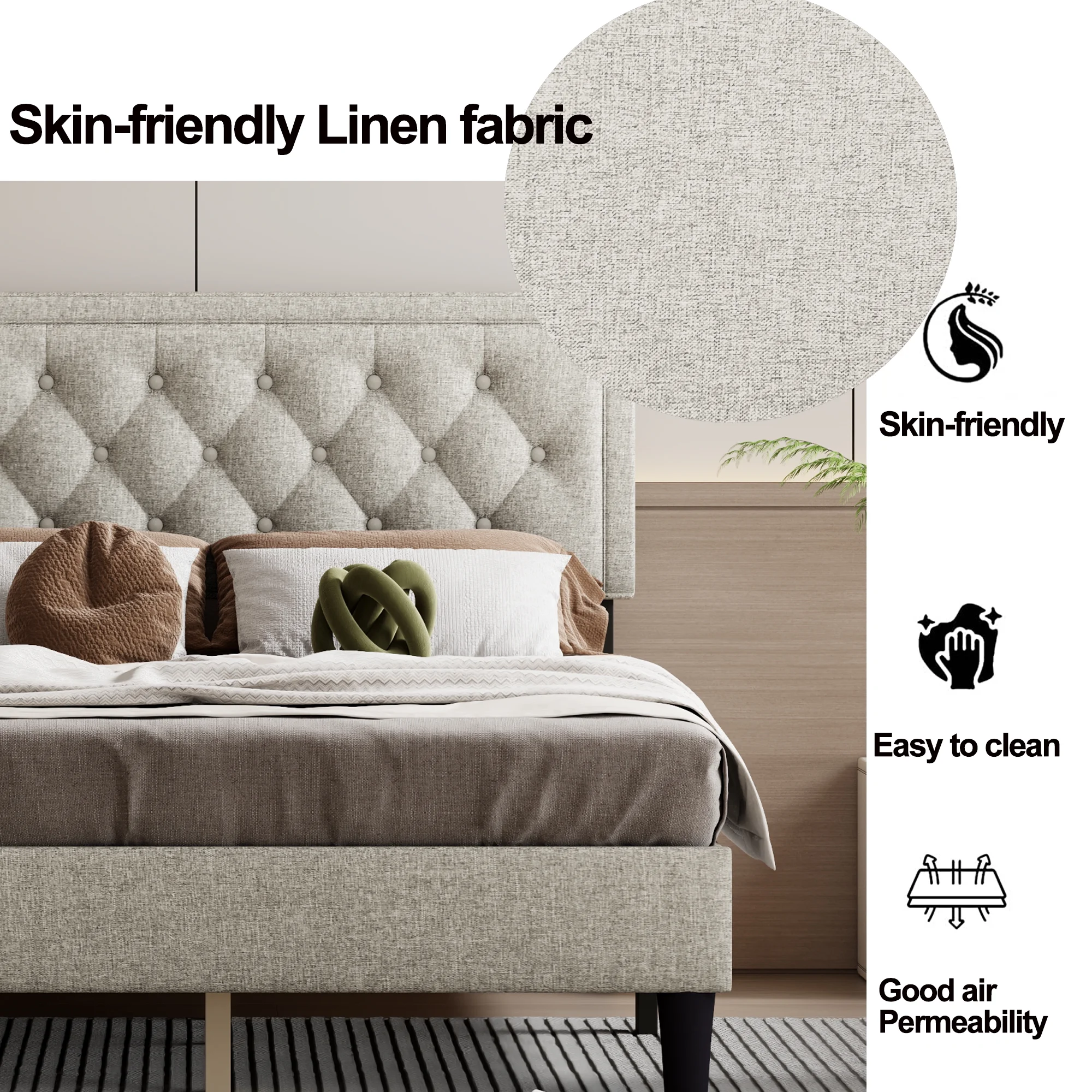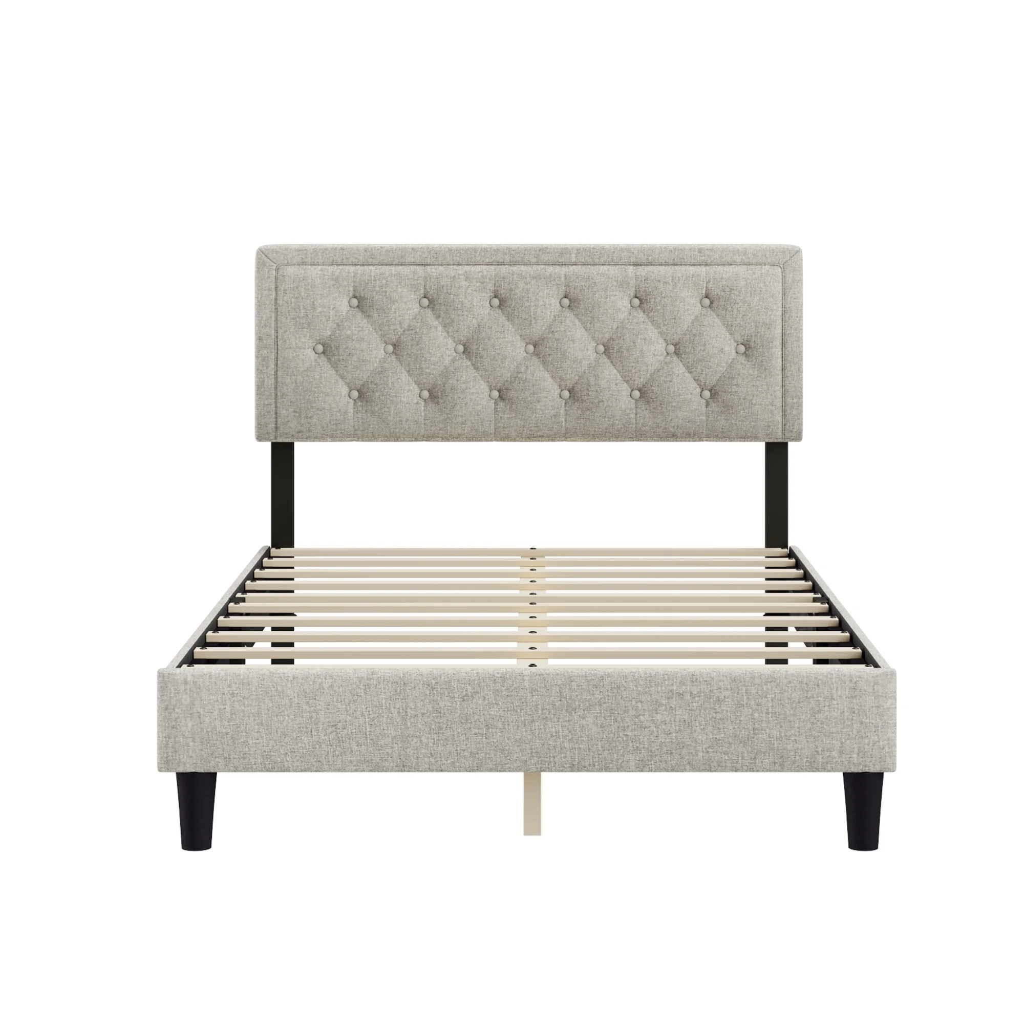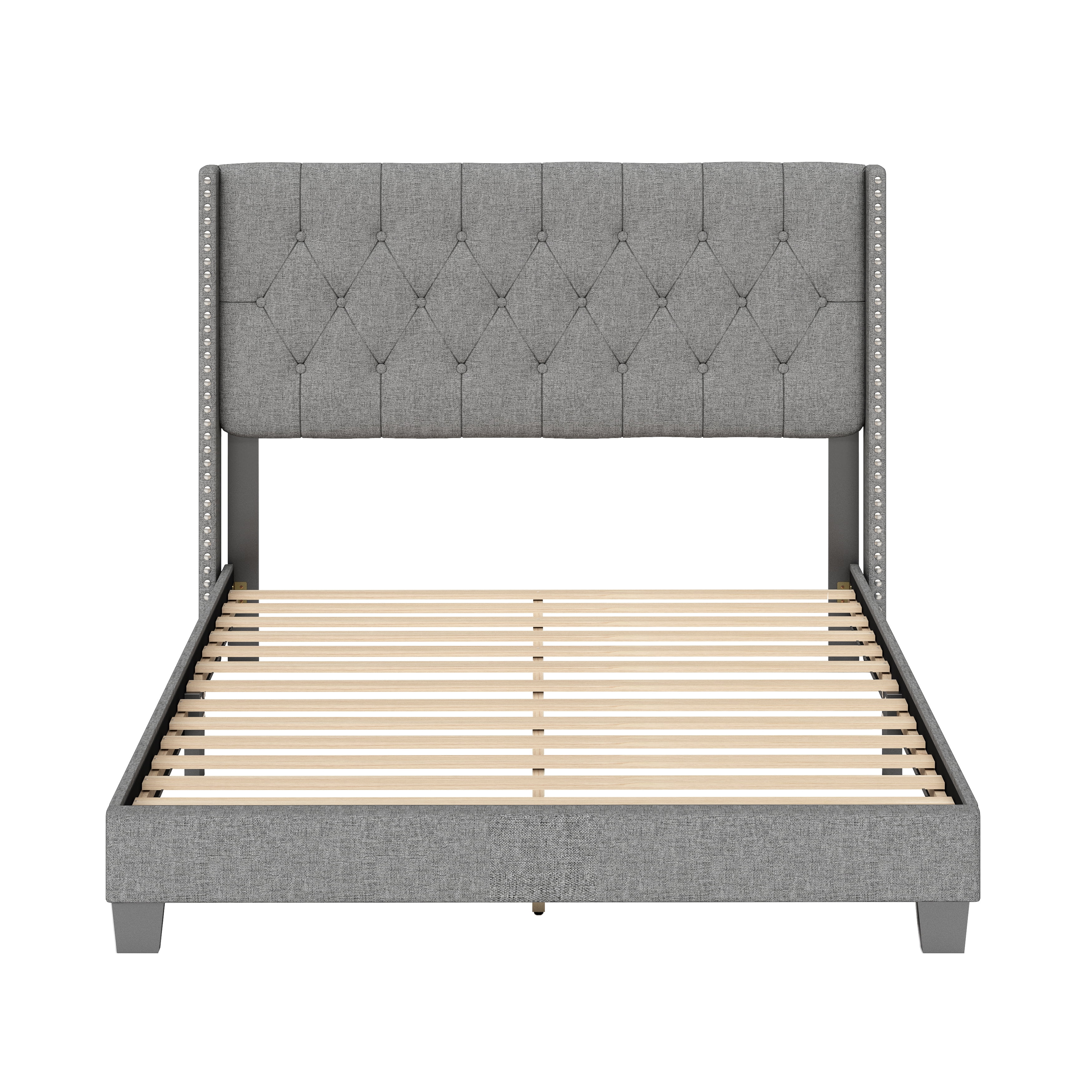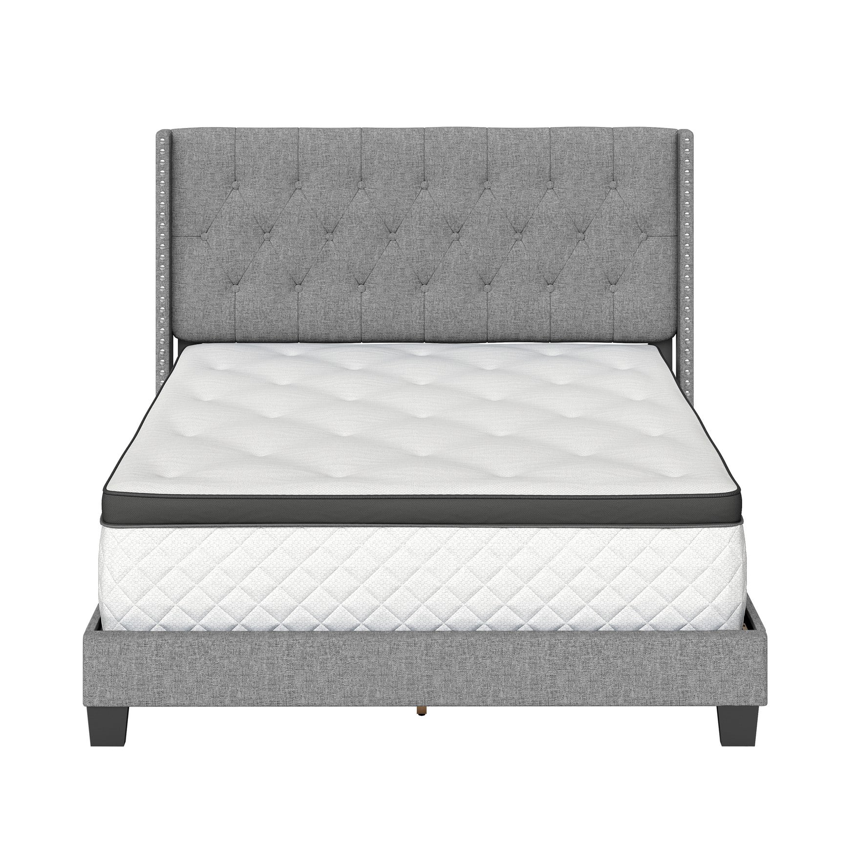 Boyd Sleep Mia Linen Panel Upholstered Platform Bed Frame, Grey, Queen
