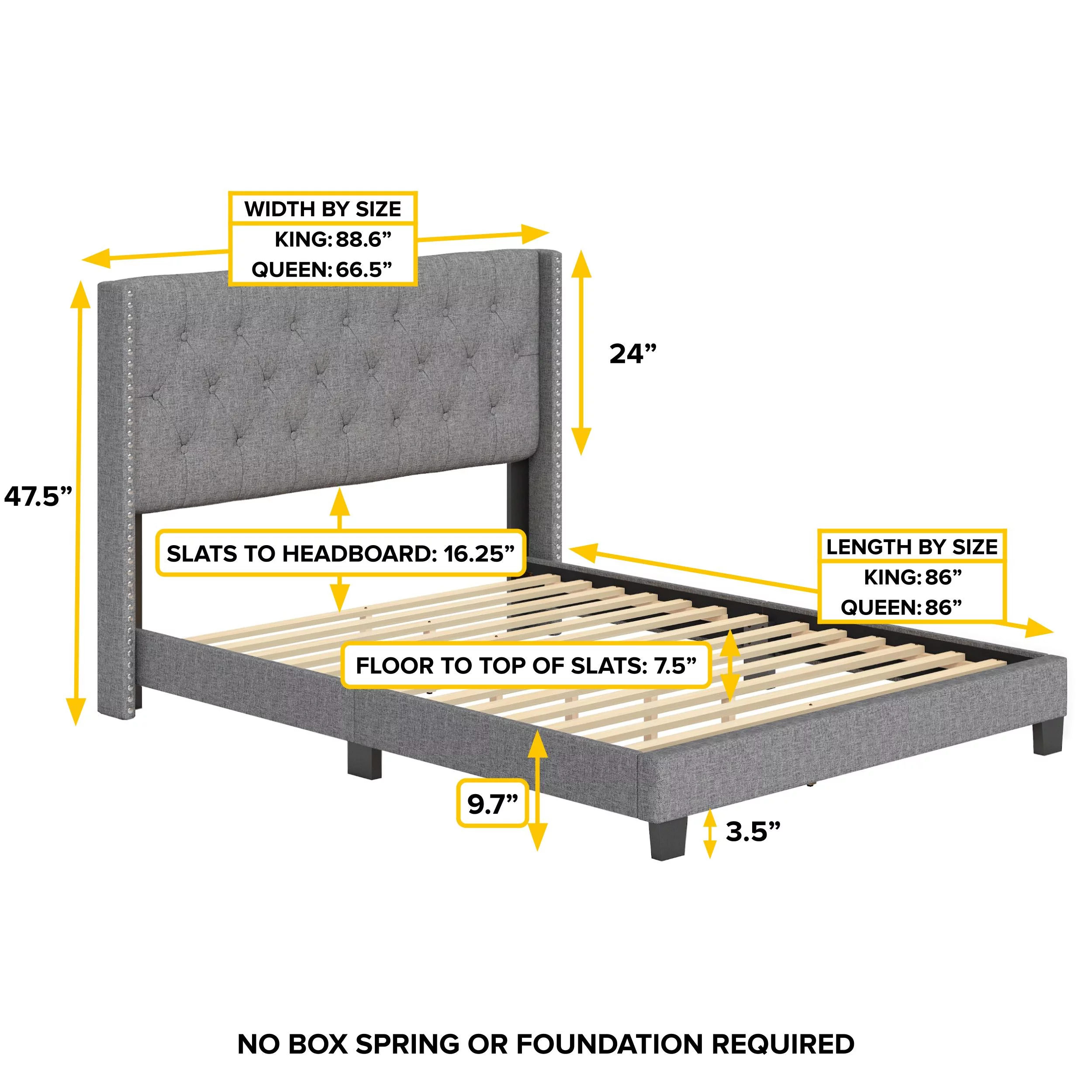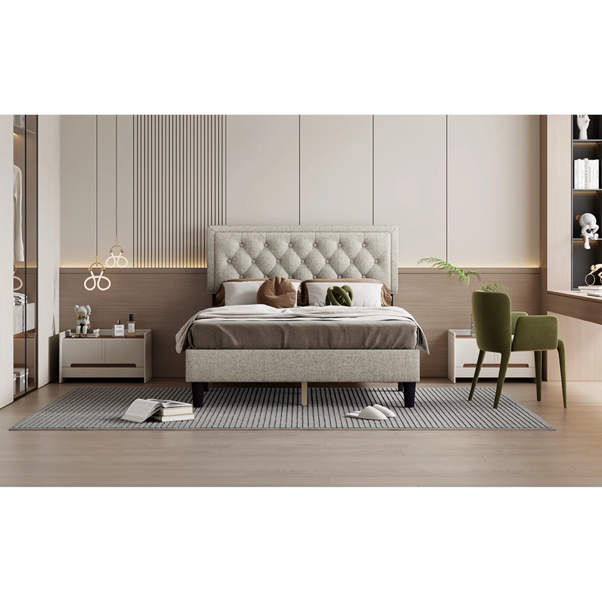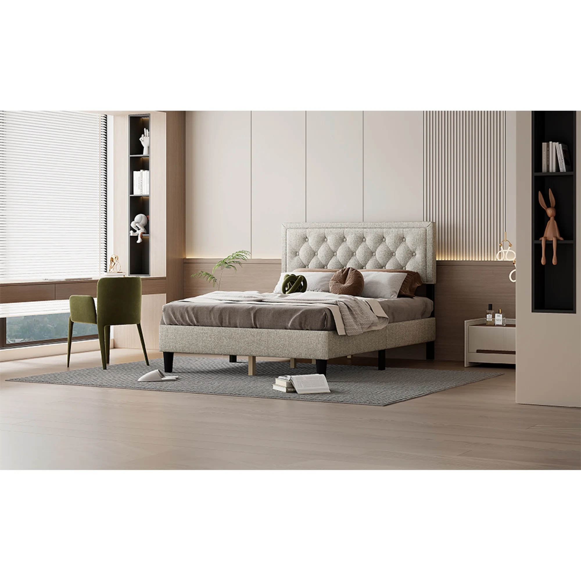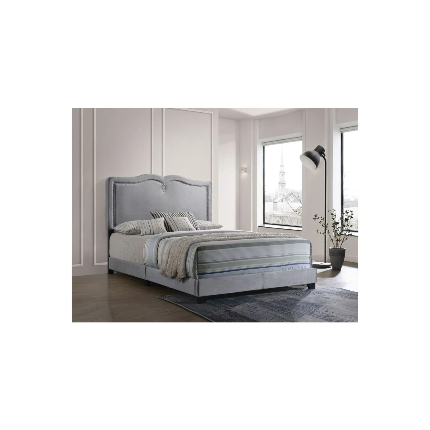 Boyd Sleep Mia Linen Panel Upholstered Platform Bed Frame, Grey, Queen