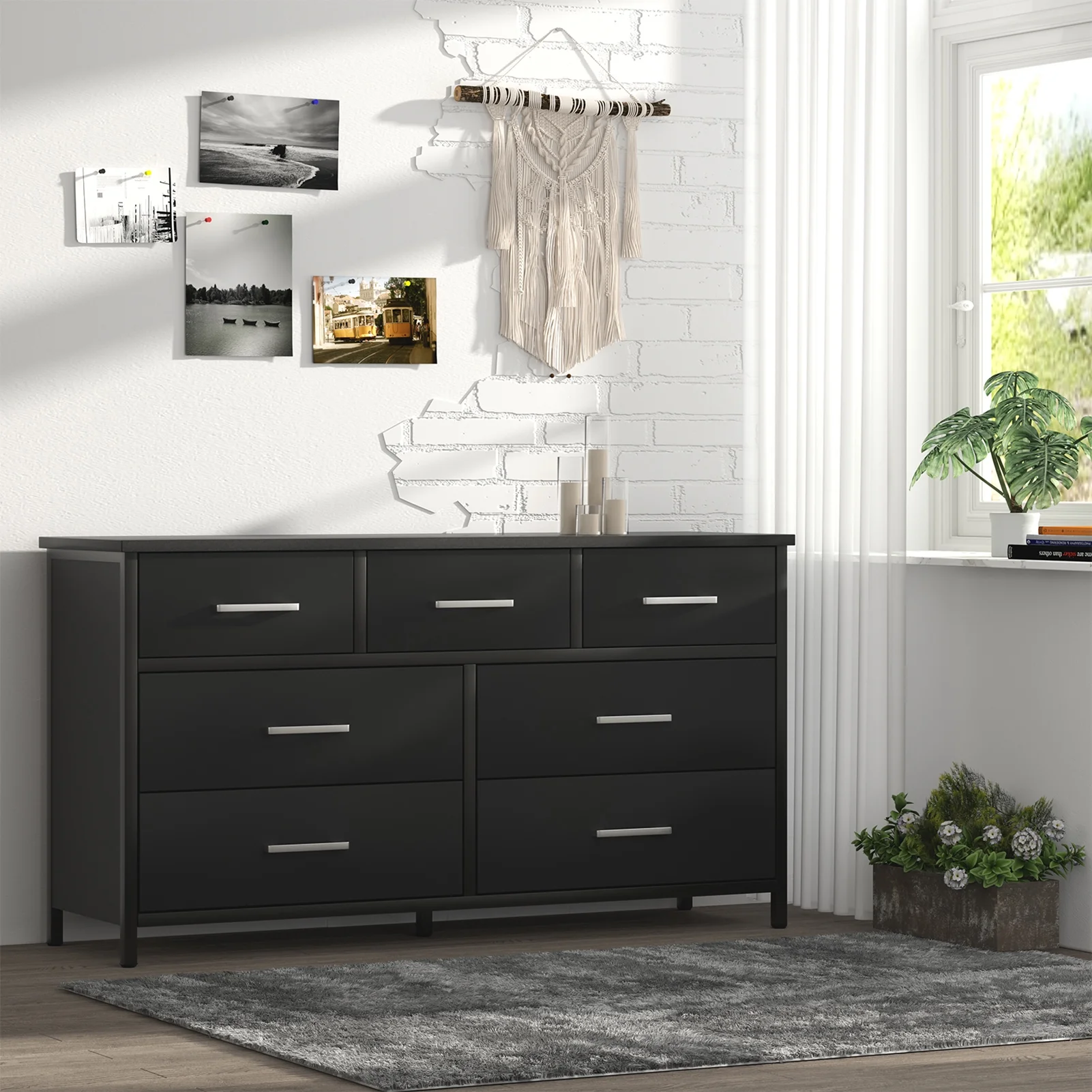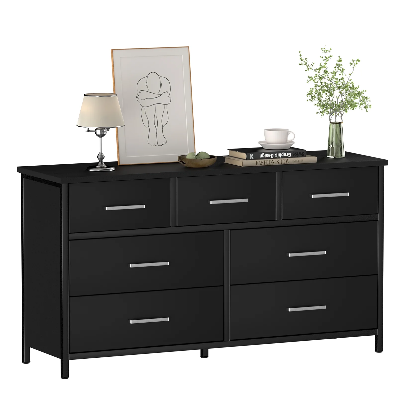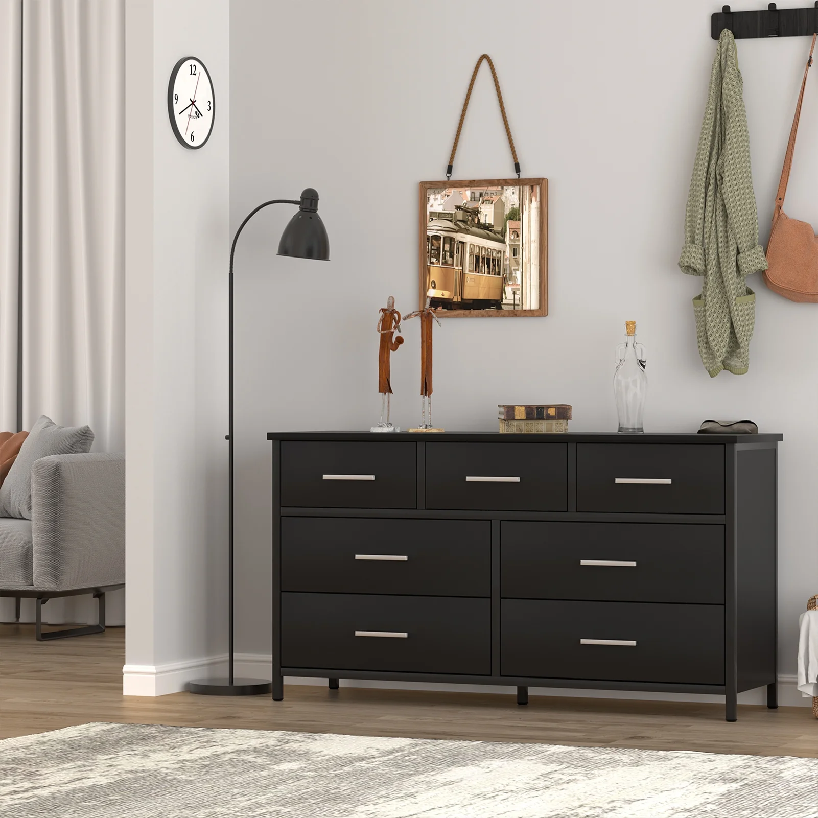 7 Drawer Wood Dresser Industrial Chests of Drawers with Sturdy Steel Frame Accent Wood Dresser for Bedroom