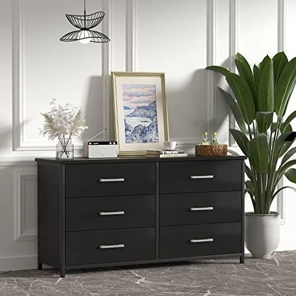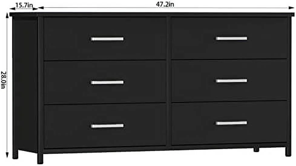 6 Drawer Double Dresser Industrial Wood Dresser for Bedroom Cabinet with Sturdy Steel Frame