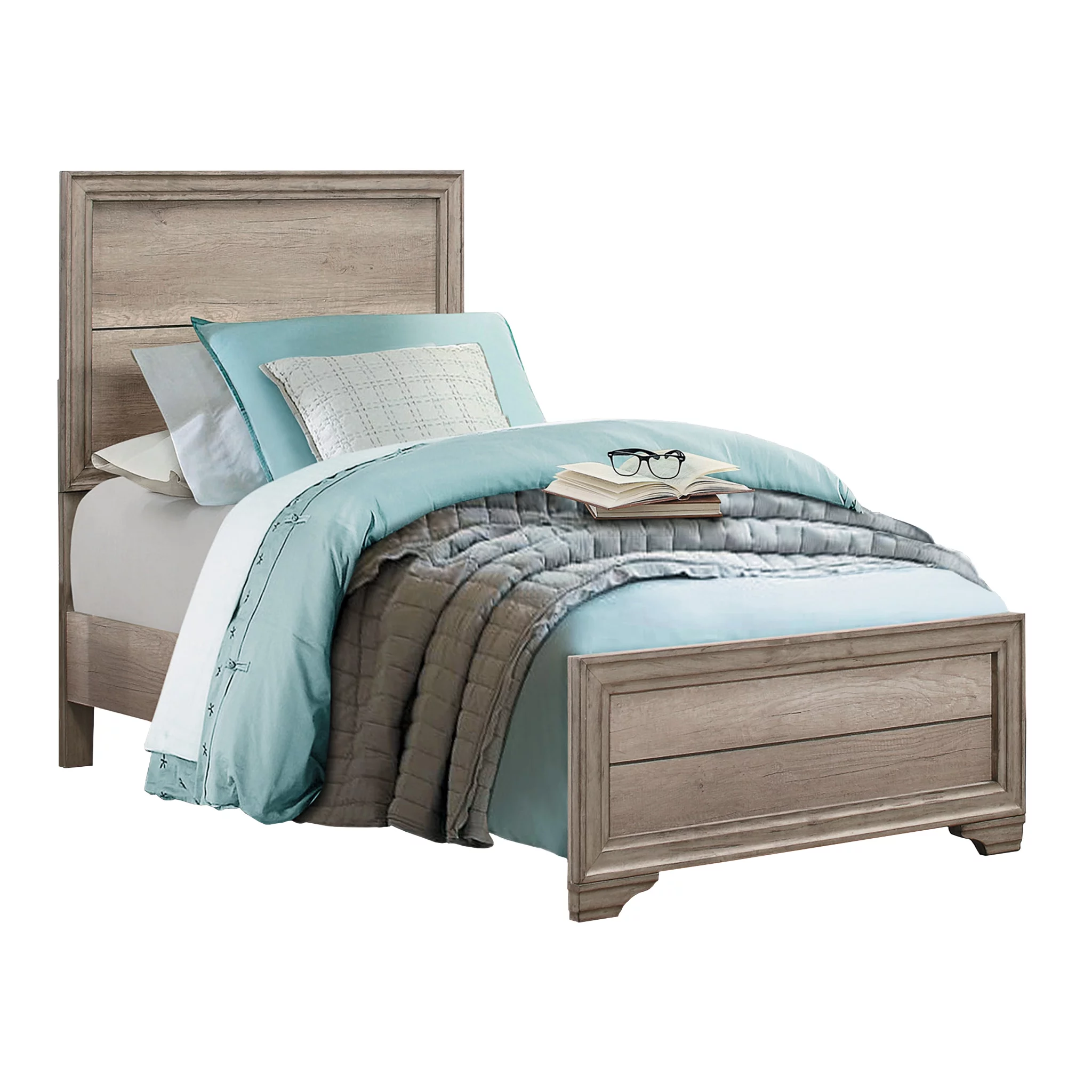 Mantalia Solid Wood Panel Bed with Metal Frame, King Size, Champagne