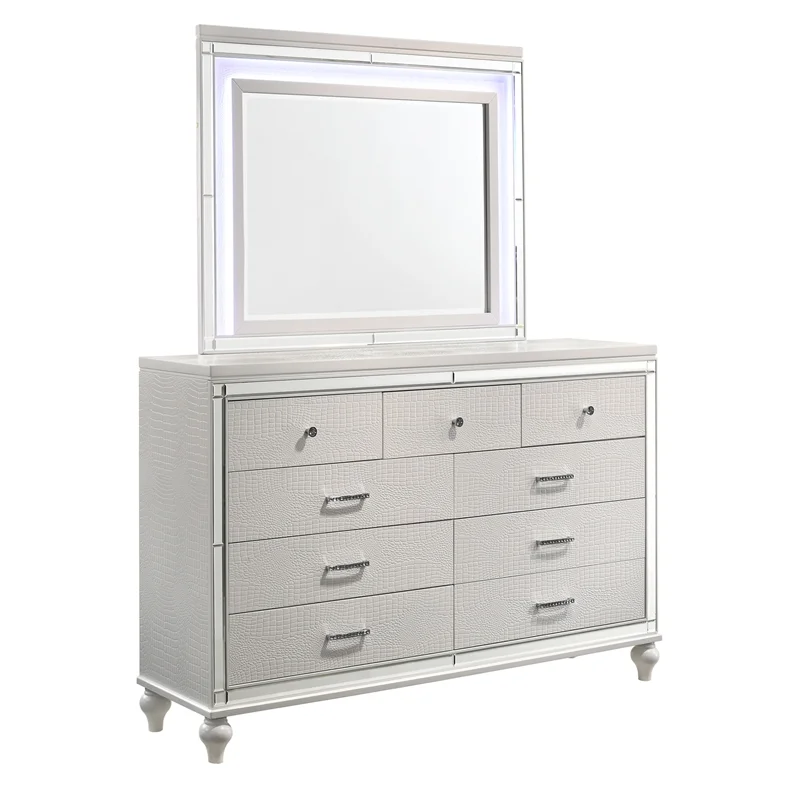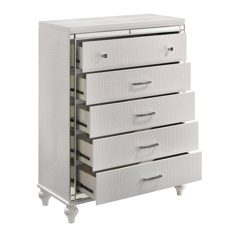 FOA Ender 6pc White Wood Bedroom Set - Full+ 2 Nightstands+Chest+Dresser+ Mirror