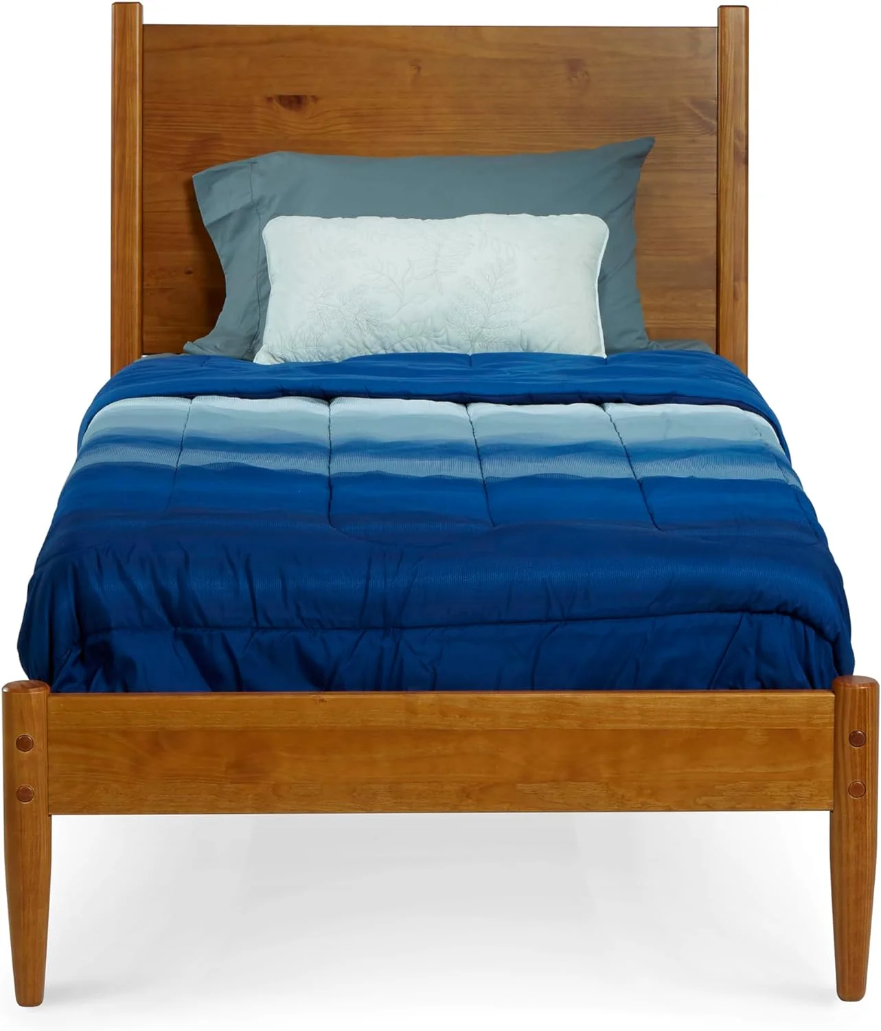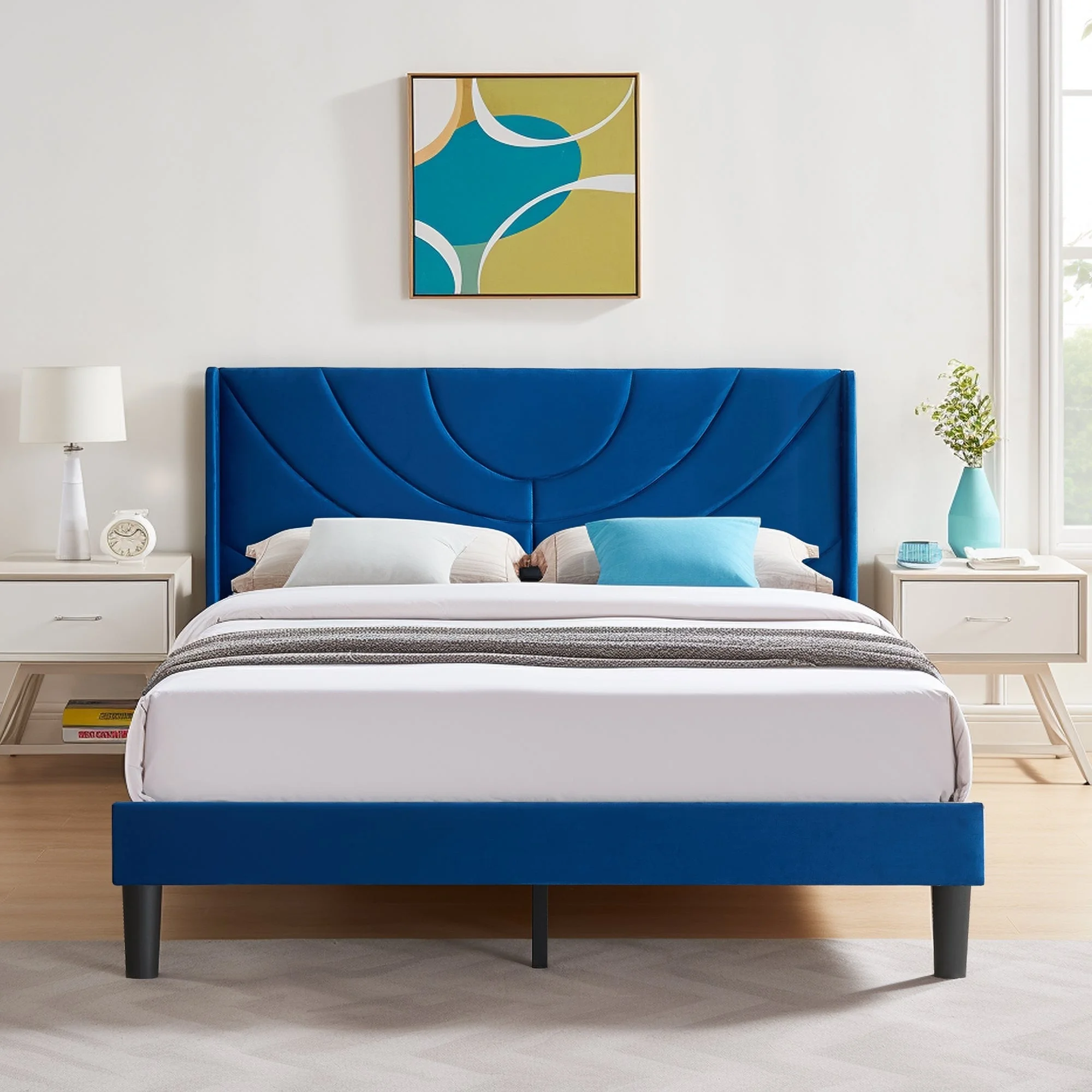 Javlergo Upholstered Bed Frame with Wingback Panel Headboard Blue - Queen