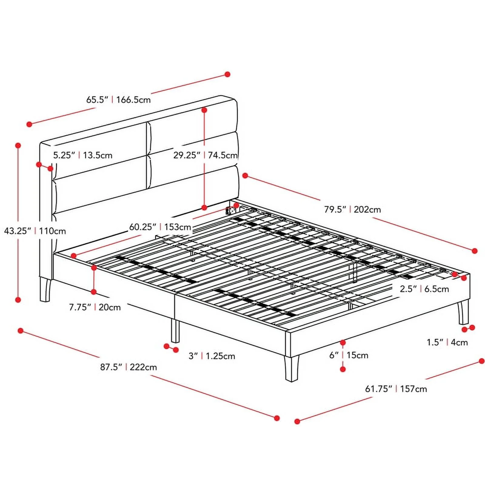 Atlin Designs Fabric Queen Bed Frame w/ Wide-Rectangle Panel Headboard in Cream
