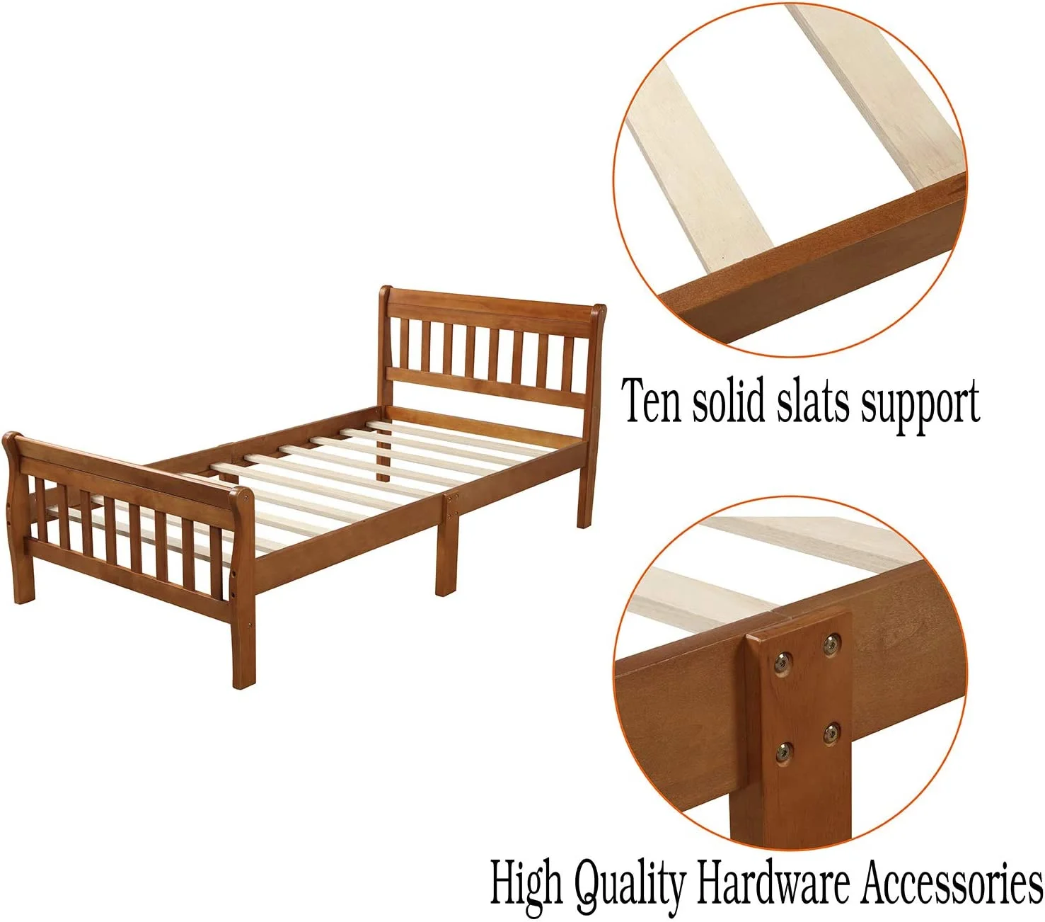 Platform Bed Twin Bed Frame Panel Bed Mattress Foundation Sleigh Bed with Headboard/Footboard/Wood Slat Support