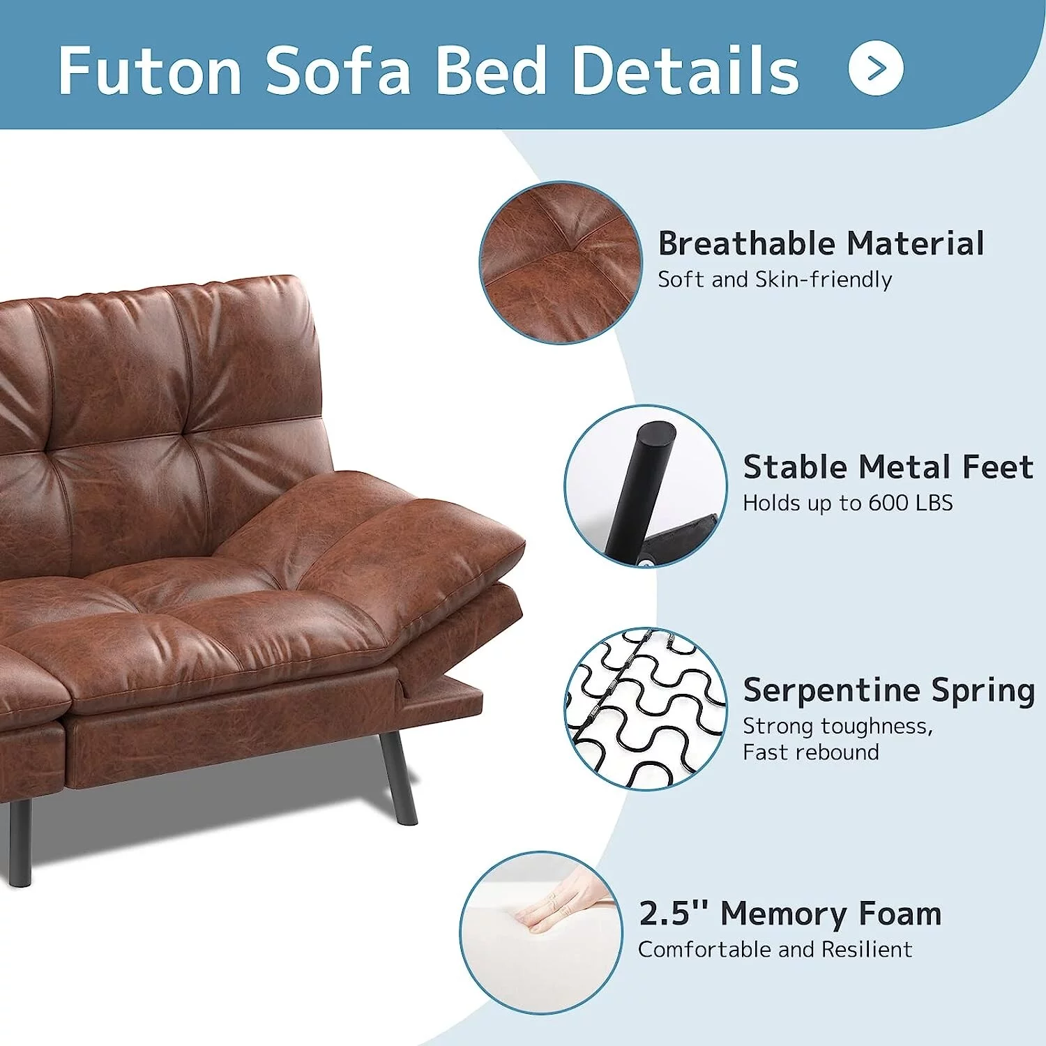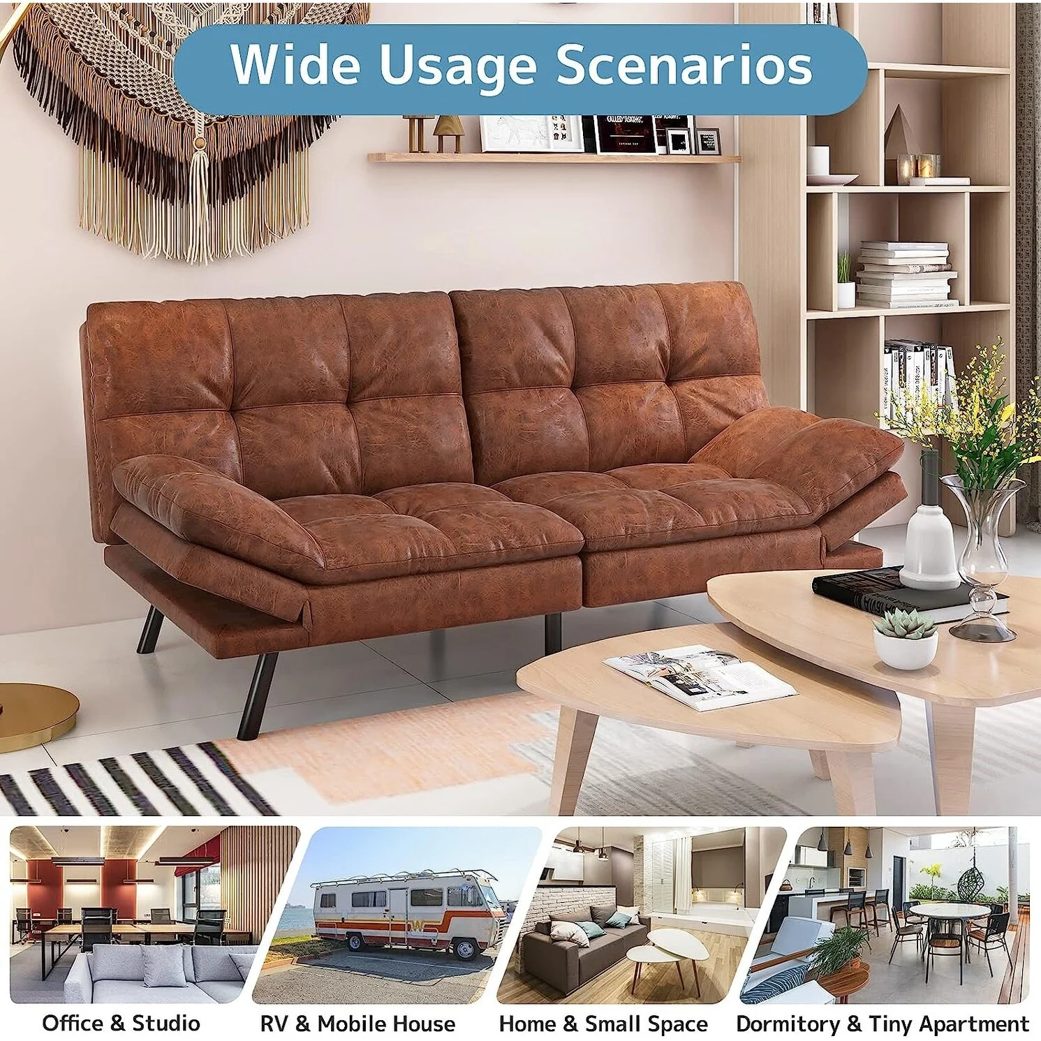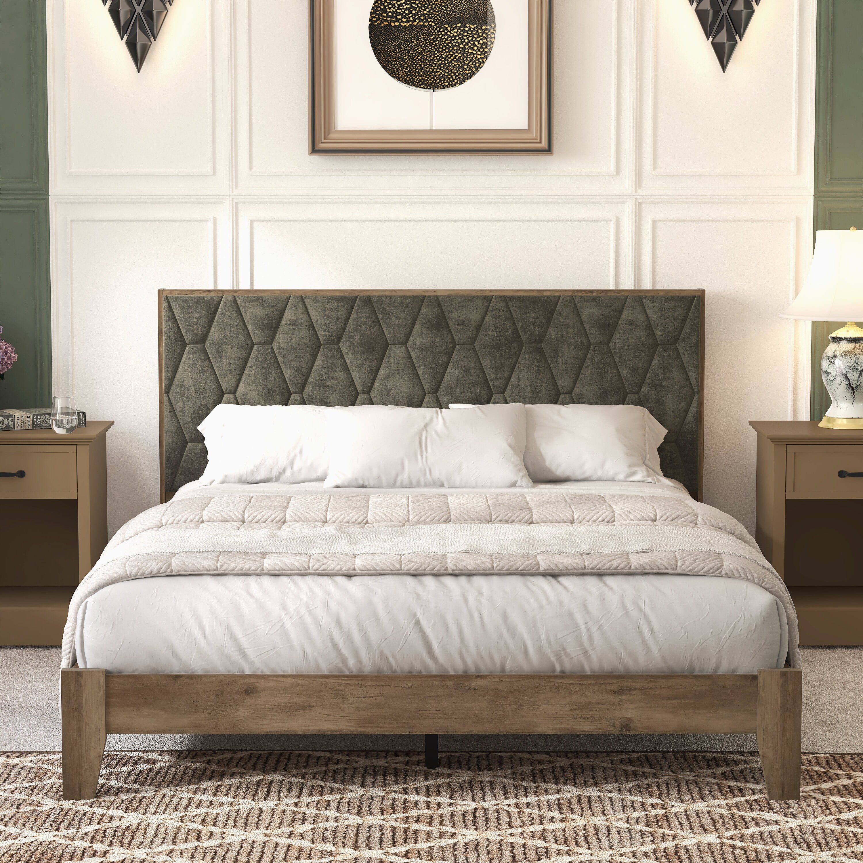 GALANO Pancus Knotty Oak with Velvet Brown Upholstered Queen Platform Bed with Headboard