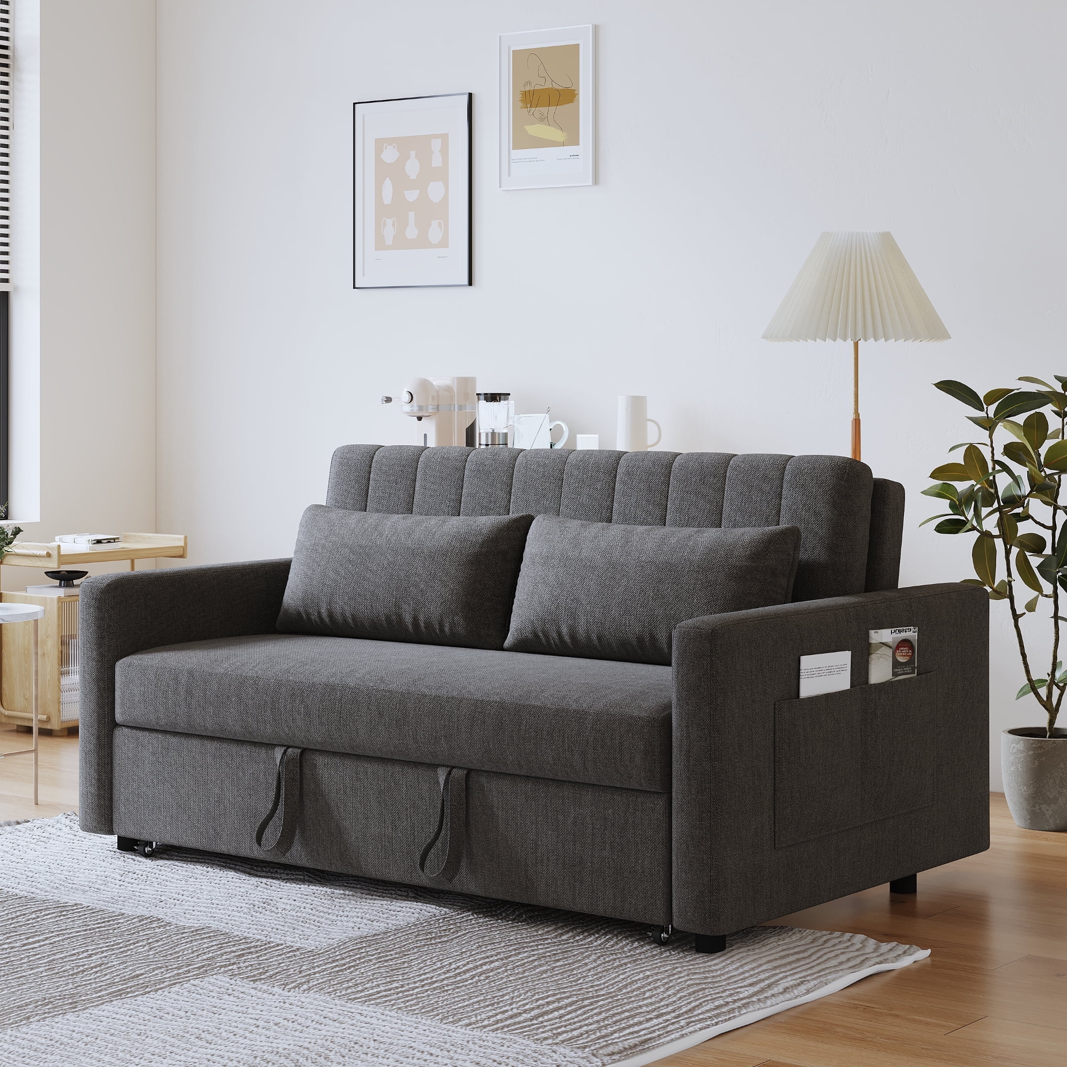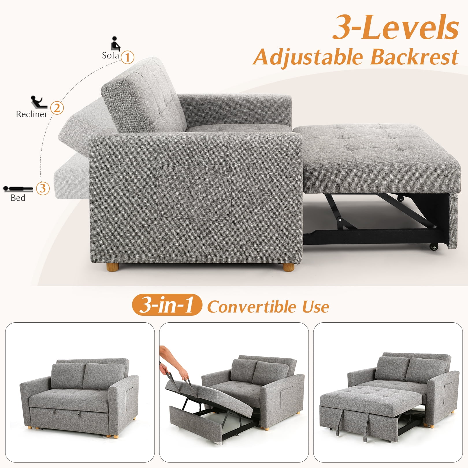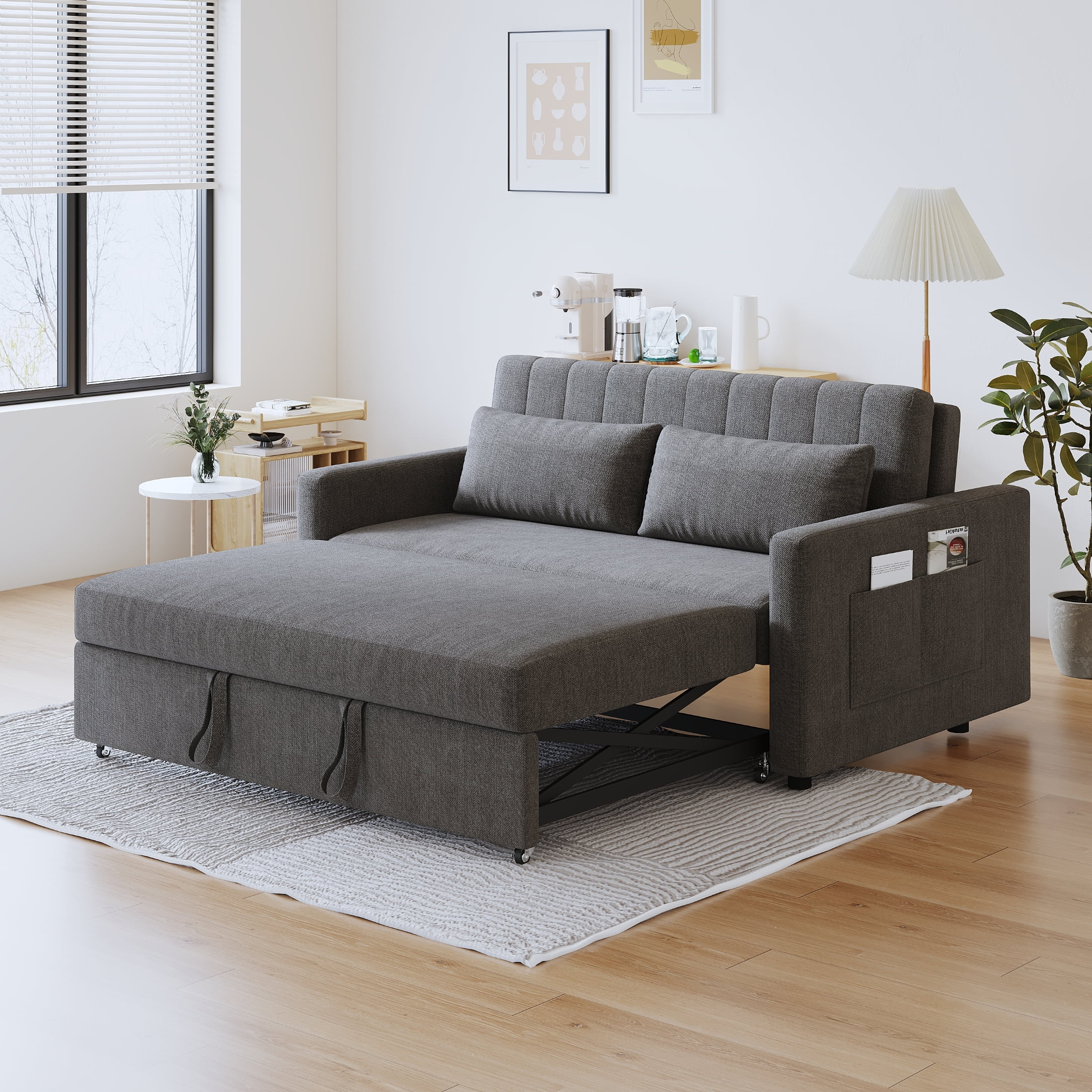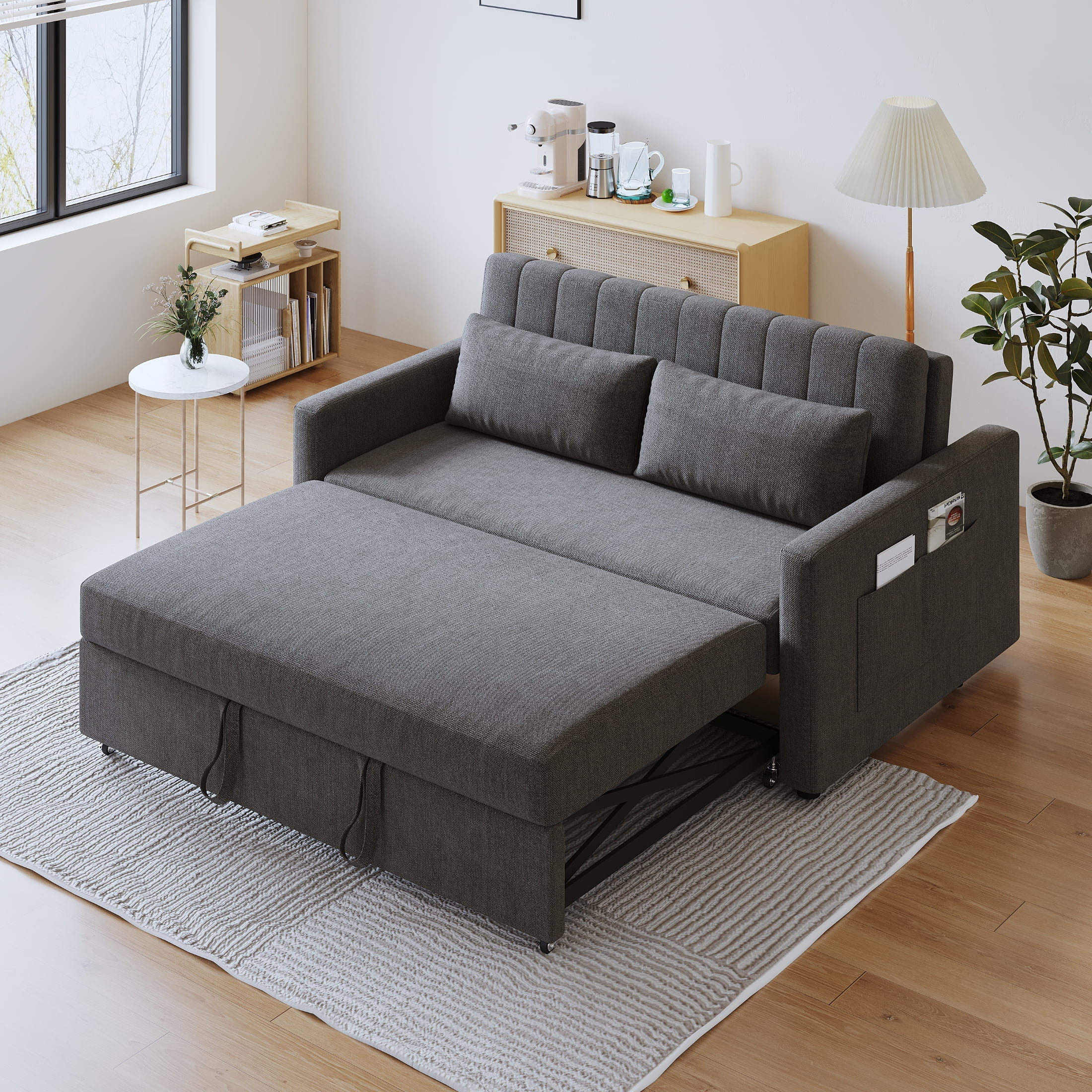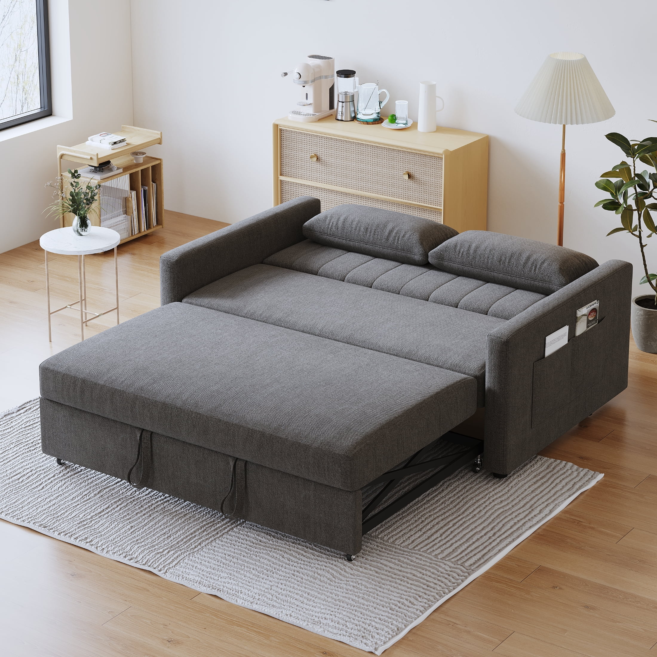 Queen Size Platform Bed, Upholstered Queen Size Bed With Trundle Bed And Drawers, Linen Fabric, Gray