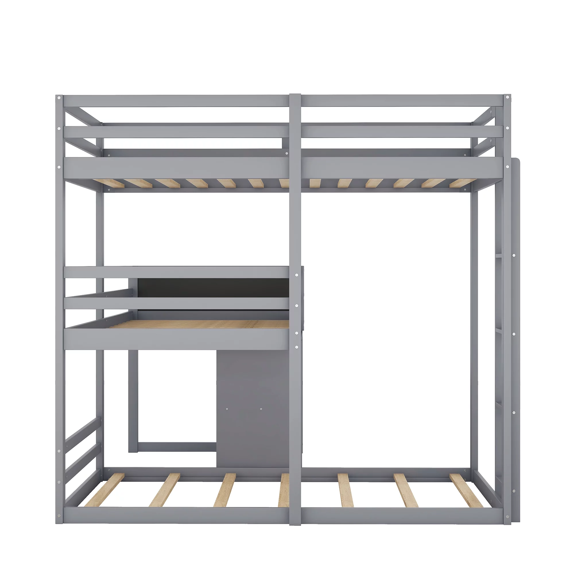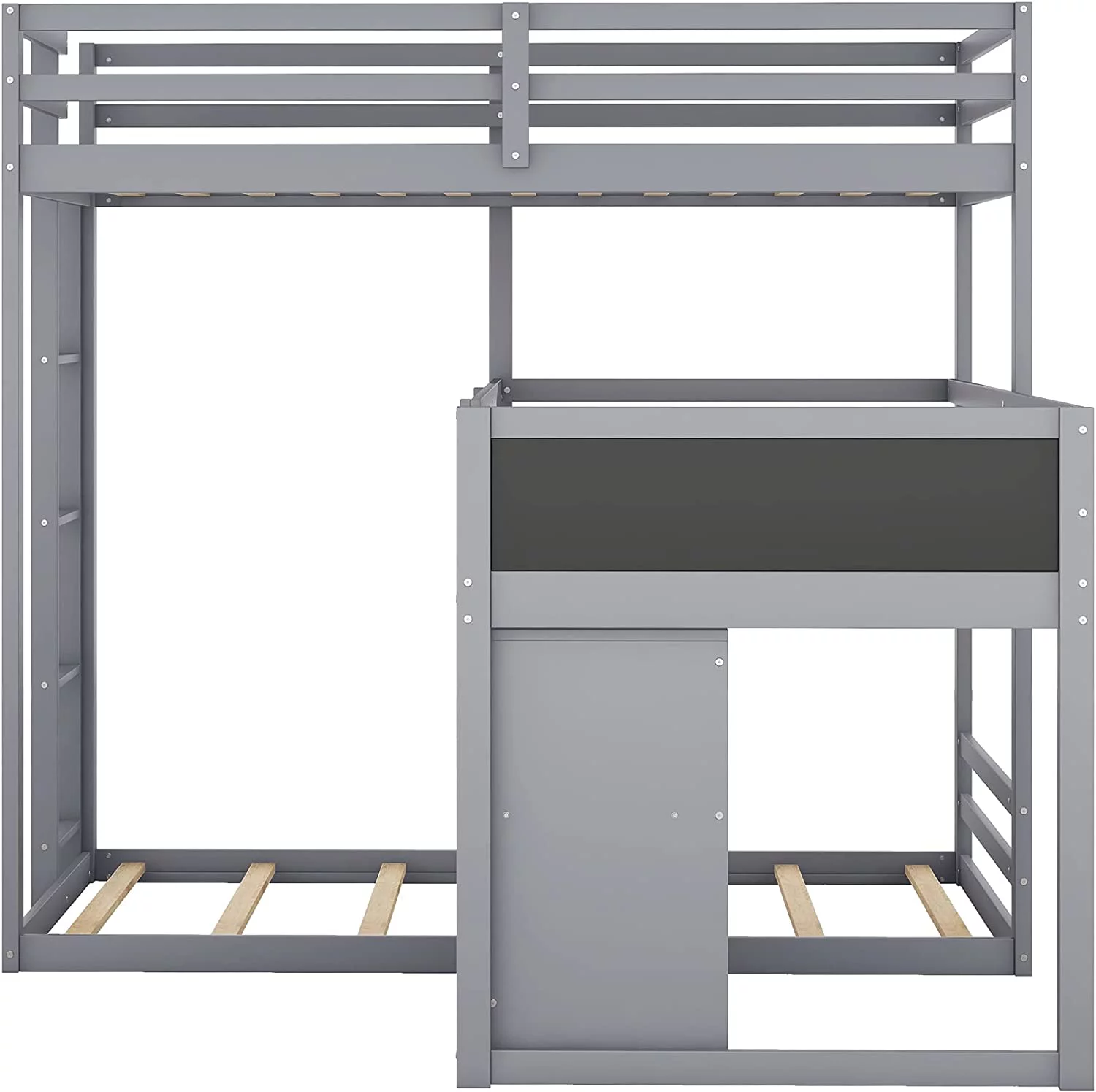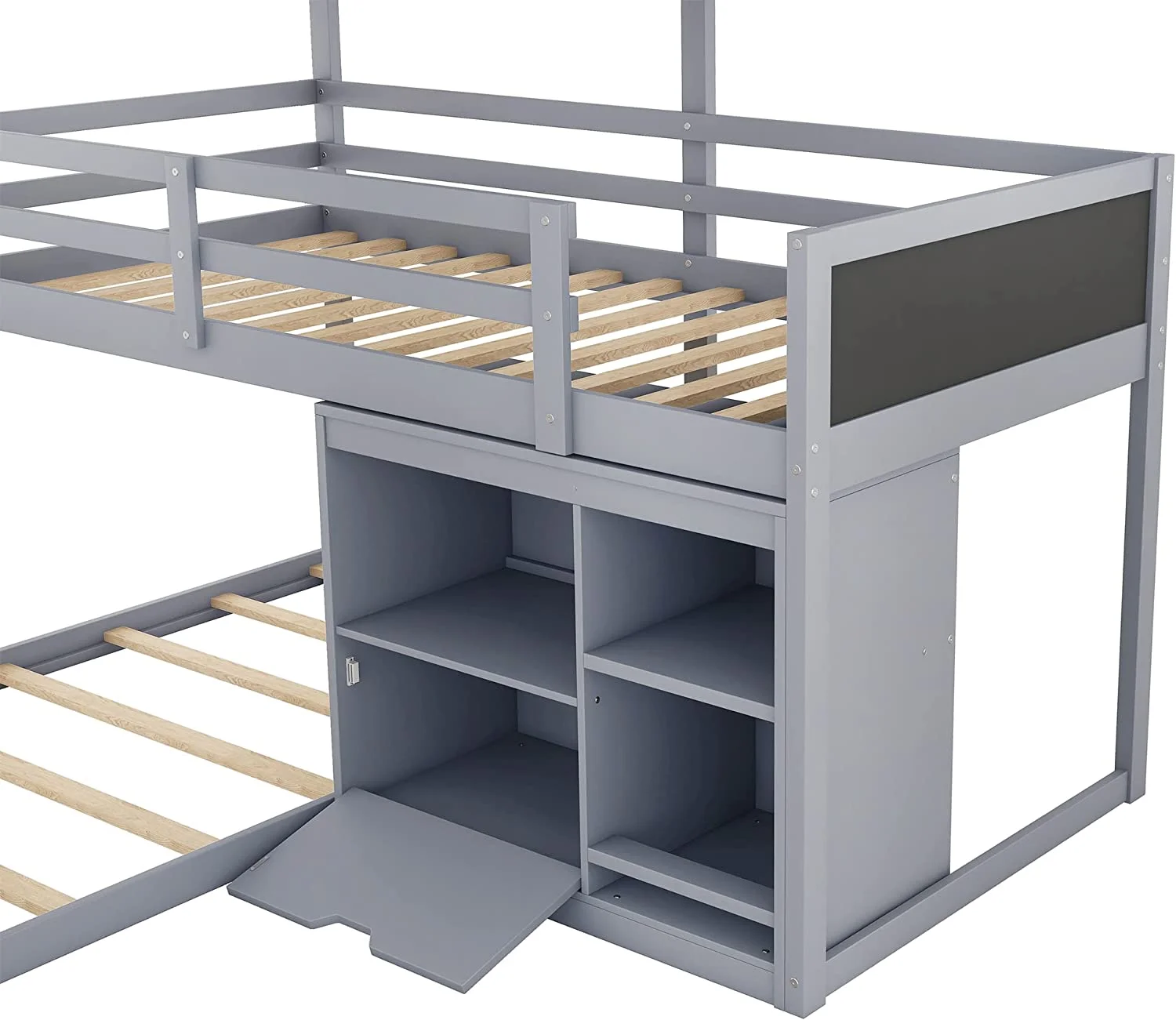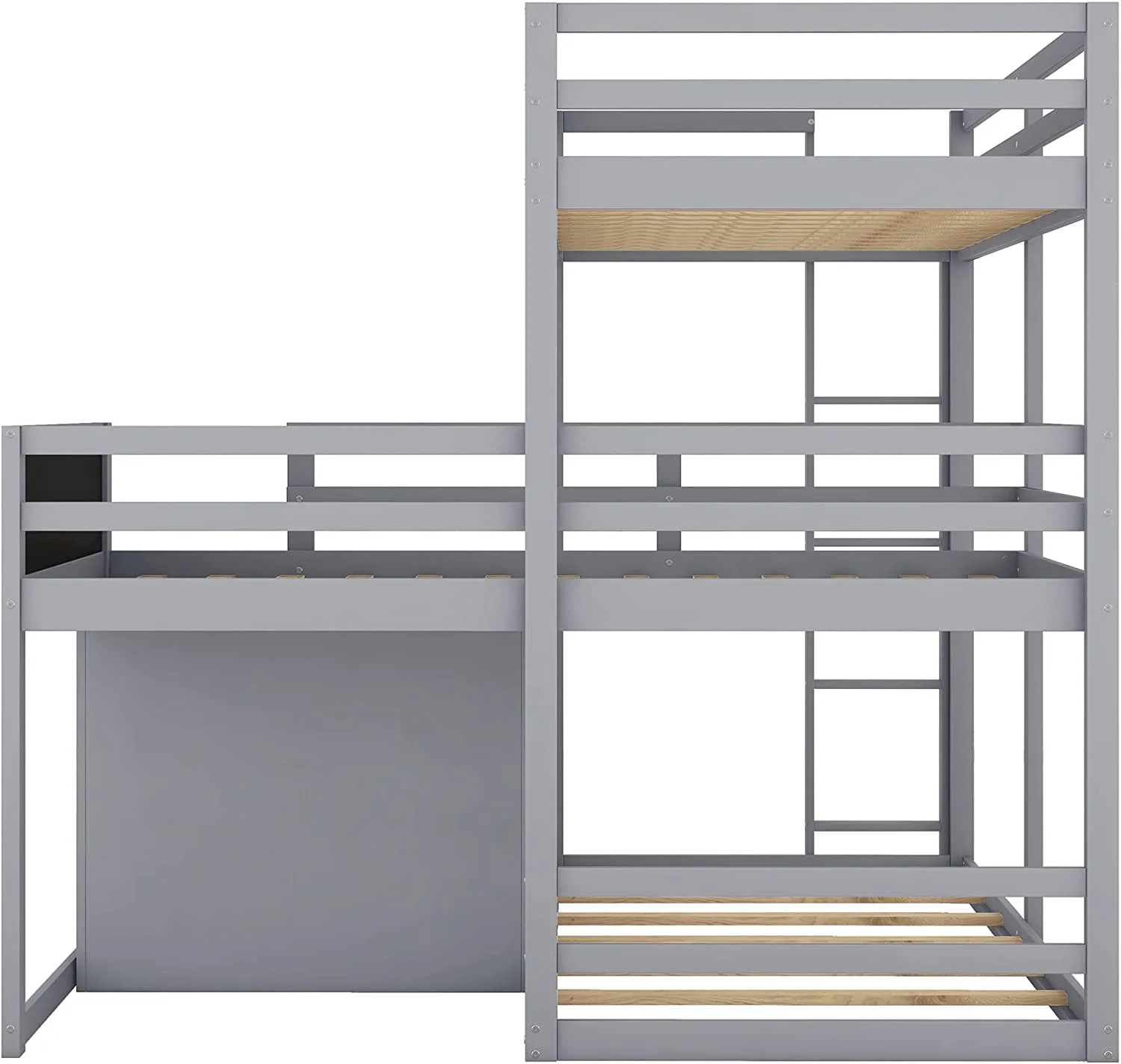 CoSoTower L-Shaped Wood Triple Twin Size Bunk Bed with Storage Cabinet and Blackboard, Ladder, White