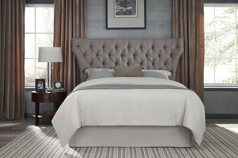 American Woodcrafters Genoa Queen Tufted Gray Upholstered Wood Headboard
