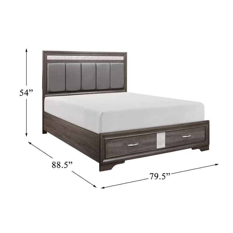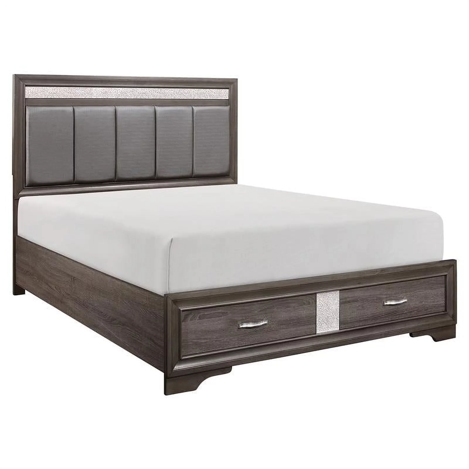 Pemberly Row Wood California King Bed with 2-Drawer in Gray and Silver Glitter