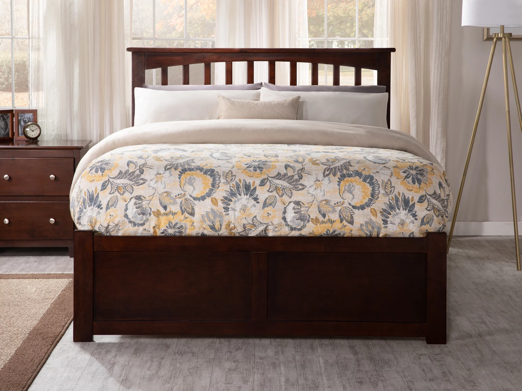 AFI Mission Queen Wood Platform Bed with Headboard Footboard & Twin XL Trundle, Walnut