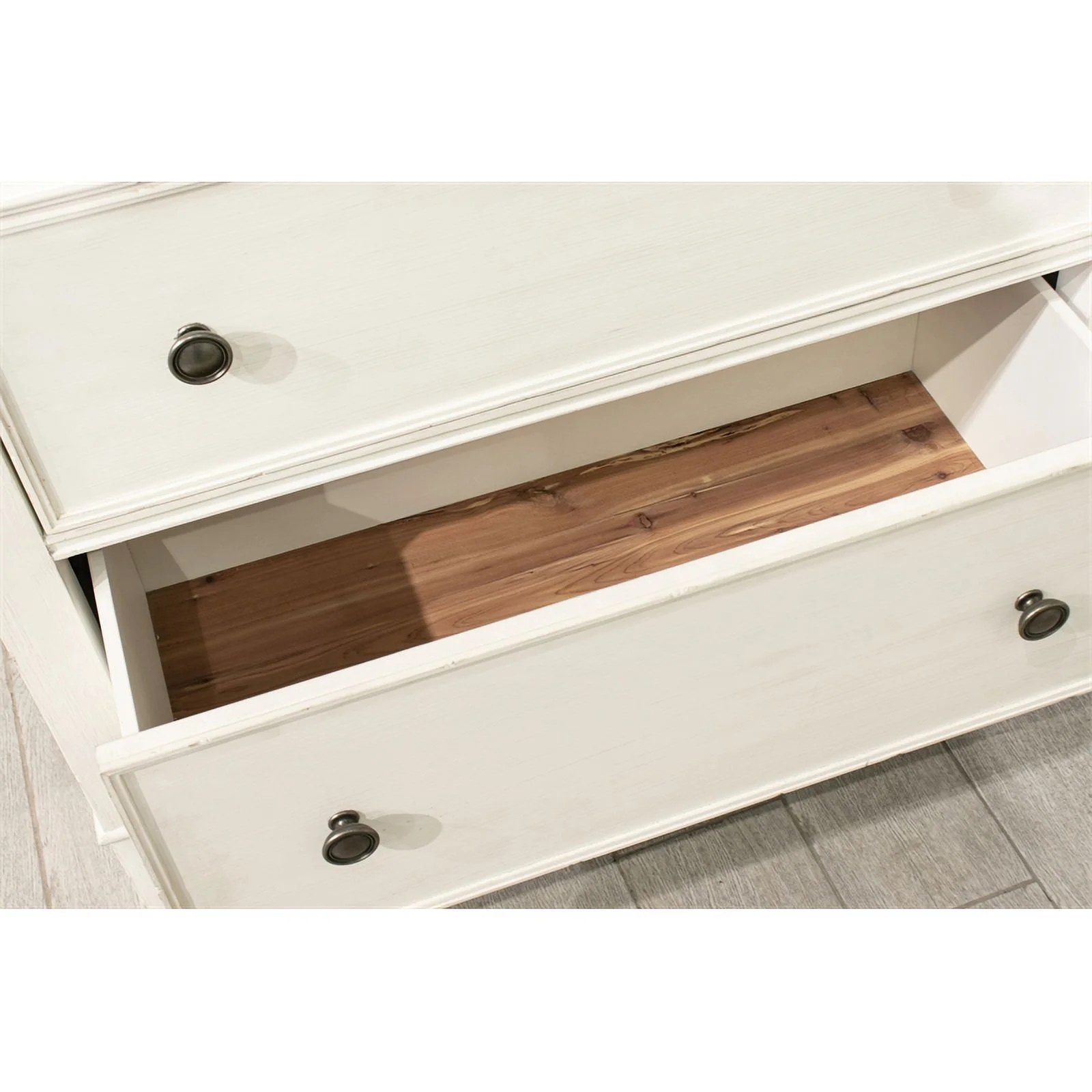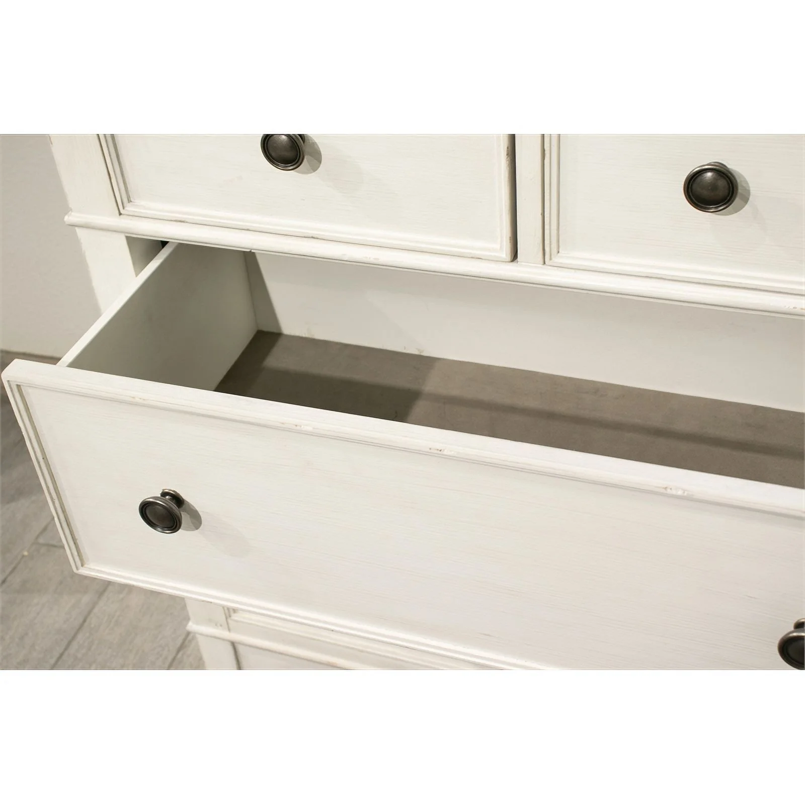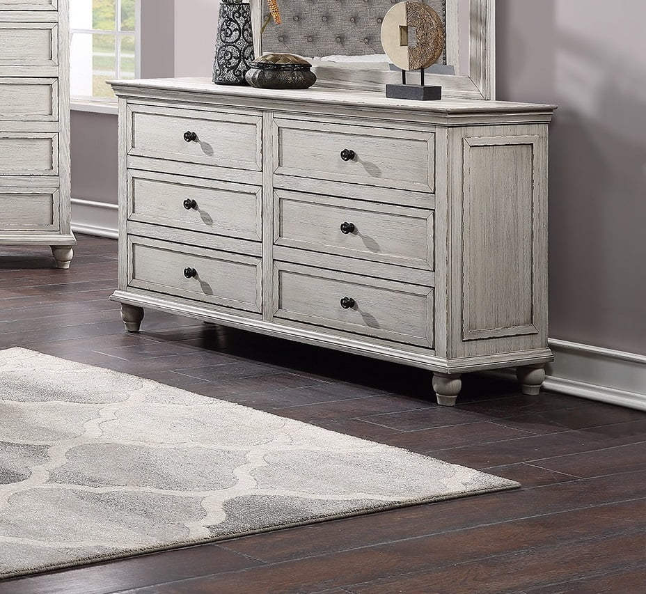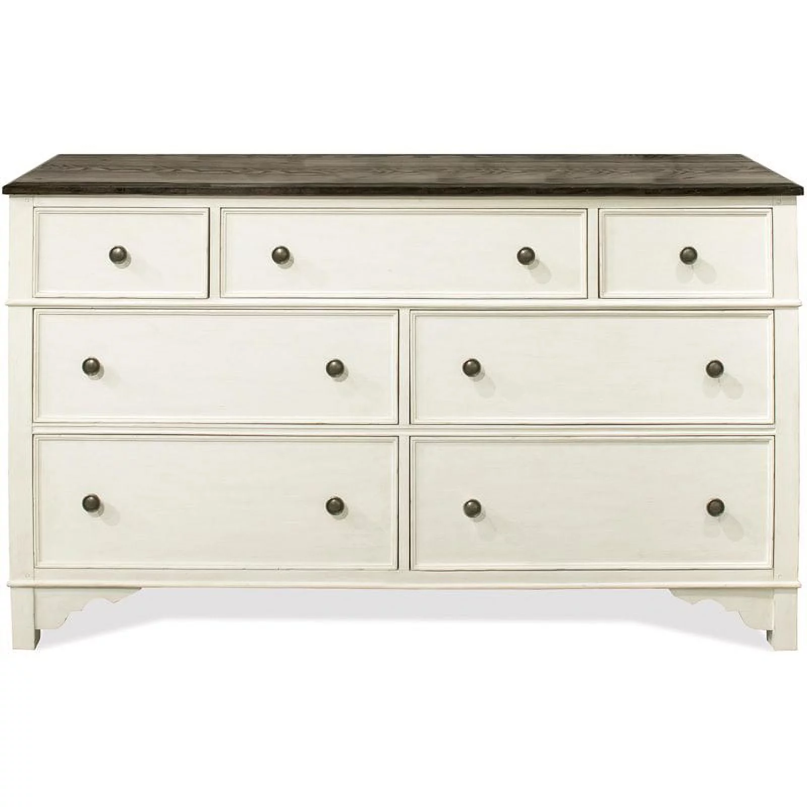 Riverside Furniture Grand Haven 7 Drawer Wood Dresser in White and Charcoal