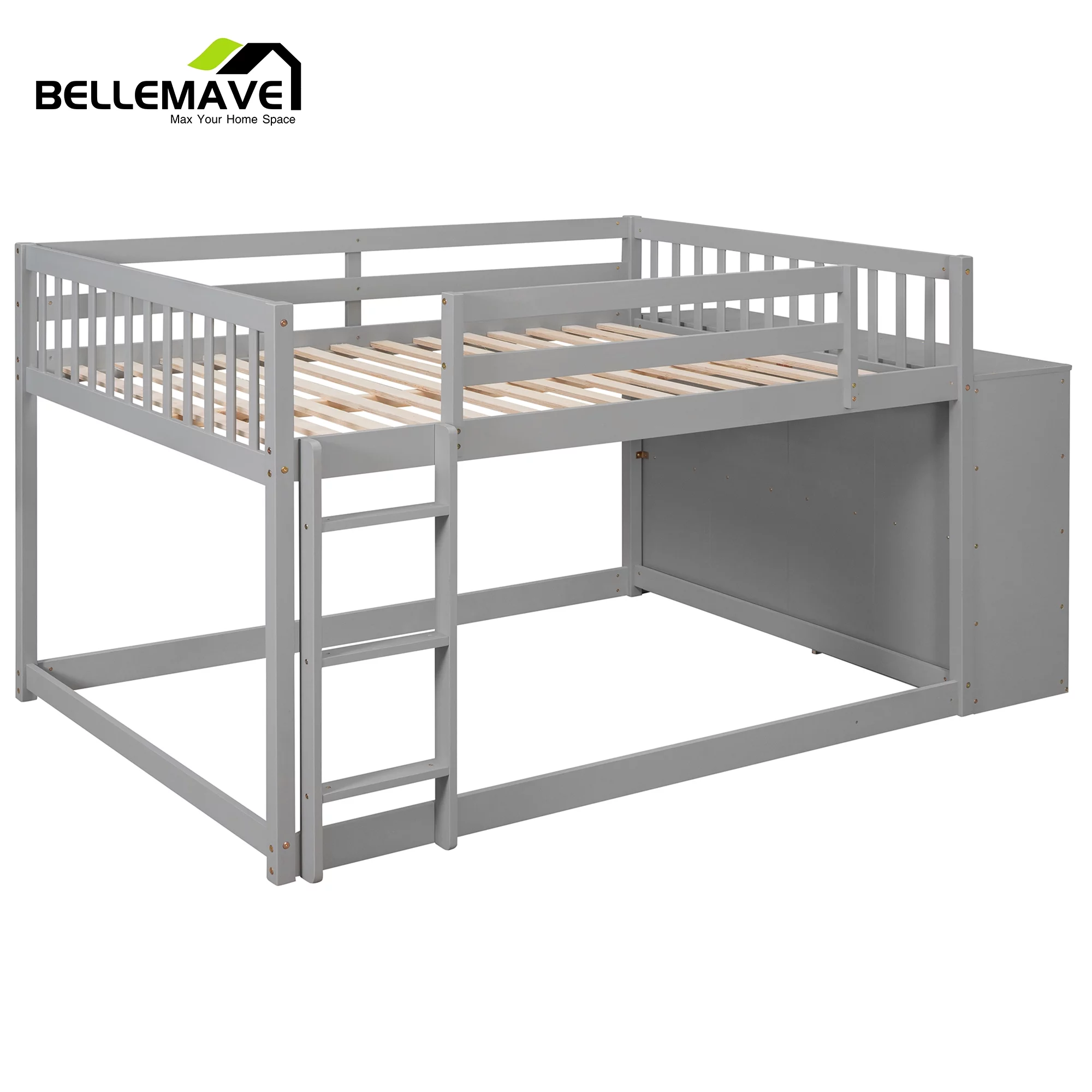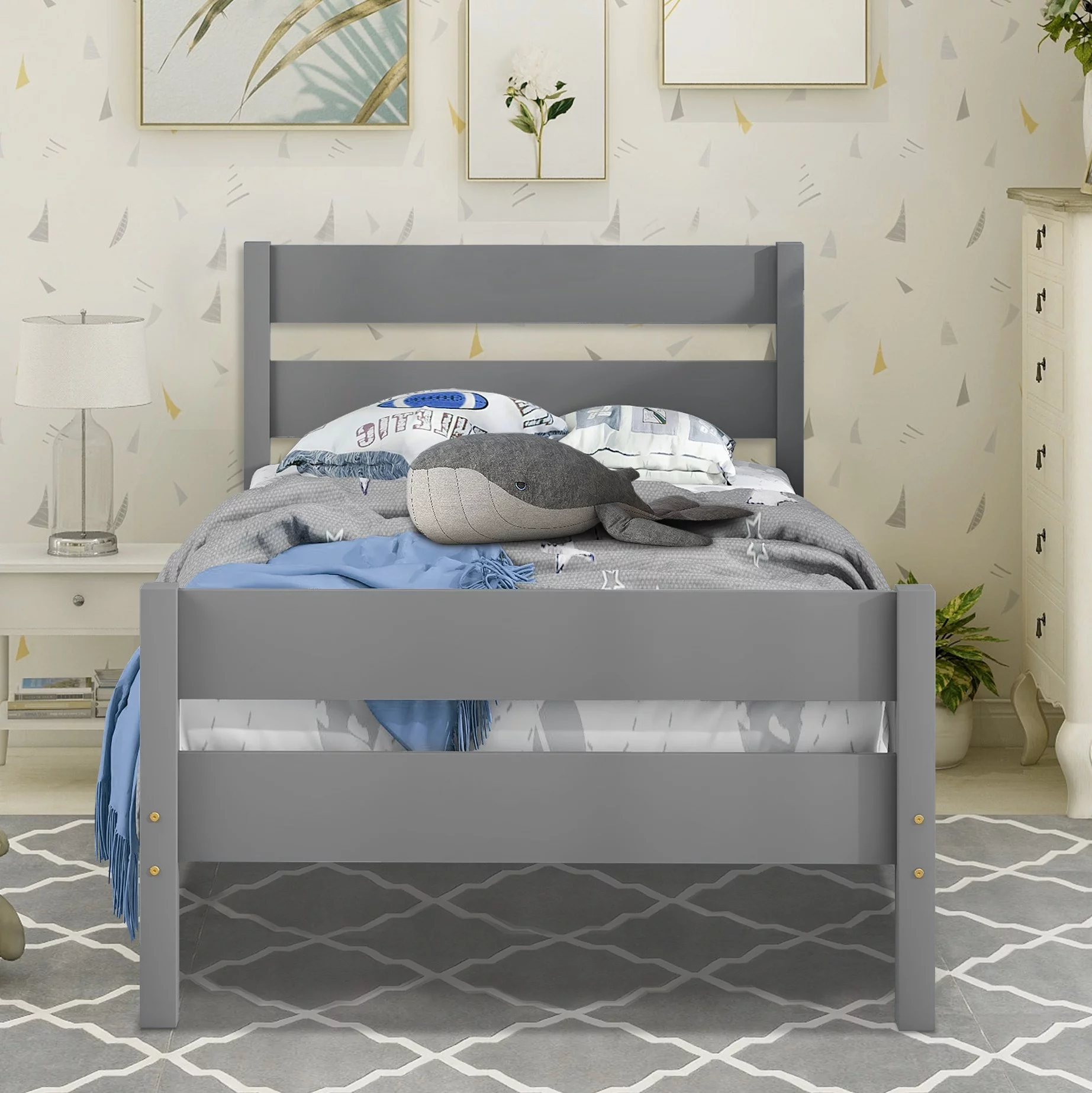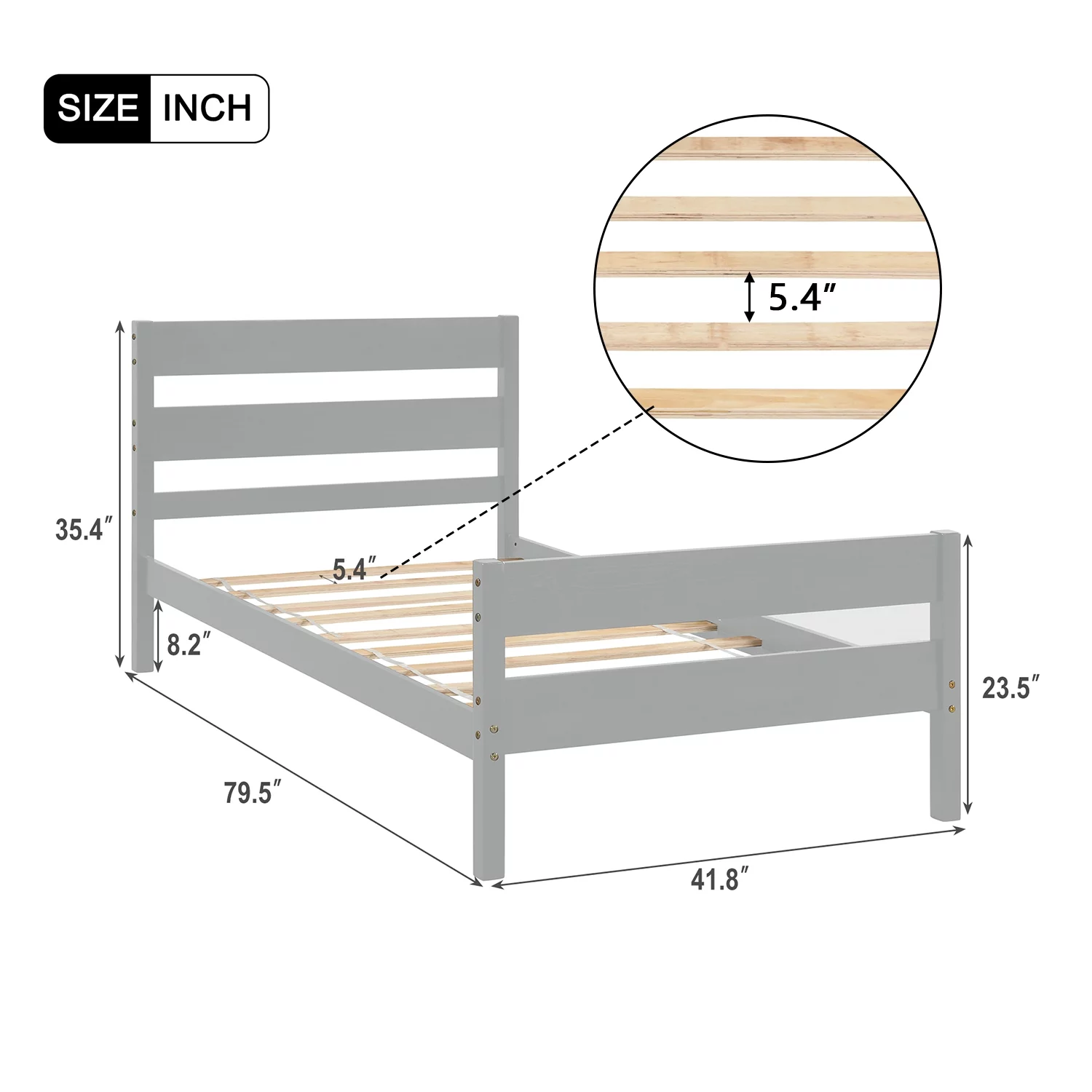 iRerts Twin Size Wood Platform Bed Frame with Headboard, Solid Pine Wood Kids Bed Frame w/ Strong Slat Support, Gray
