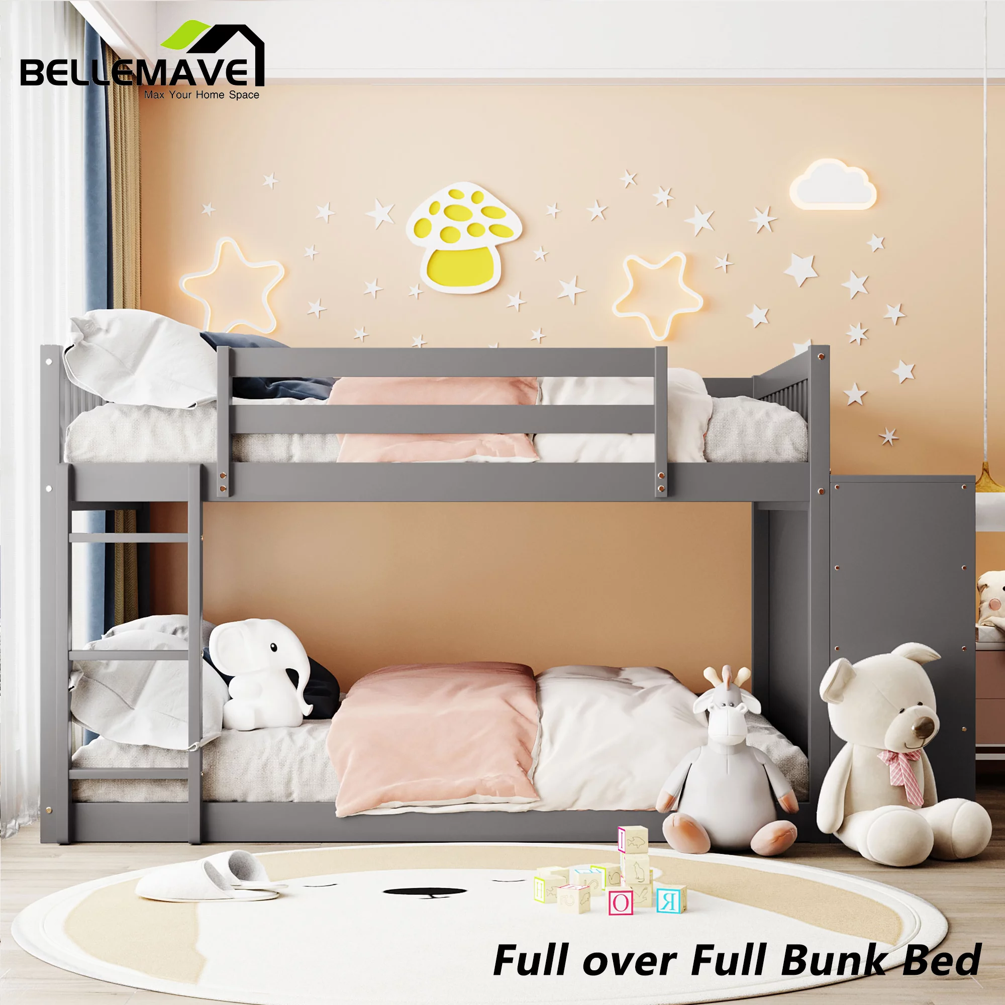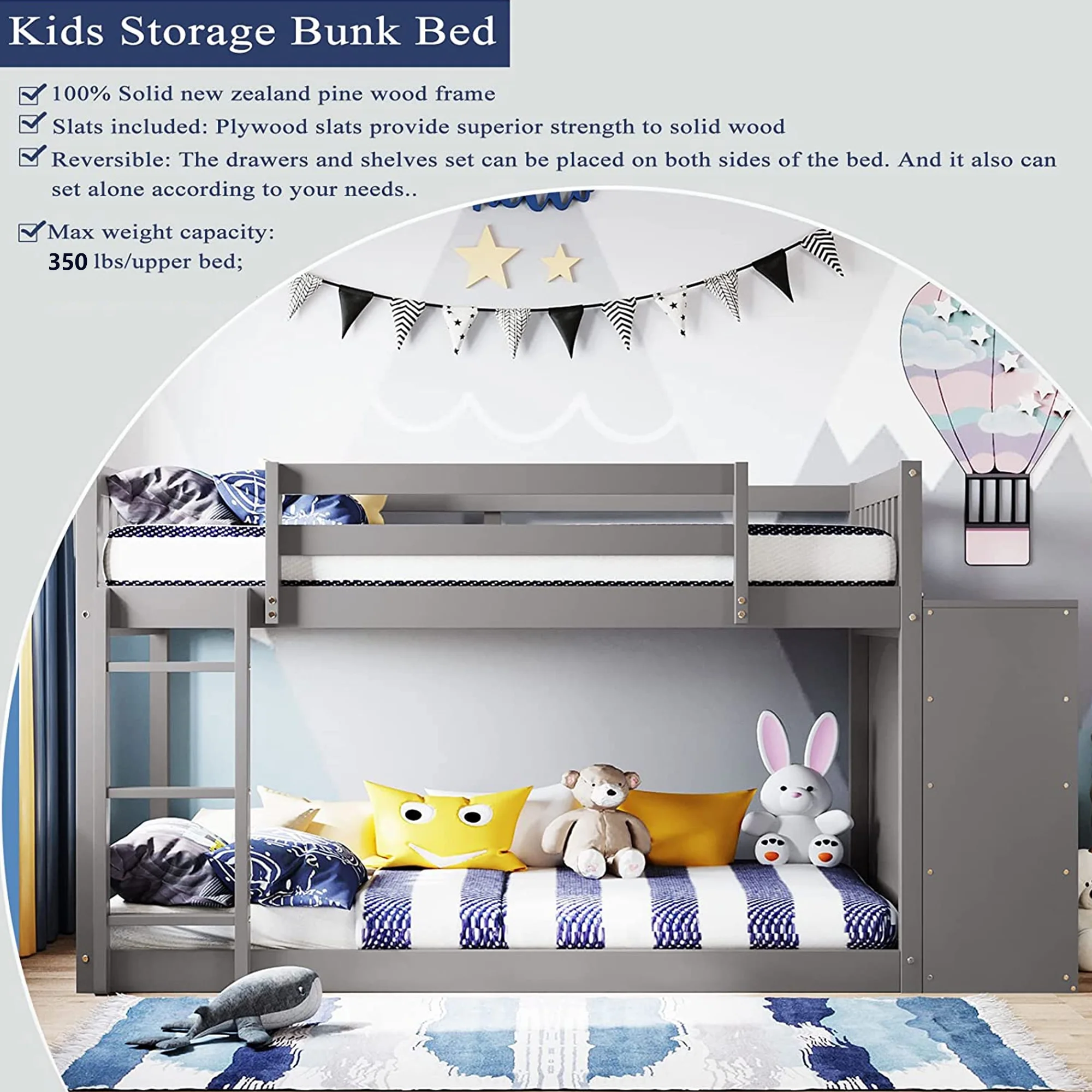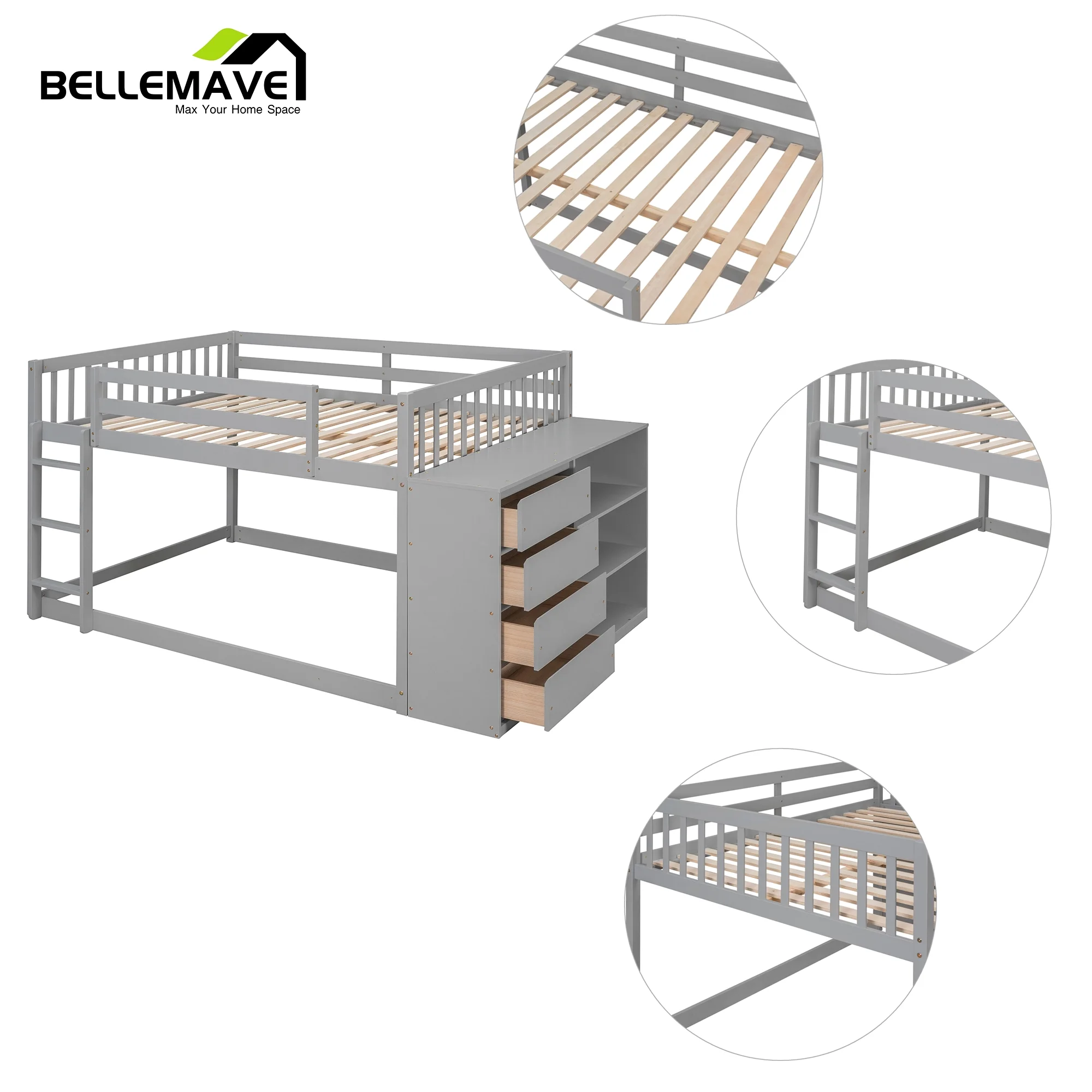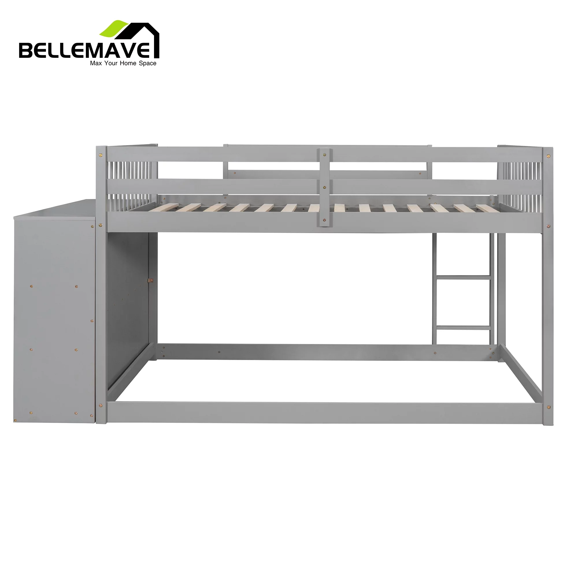 iRerts Twin Size Wood Platform Bed Frame with Headboard, Solid Pine Wood Kids Bed Frame w/ Strong Slat Support, Gray