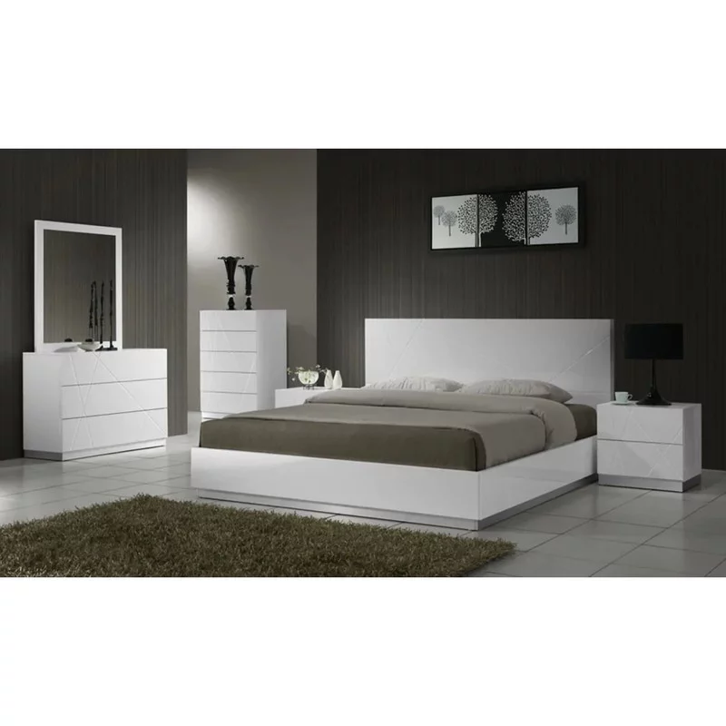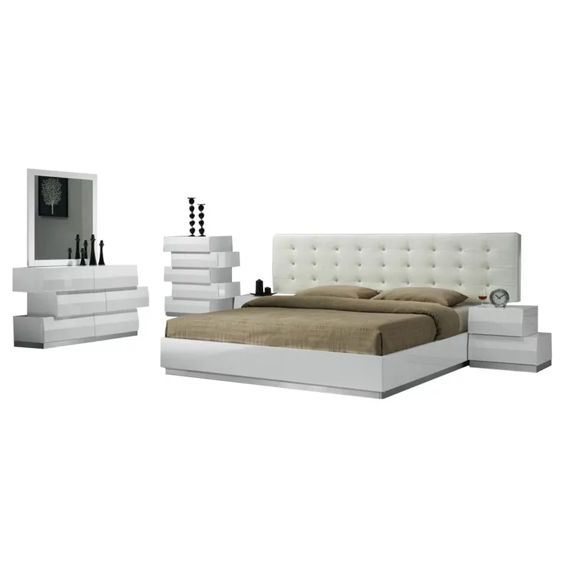 Palermo Modern Bedroom Set, White Lacquer, 5-Piece Set, Queen Size