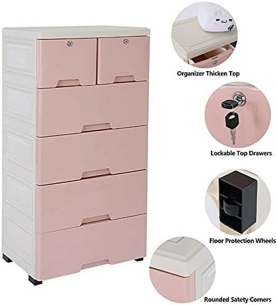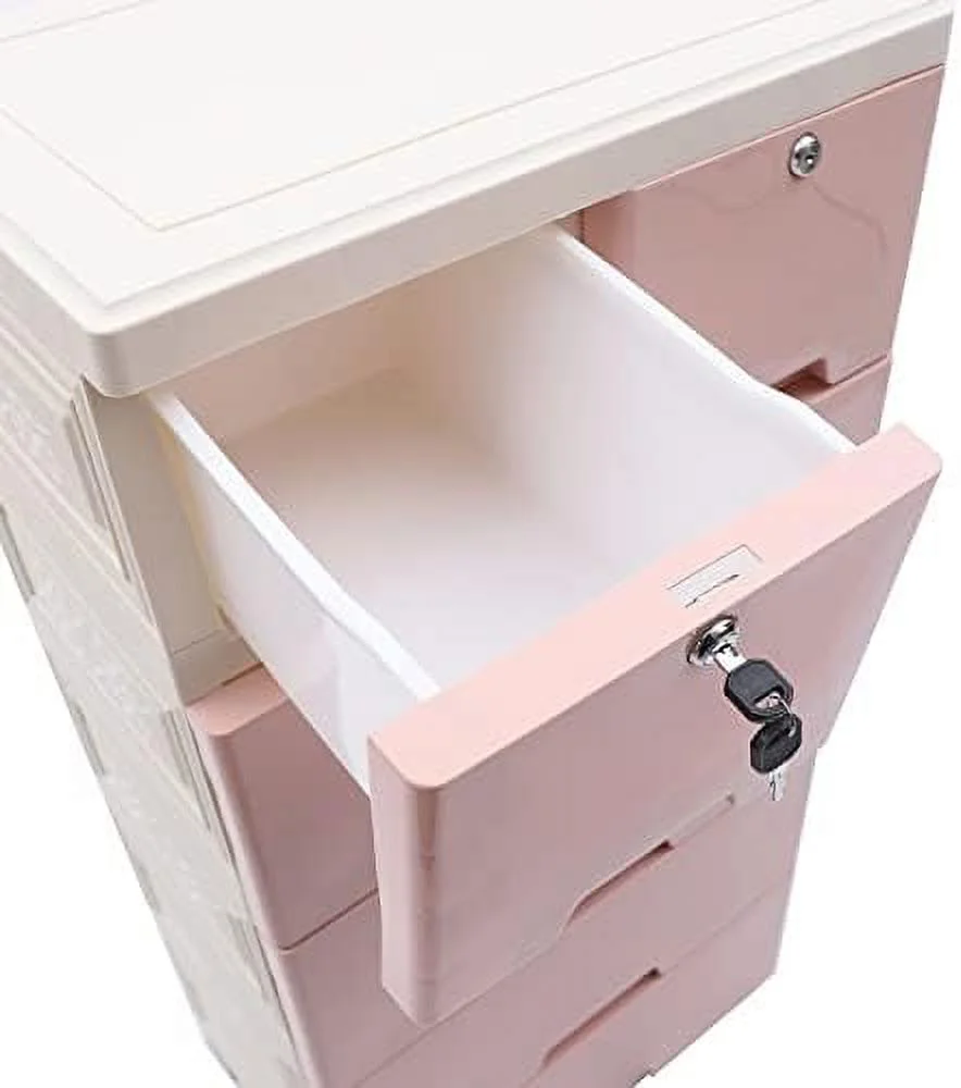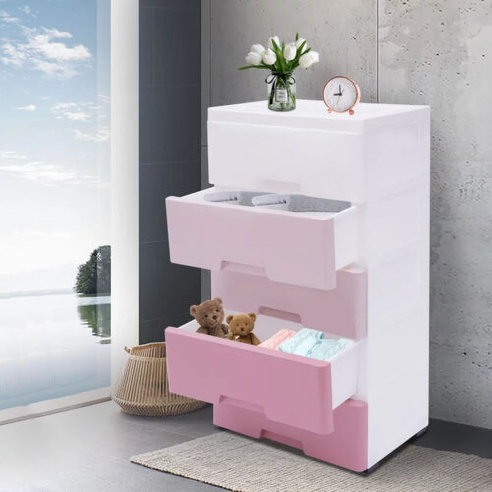 5-layer Home Storage Drawers Clothes Storage Tower PP Storage Dressers Pink