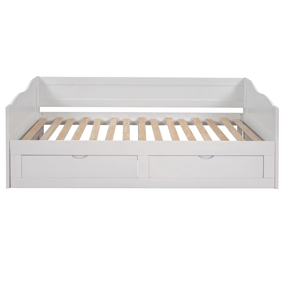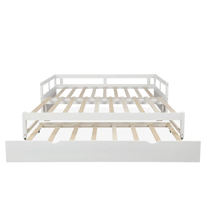 CRO Decor Extending Daybed with Trundle Wooden Daybed with Trundle (White)