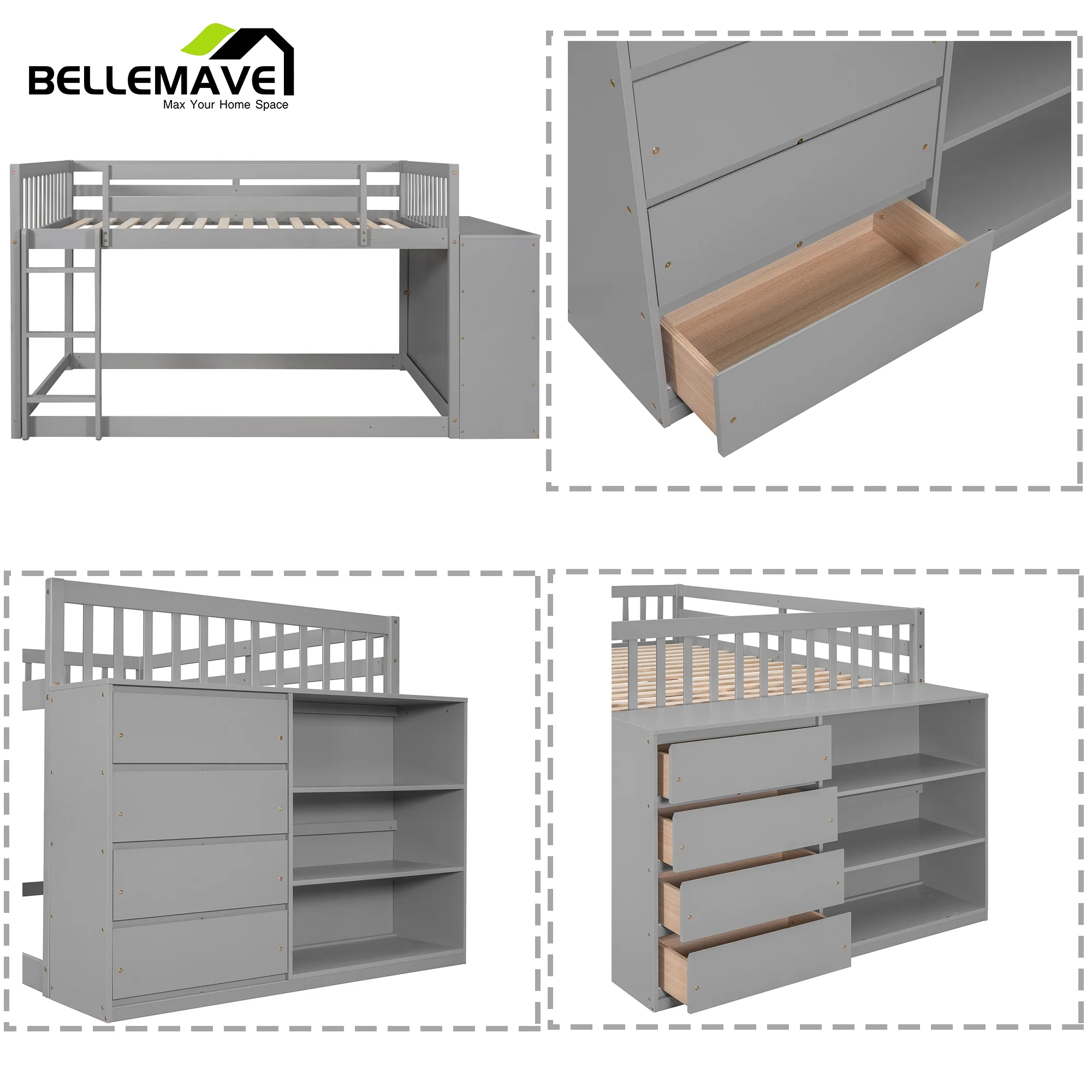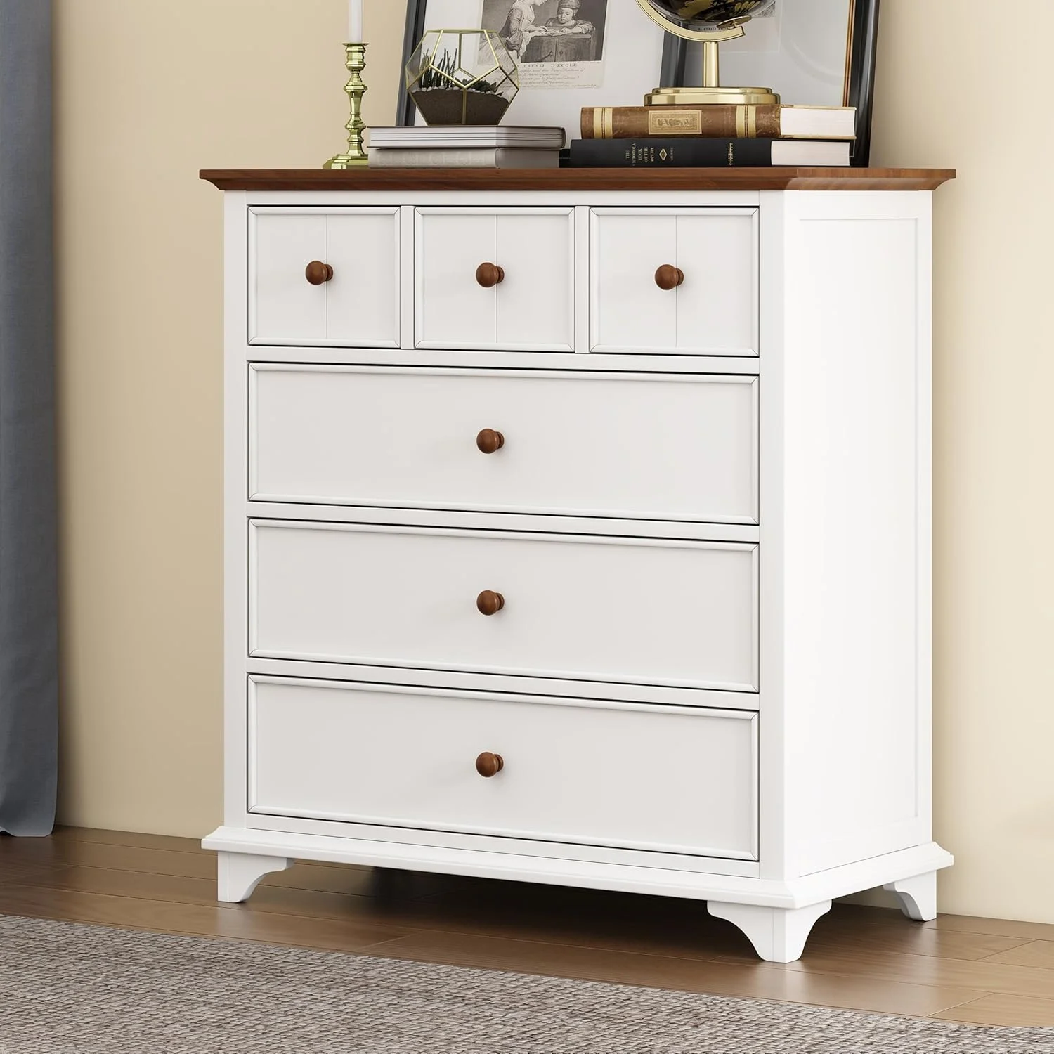 Treevol Furniture, 3 Drawers Dresser Maryland, Superior Top, for Adults - Light Gray Finish