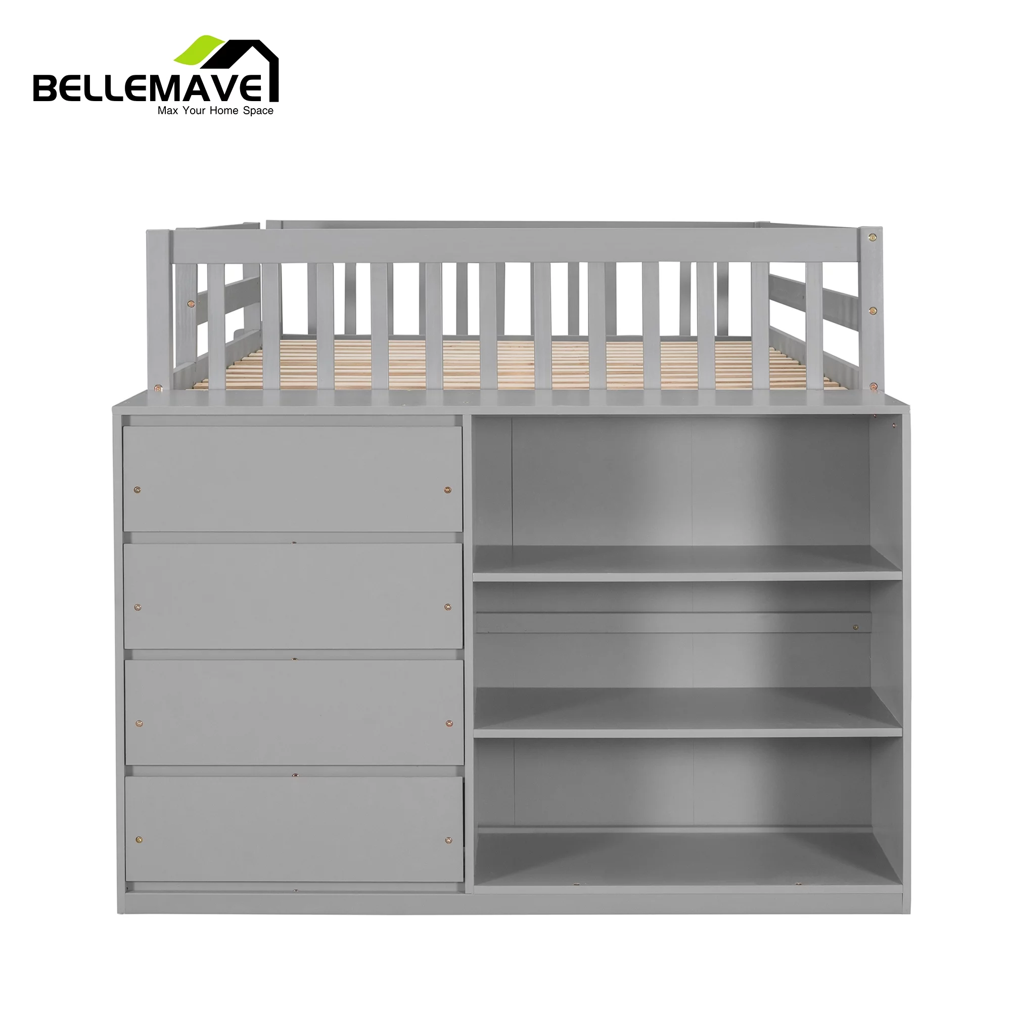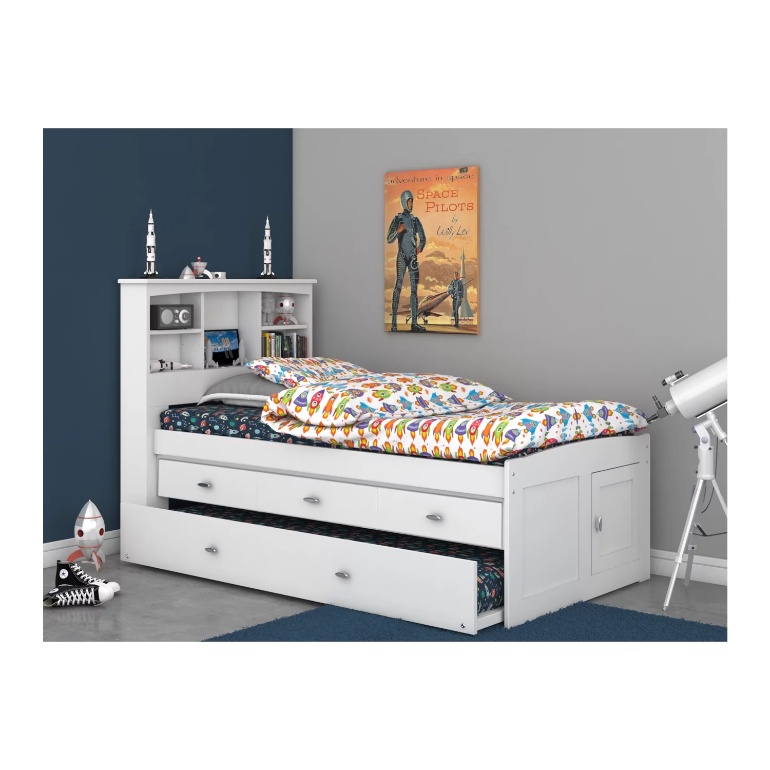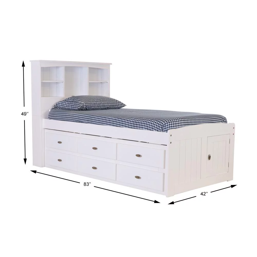 OS Home and Office Furniture Solid Pine Bookcase Bed in Casual White