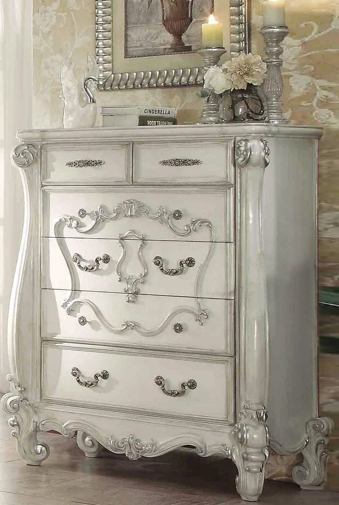 Acme Furniture 21760Q Versailles Bone White Panel Queen Size Bedroom Set 3 Pcs