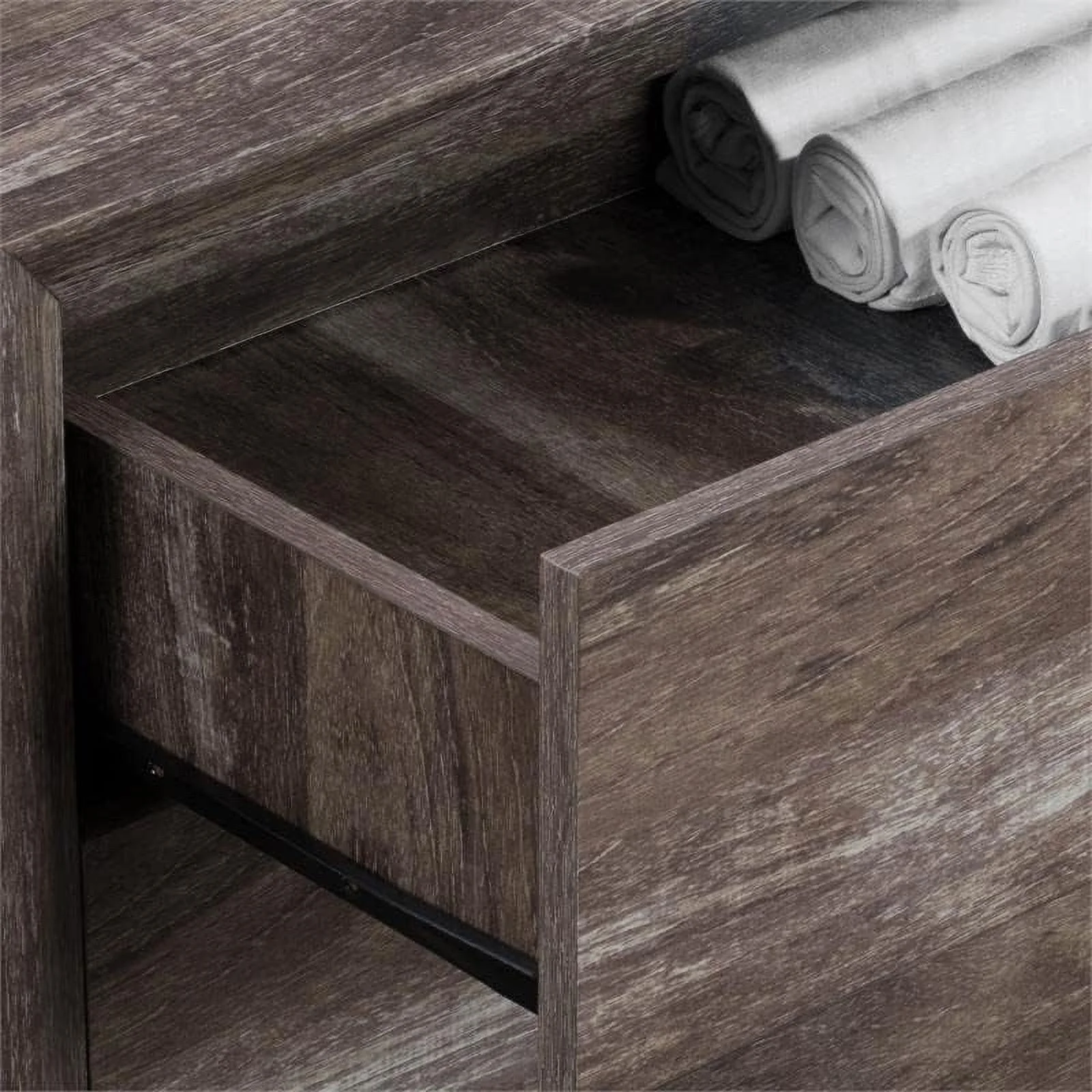 BenJara 2 Drawer Wooden Small Chest with Split Wood Panelled Fronts, Brown