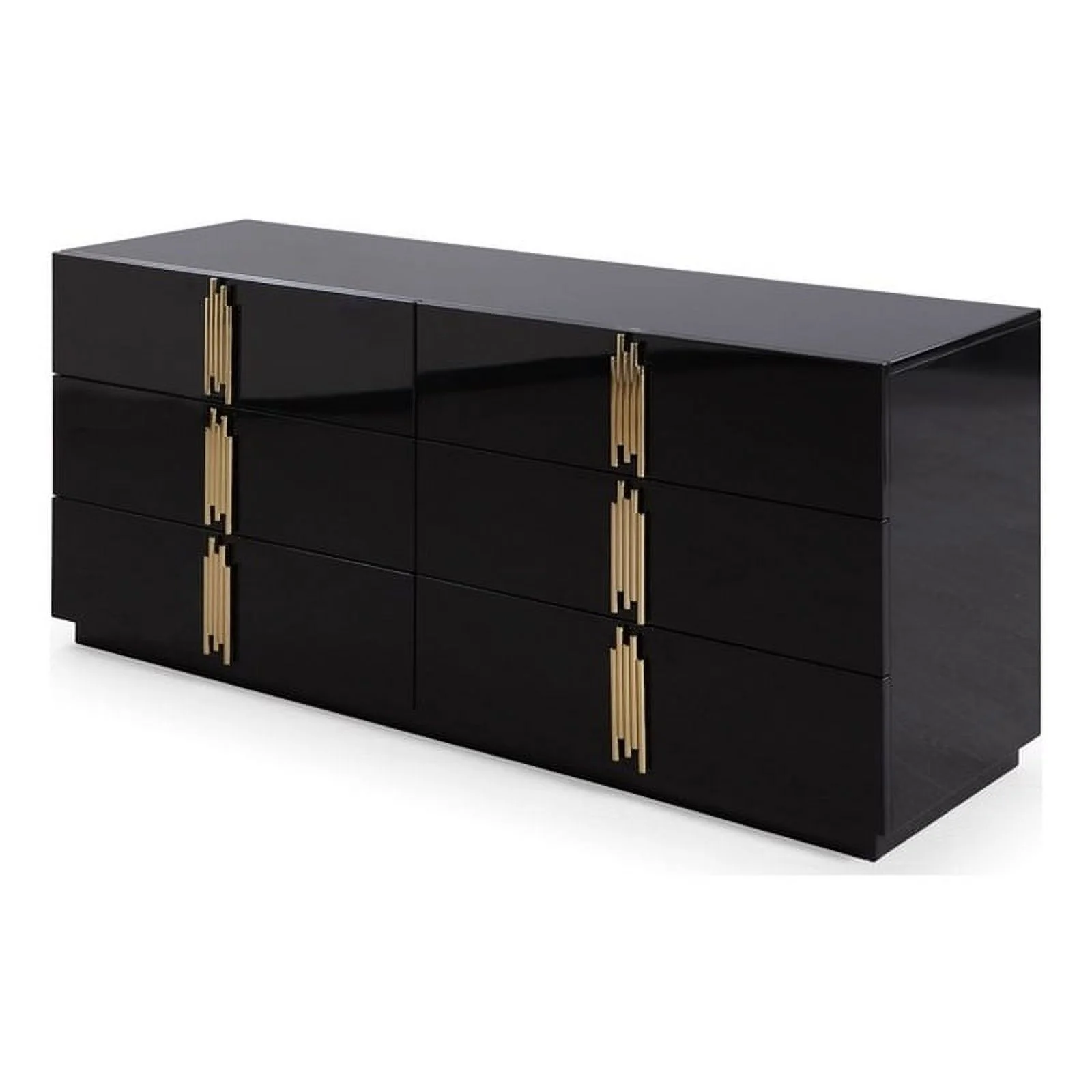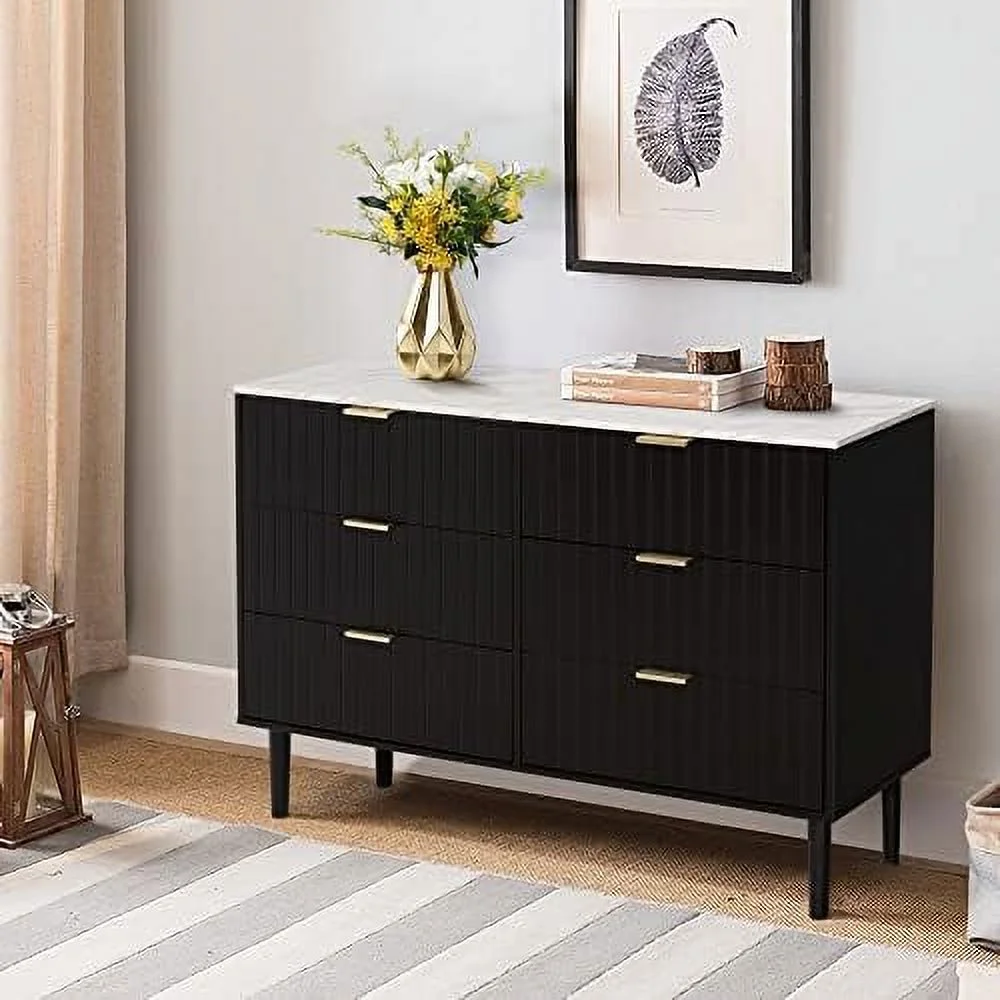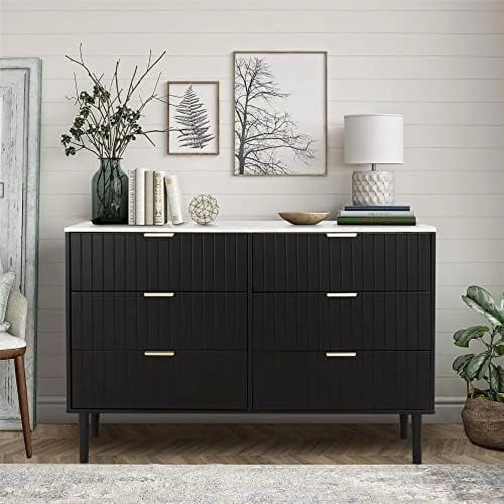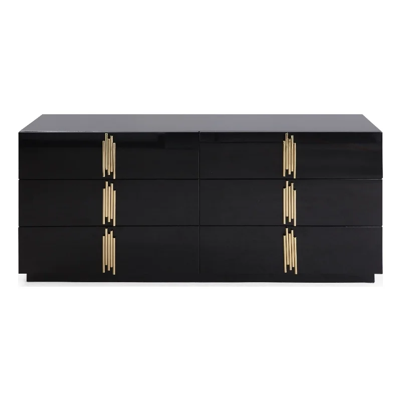 47 in. Faux Croc Design Six Drawer Double Dresser, Black, Silver & Gold