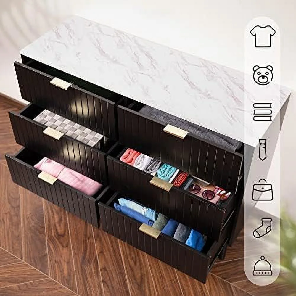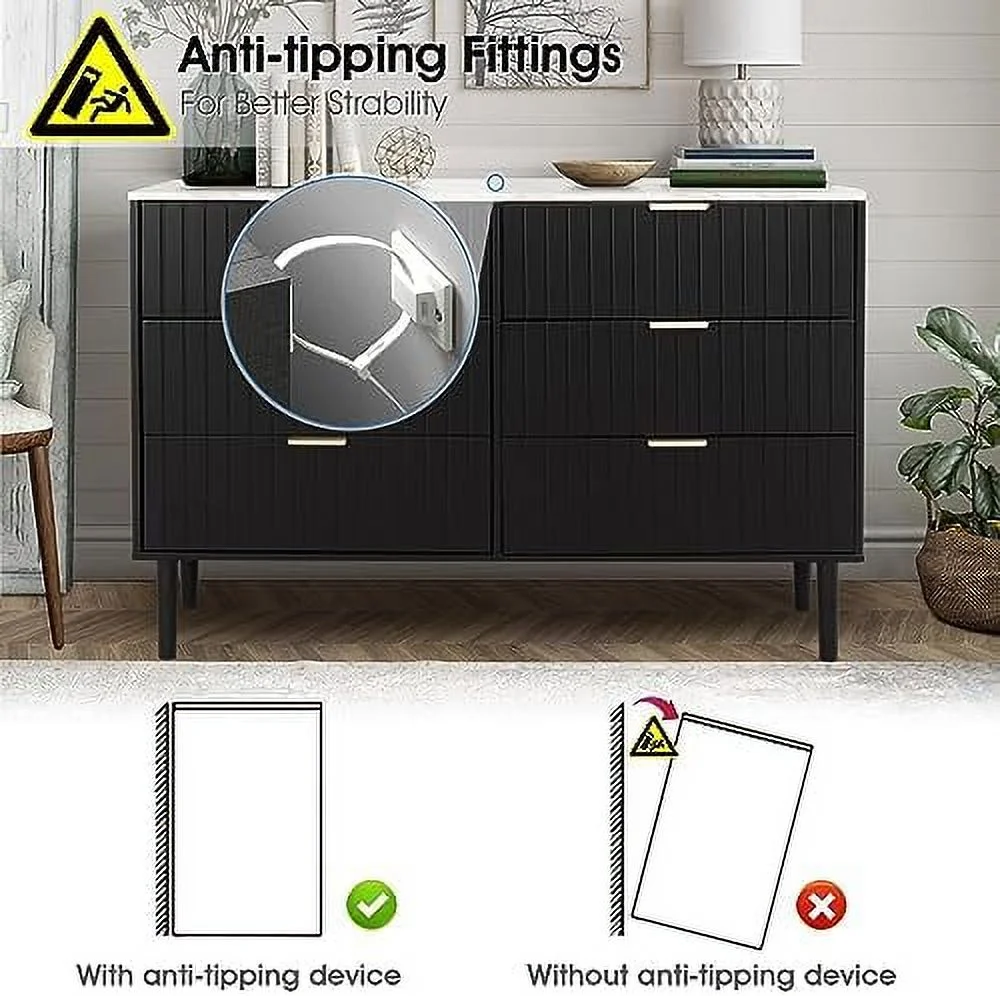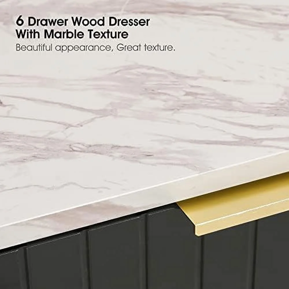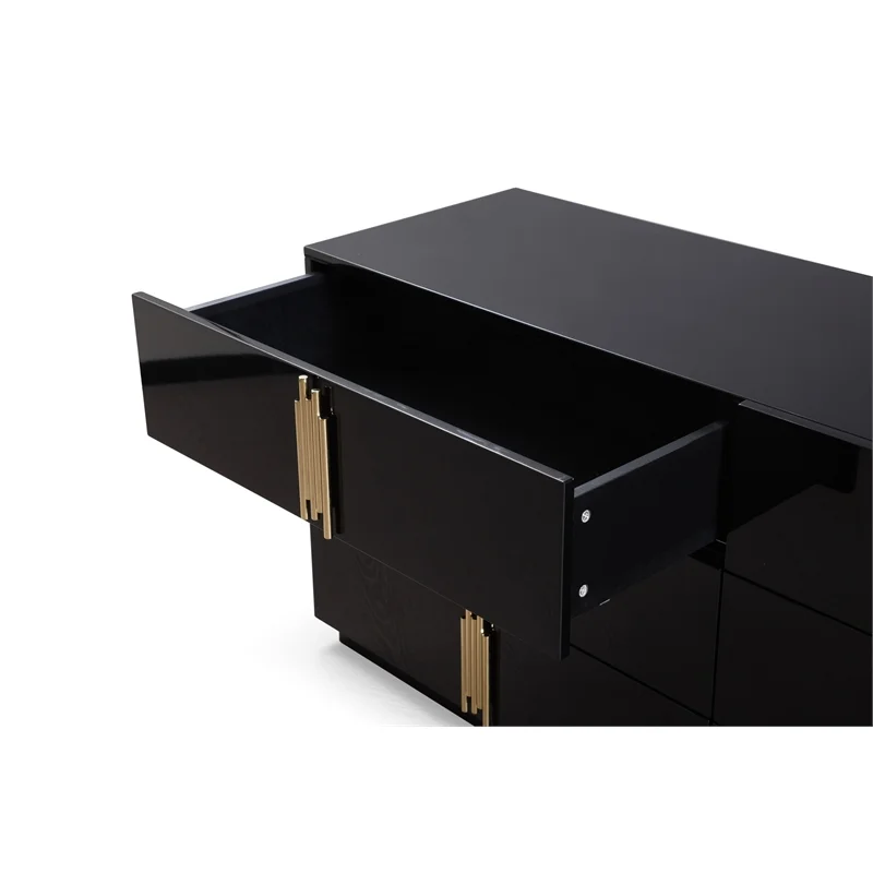 47 in. Faux Croc Design Six Drawer Double Dresser, Black, Silver & Gold