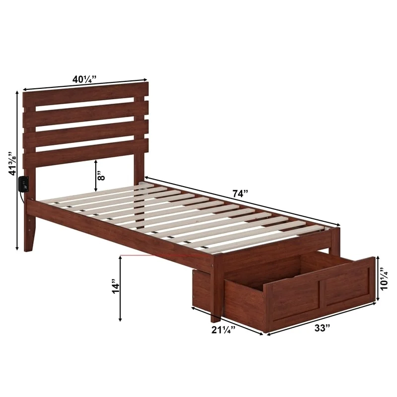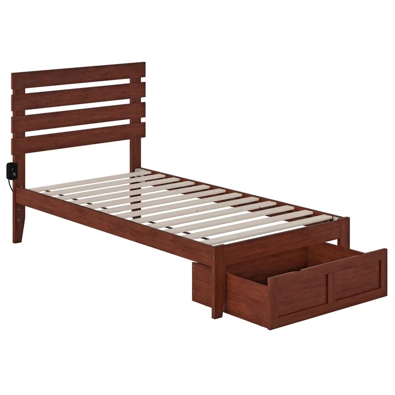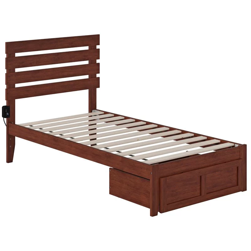 Leo & Lacey Farmhouse Solid Wood Urban Twin Storage Platform Bed in Walnut