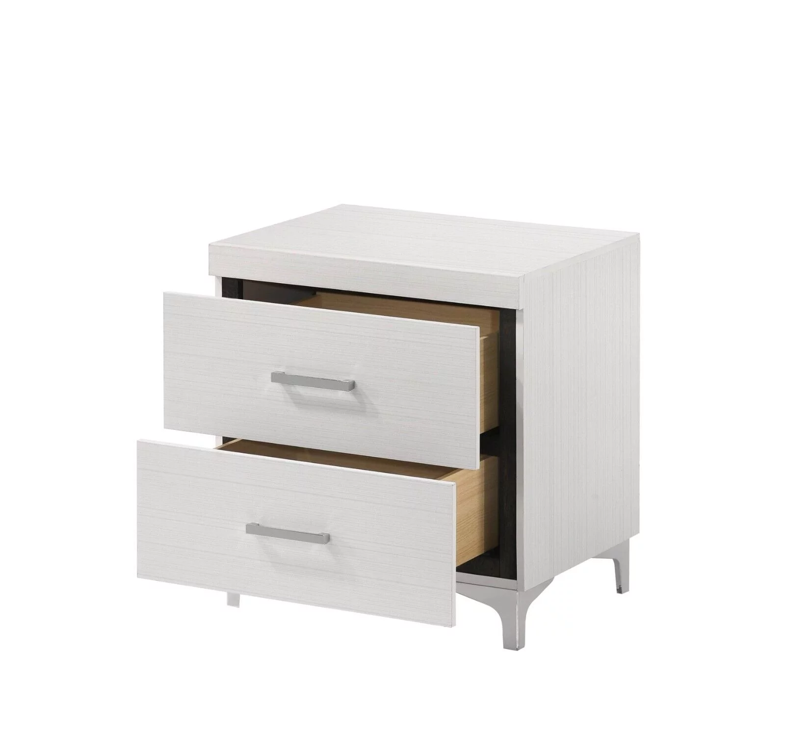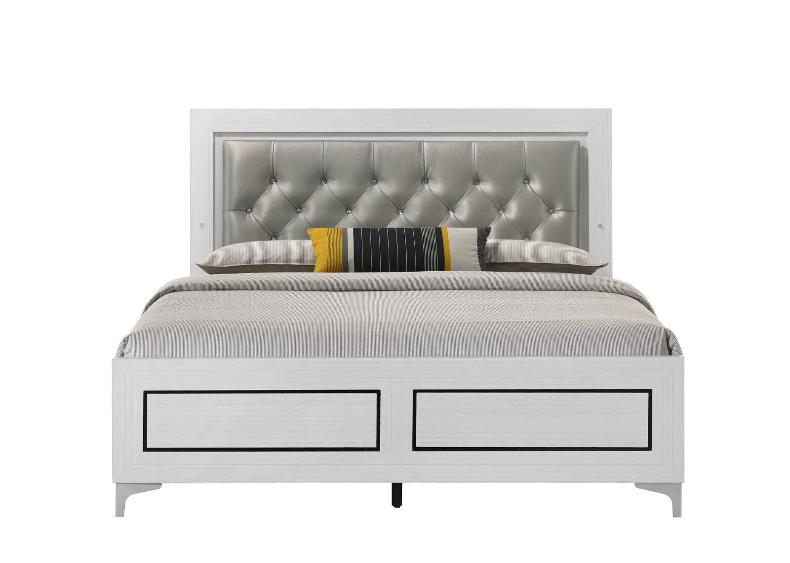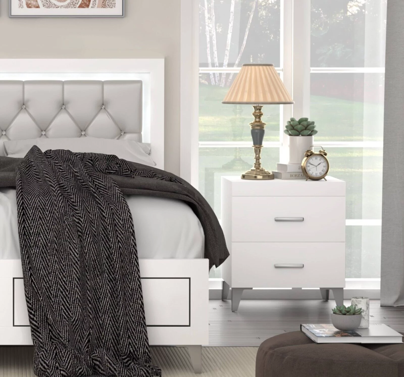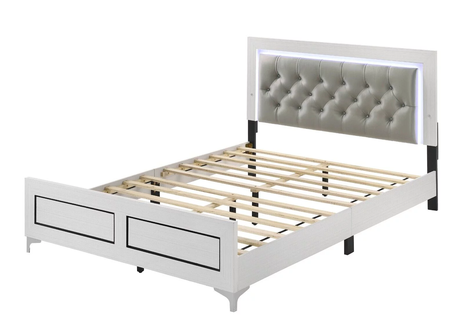 White Finish Stylish Bedroom 4pc Set Queen Bed Button-Tufted LED Headboard Nightstand Dresser Mirror