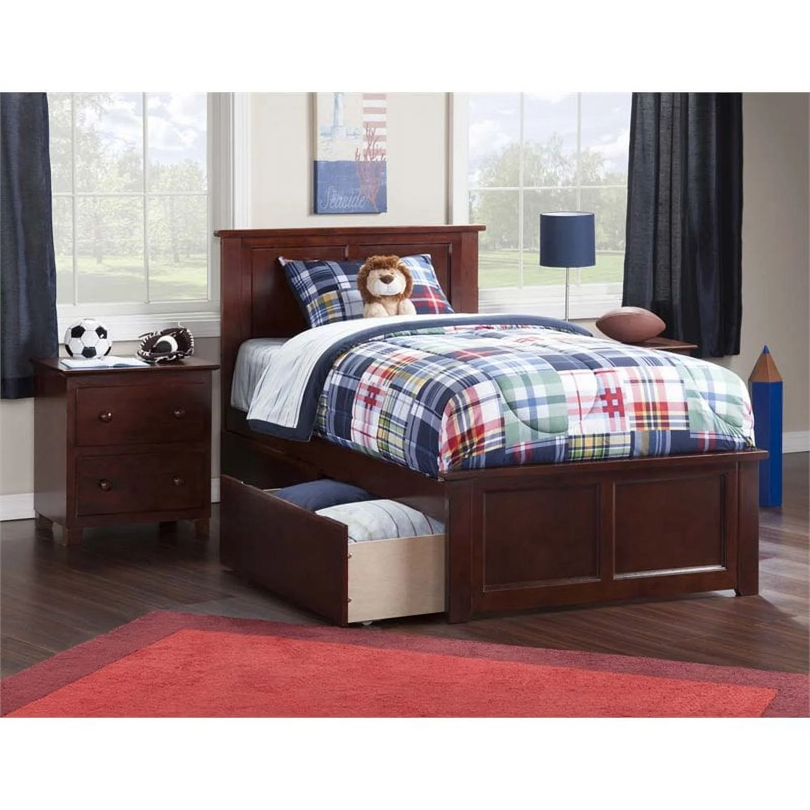 Roseberry Kids Farmhouse Solid Wood Twin XL Storage Platform Bed in Walnut