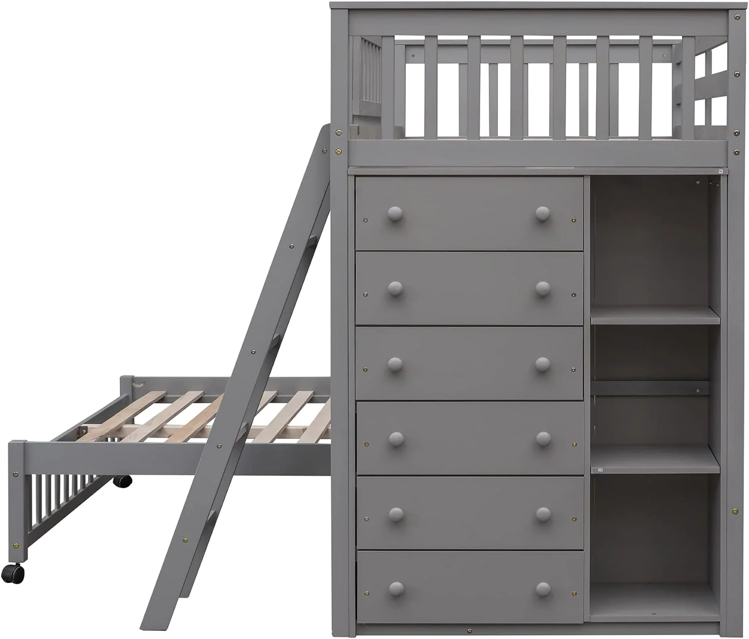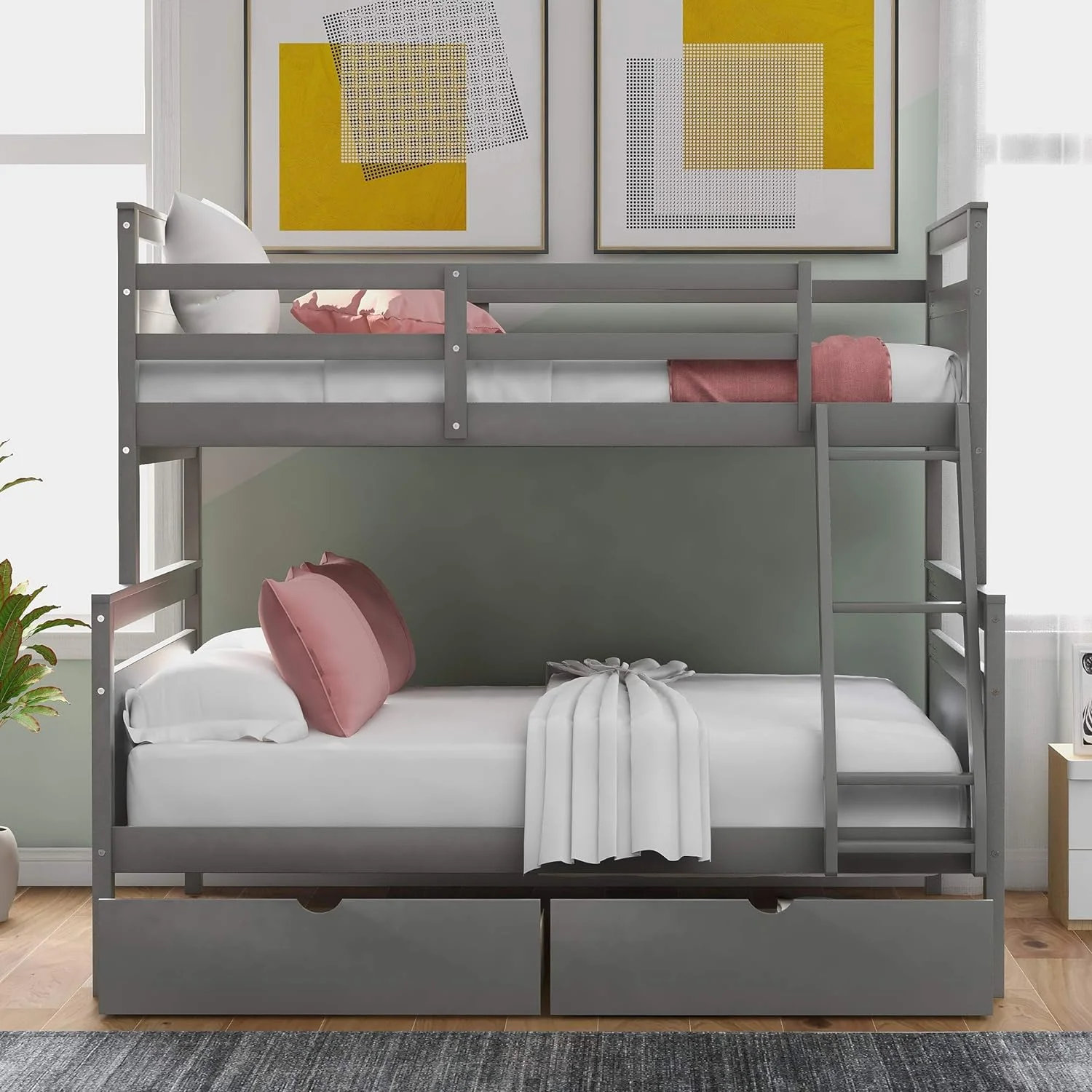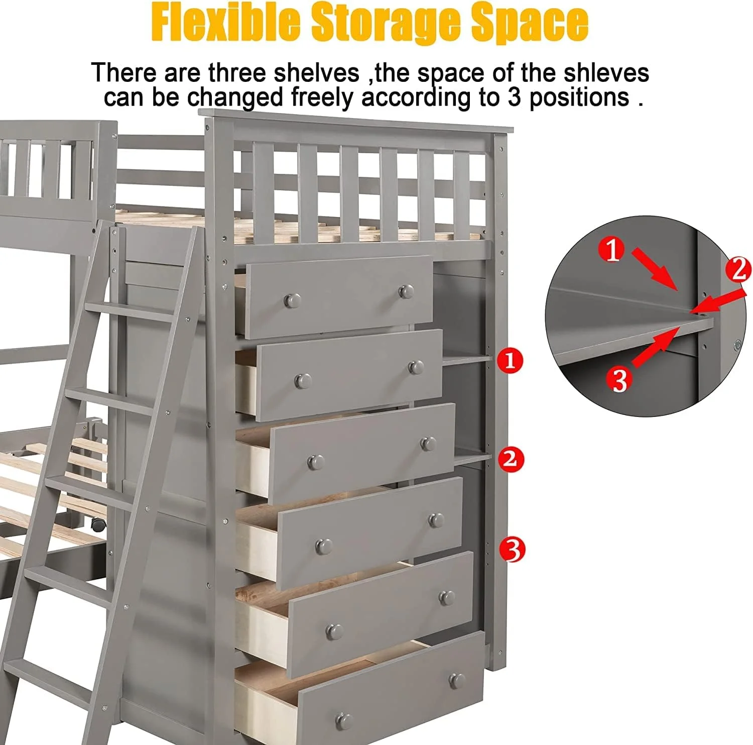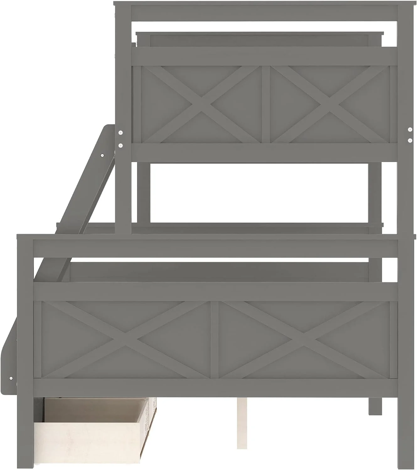 Wooden Bunk Bed With Two Storage Drawers, Ladder And Safety Guardrail, Convertible Into 2 Separated Beds, Grey