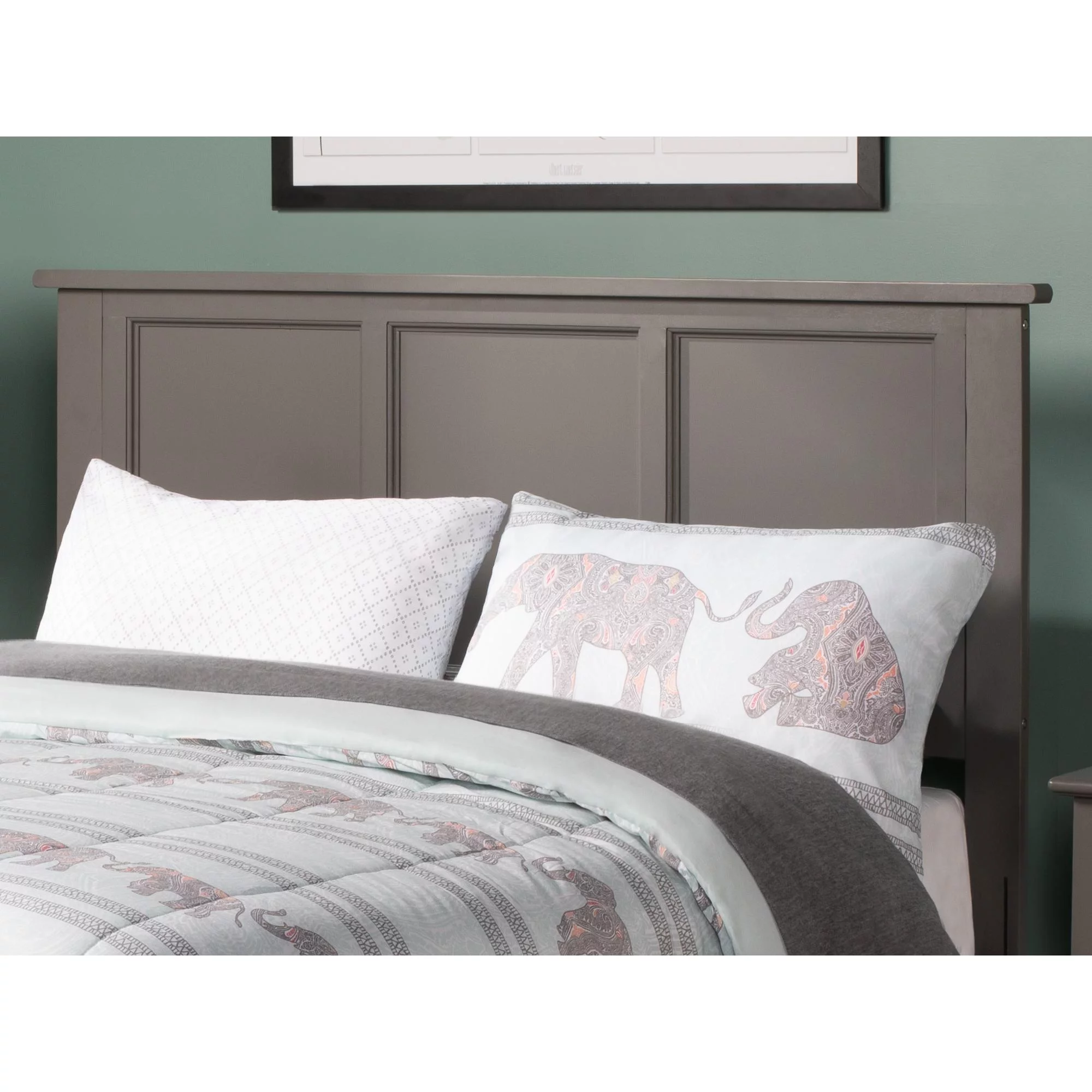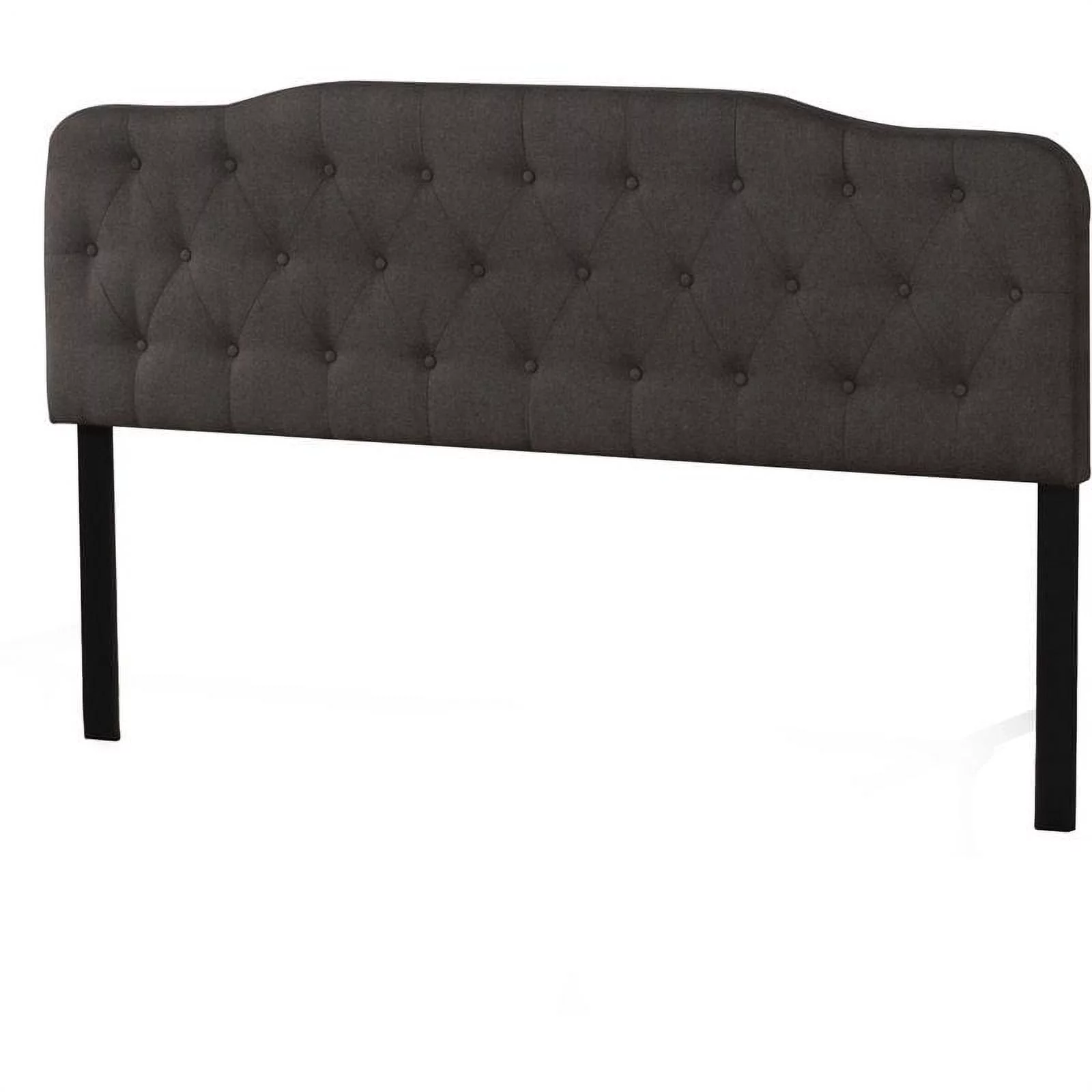 Benjara Elle Queen Size Bed, Low Profile, Gray Button Tufted Upholstered Headboard