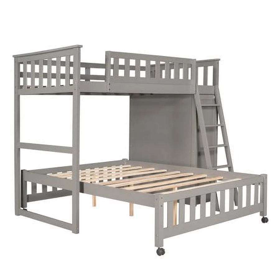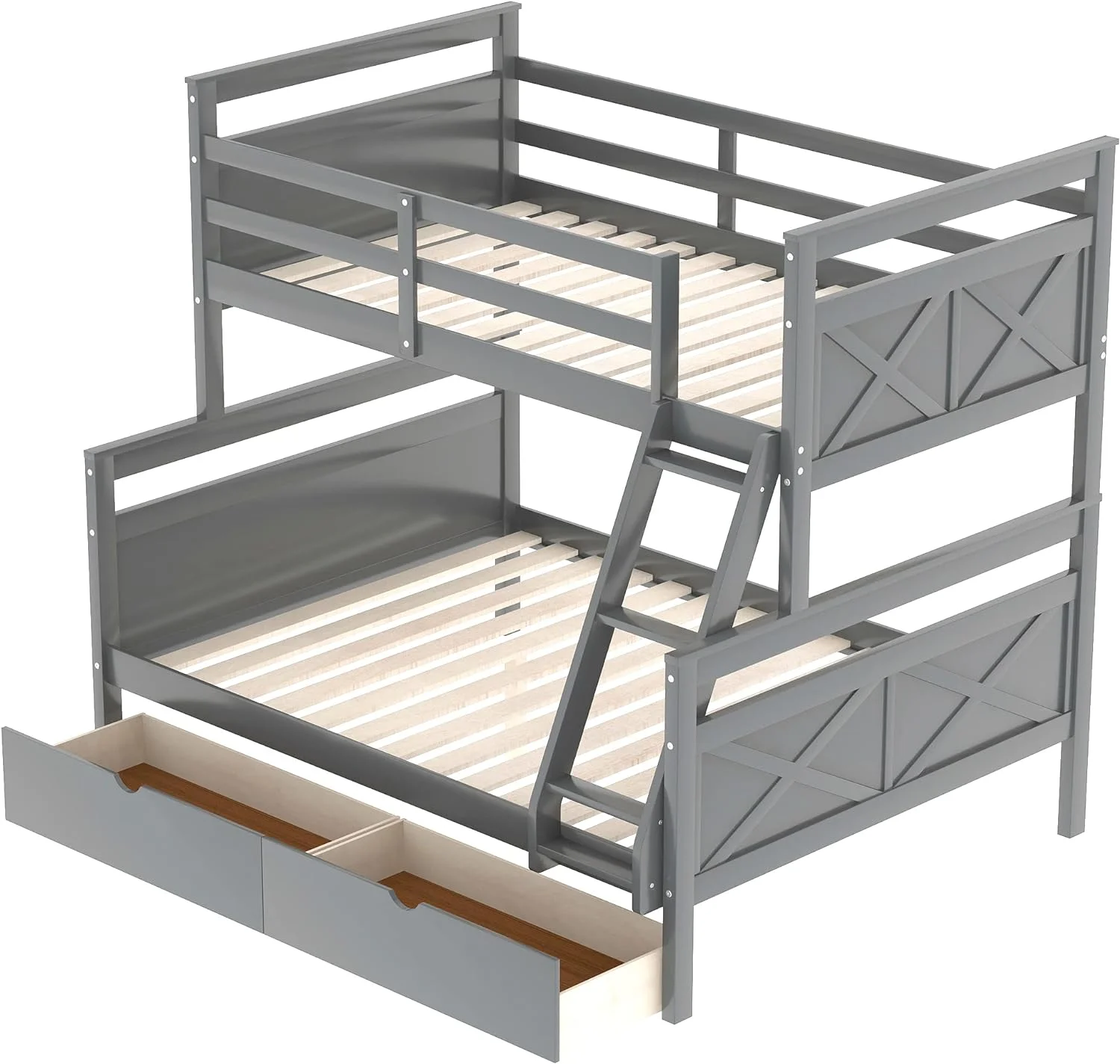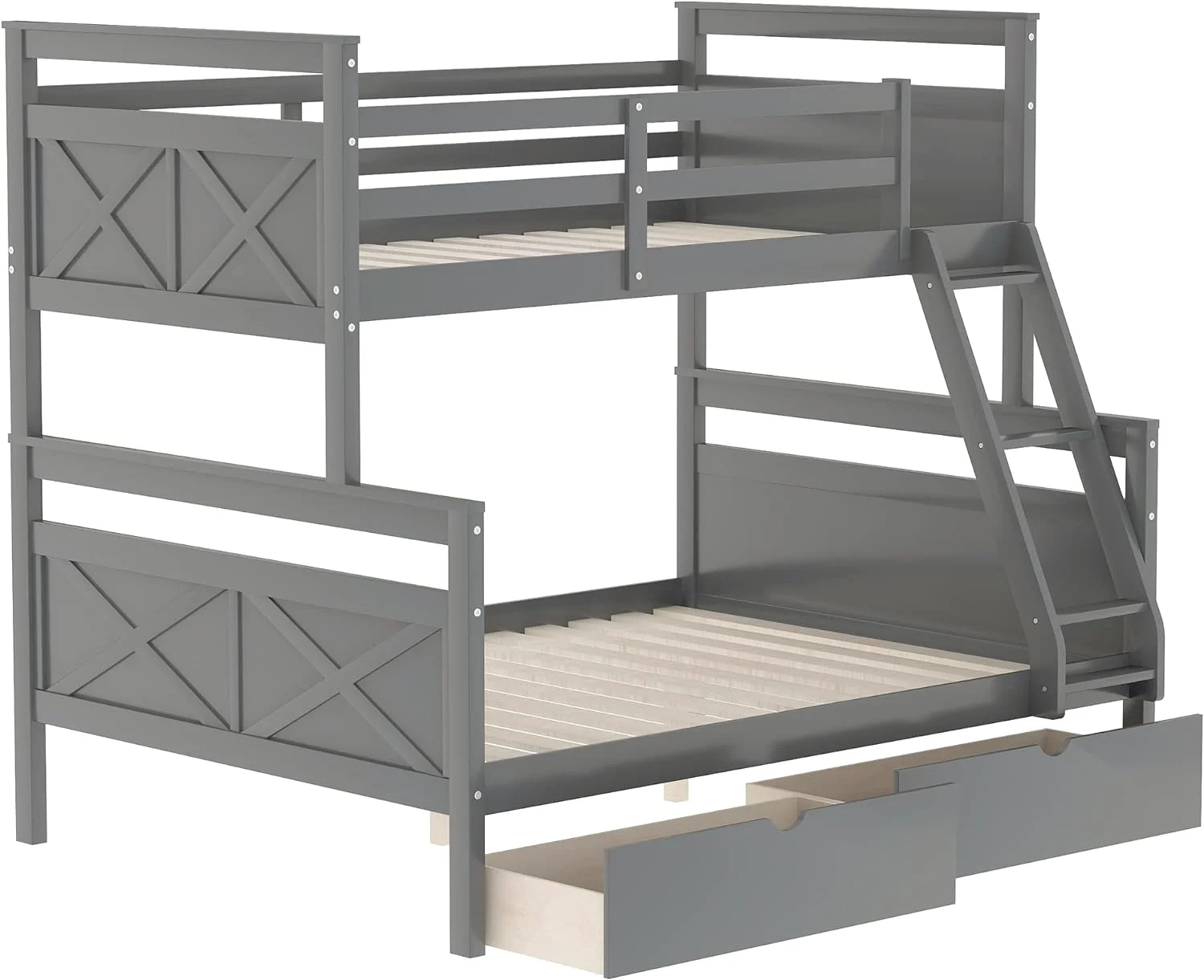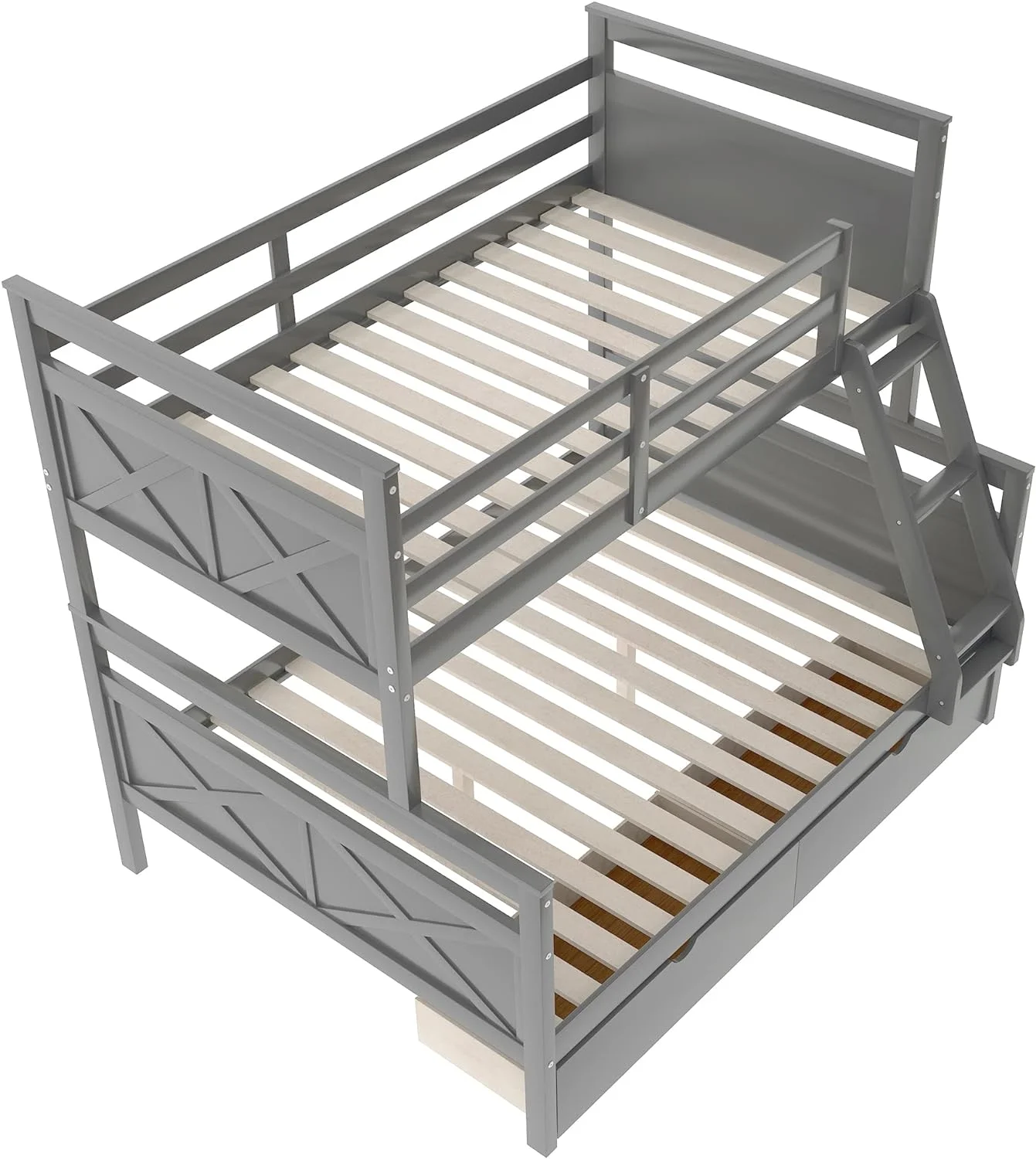 2 Drawer Wooden Twin Over Full Bunk Bed with Storage Staircase, Gray- Saltoro Sherpi
